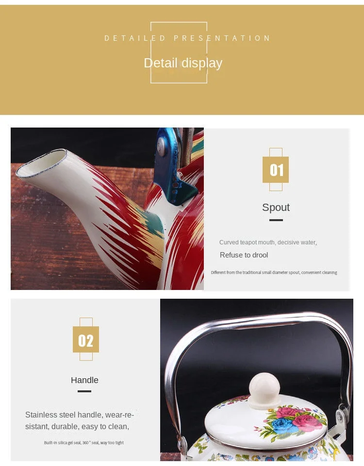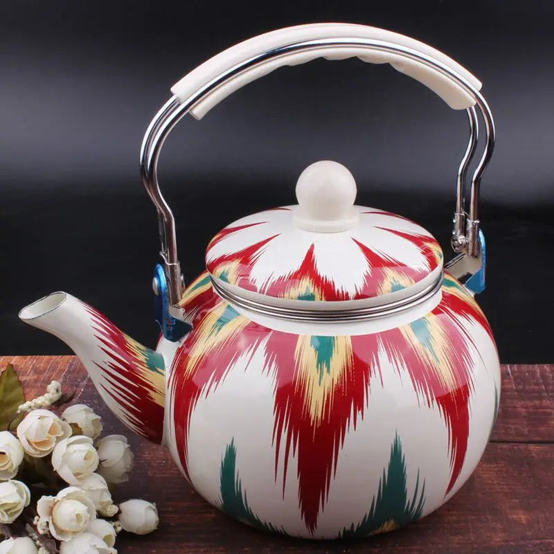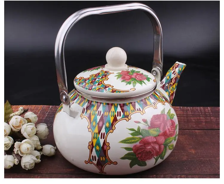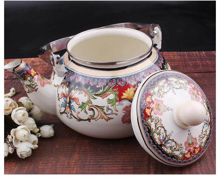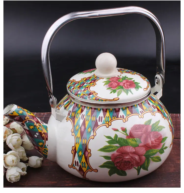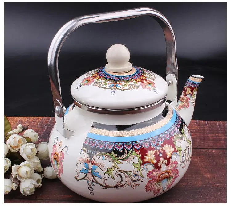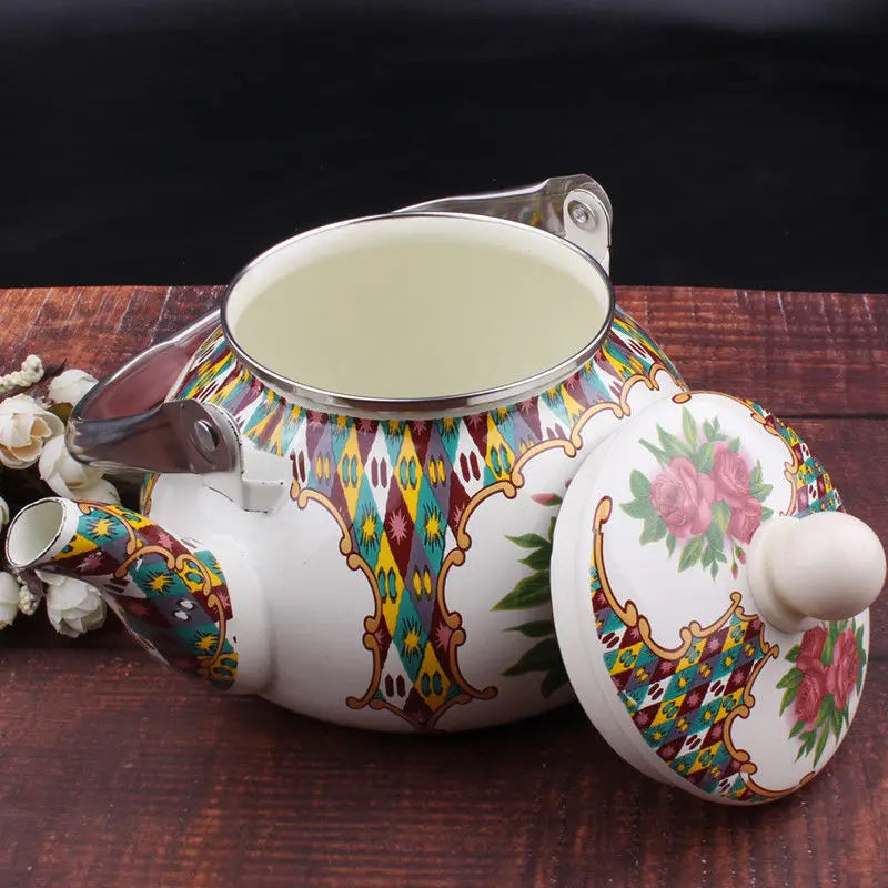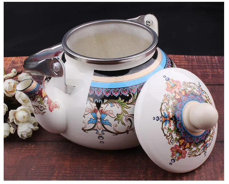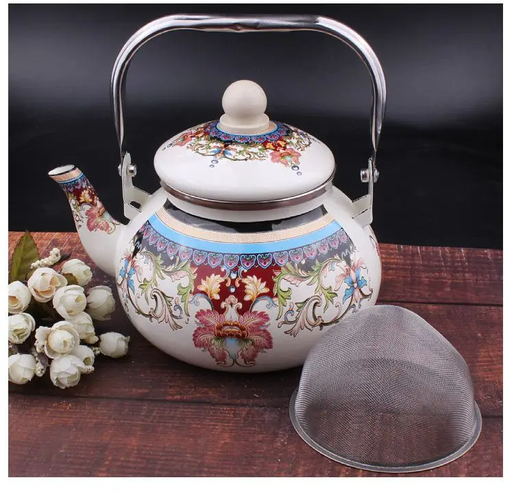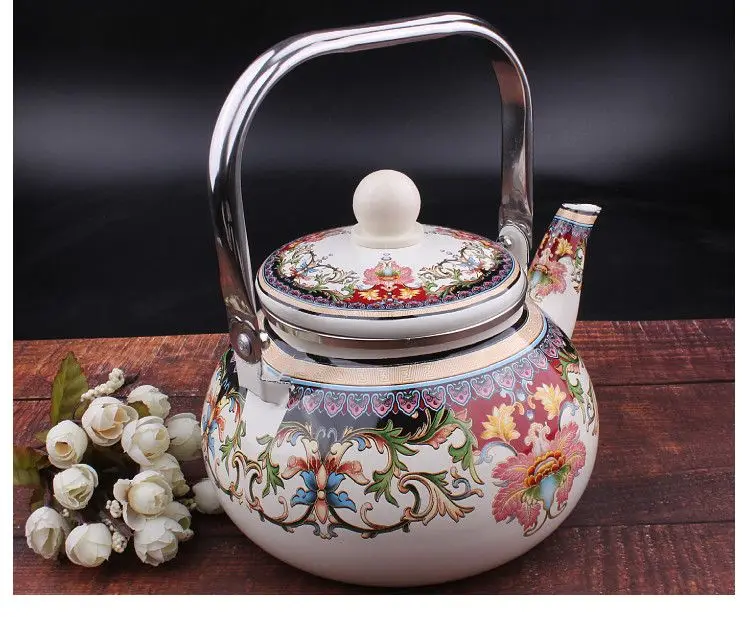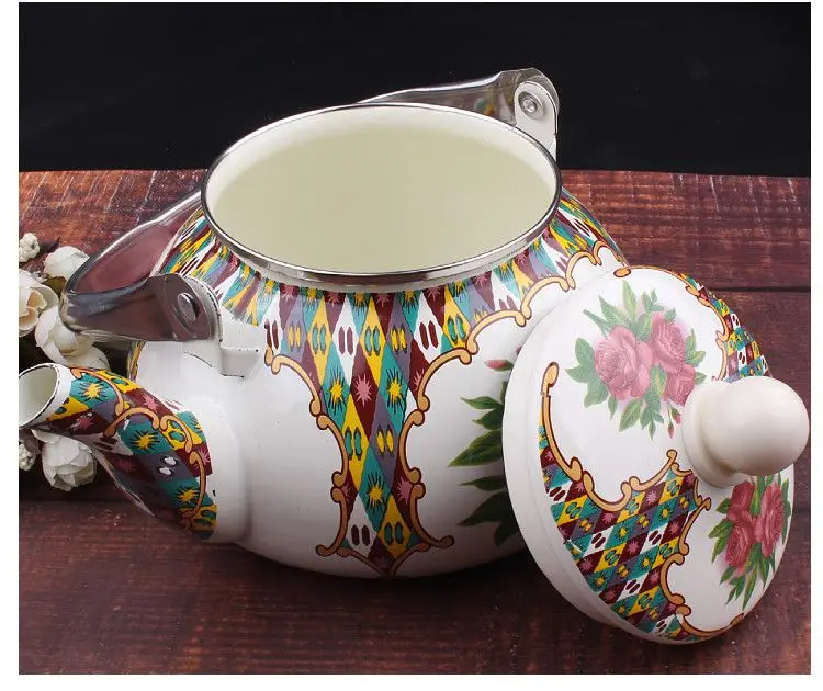 2.4/2.5L Hand Painted Enamel Teapot Ethnic Restaurant Milk Tea Kettle Tea Set Boiling Kettle