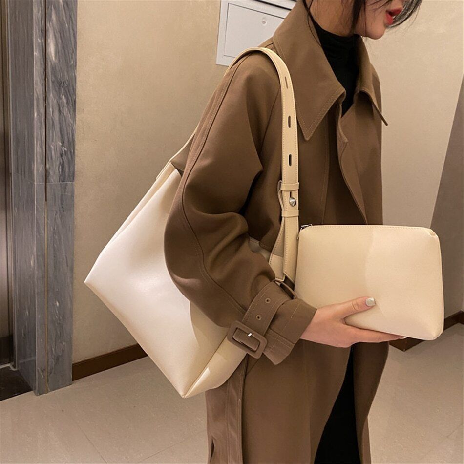 2 Sets Totes Bag PU Leather Shoulder Bags Women Female Travel Bag Lady Bag