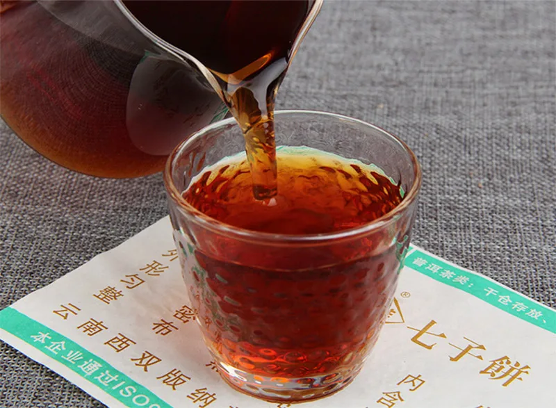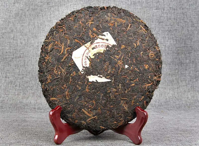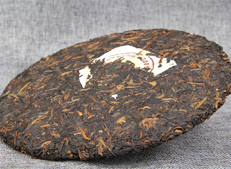Puer Type: Ripe Puer Net weight: 357g/pc, Price for one pc ONLY. Production Date: 2005 Origin: Yunnan,China Manufacturer: Menghai PuWen Tea Co., Ltd. This tea's appearance looks dark, which indicates a rather deep degree of fermentation and post-fermentation. From the first strait, the tea was quite dark in the infusion. The taste differs from other factories - it is cherry-nut, rich, bright with a sweetish aftertaste. A very voluminous taste.