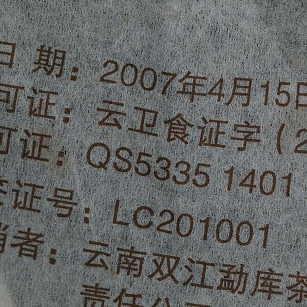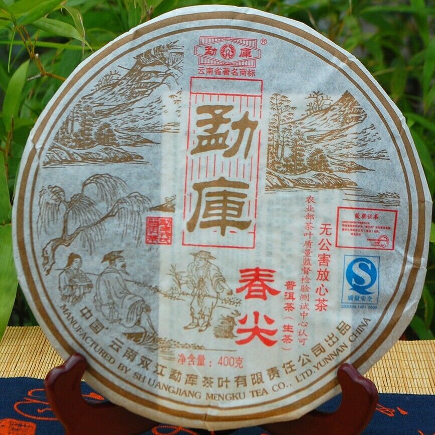 Product Name : 2007 Year Mengku Rongshi Shen Puer Meng Ku Spring Tip 400g Raw Pu Er Tea Cake Manufacturer : Shuangjiang Mengku Tea Industry Co., Ltd. Production dat e : 2007 Year Net weight : 400g / Pc Origin : Mengku, Yunnan, China Storage : Ventilation, cool, dry, no odor, long-term preservation in a pollution-free environment. Raw materials : Yunnan large-leaf tea raw materials