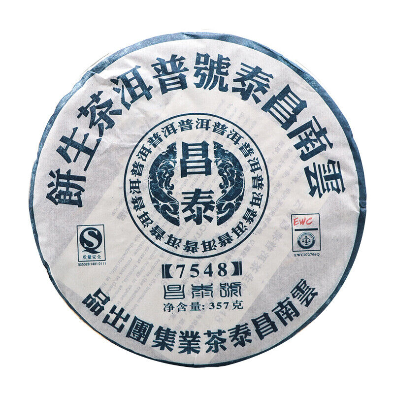 Sheng puer tea #7548 in a shape of pancake, weight 357 grams, by Changtai factory.