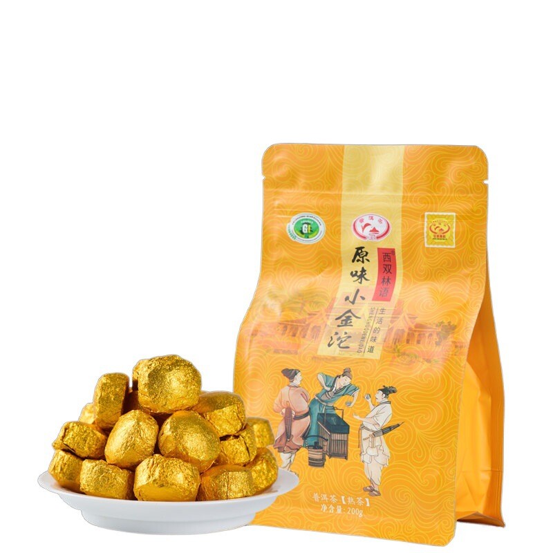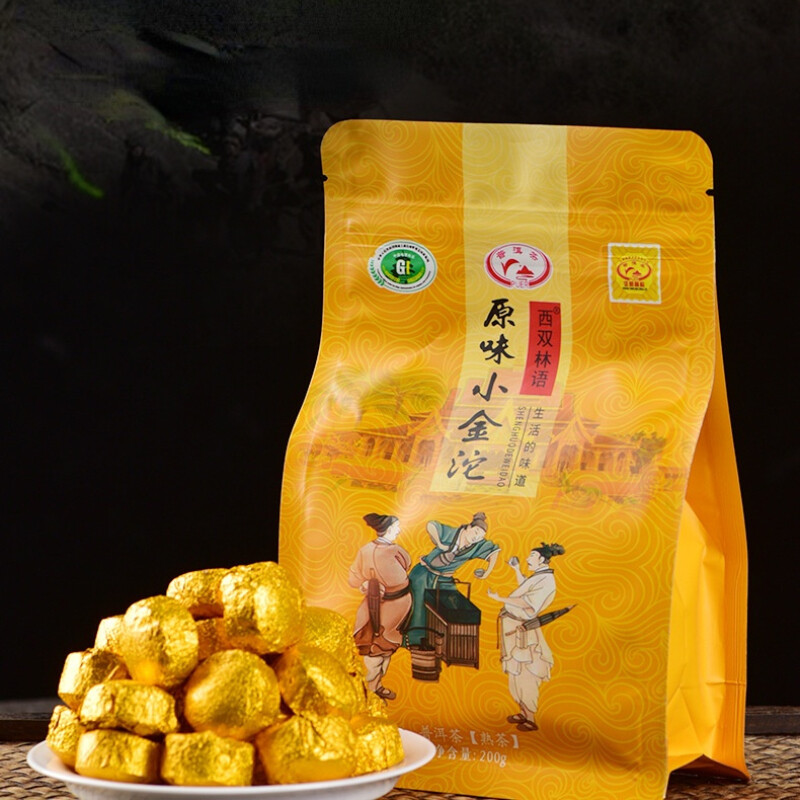200g Pu-Erh Ripe Tuocha Golden Bag Pu'er Black Tea Mini Tea Cake Health