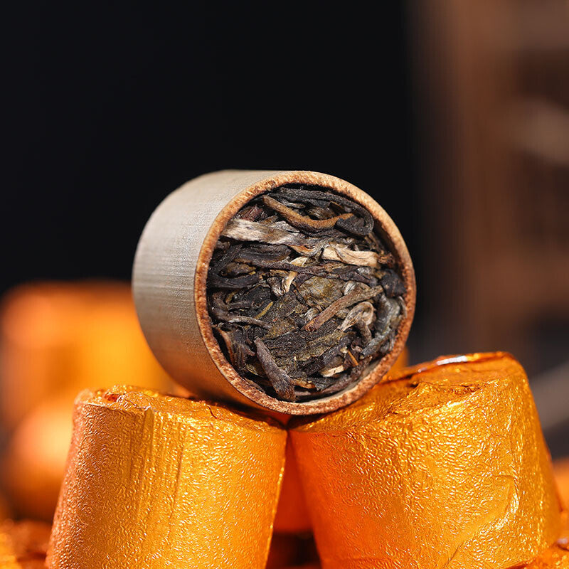 The flavor and color of Puerh Tea changes when properly stored over a period of time; fresh raw tea brews into a bright, yellowish broth and possesses a strong, almost harsh flavor; aged raw tea brews an amber broth and possesses a mellow flavor. Fresh ripe tea brews into a bright red broth possessing a smooth mellow flavor; old ripe tea brews dark red with a thick mellow flavor. The flavor, quality and value of Puerh tea constantly increases over time with proper storage,and the longer the better.