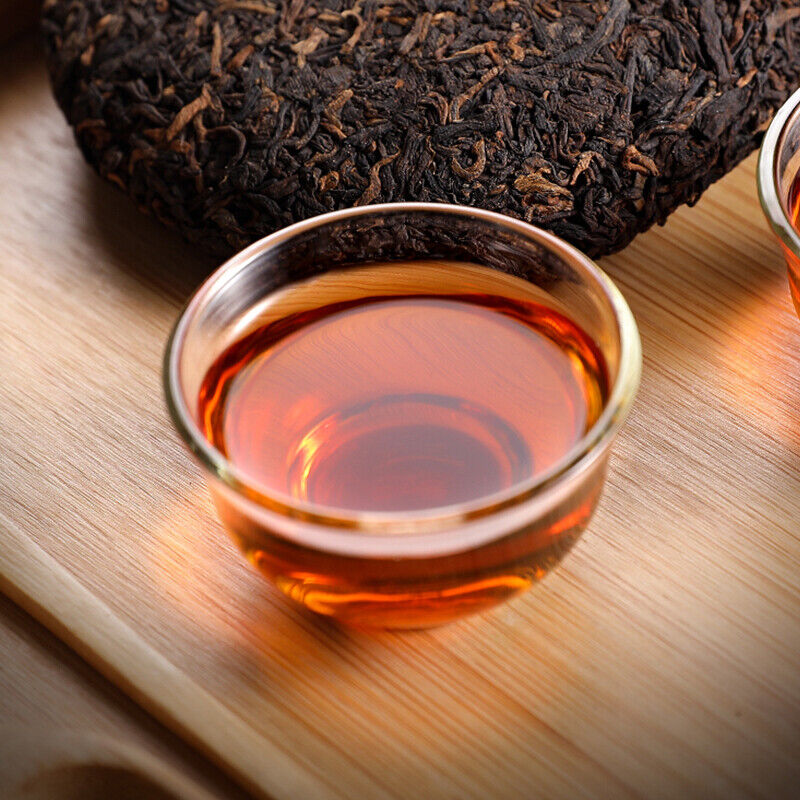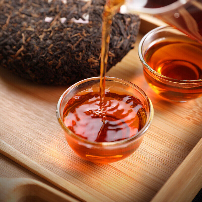 Golden tip buds are spreaded on the tea cake surface with main 7 grades of Maocha inside. Medium fermentation, this allows the activity of the tea to change as time goes by. Mellow taste and long sweetness. If stored for about 3 years, its age aroma appears and tea liquid becomes more smooth and soft. Drinking the ripe Pu Er tea for a long time is good for keep weight and descreasing the blood fat, blood sugar and maintain your skin activity.