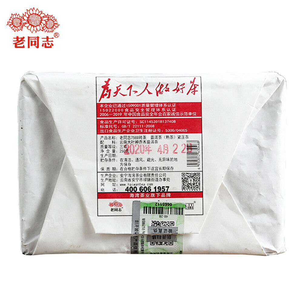 2020 Haiwan Old Comrade 7588 Yunnan Puer Tea Brick Shu Pu-erh Ripe Puerh 250g