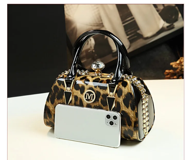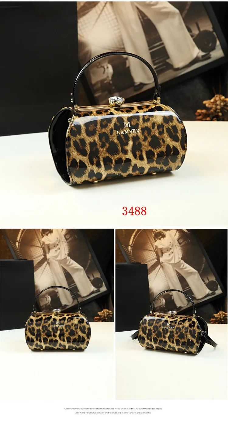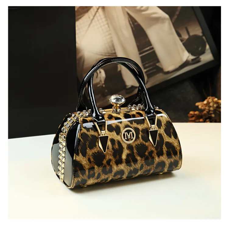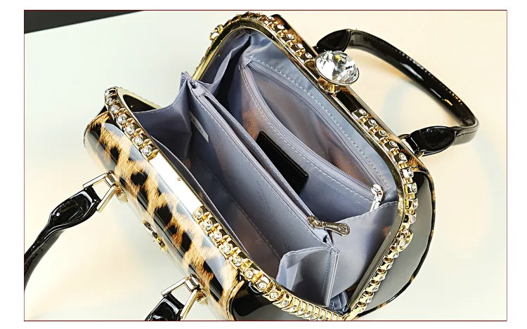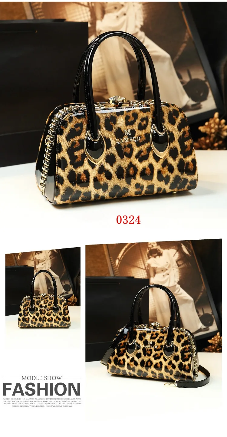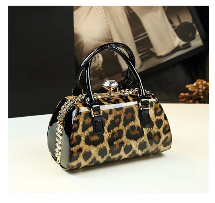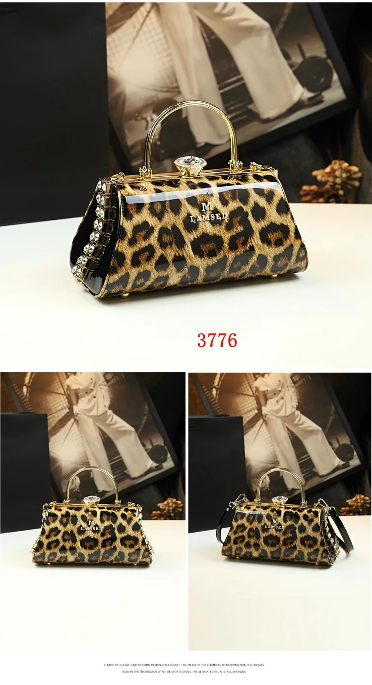 2021 Luxury Fashion Diamond Women Handbag cowhide leather leopard ladies Portable party tote evening Bag shoulder diagonal bags