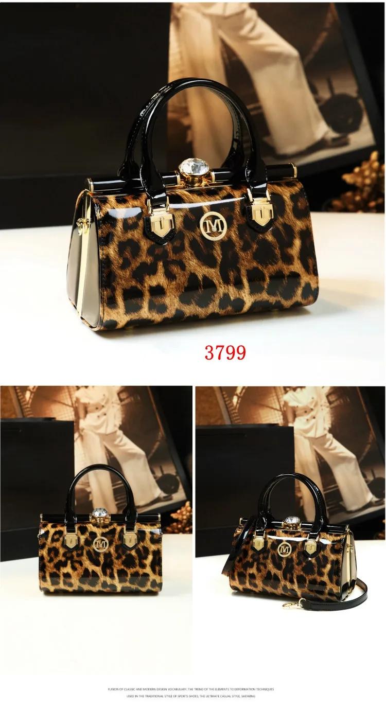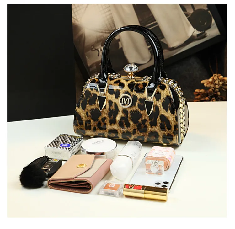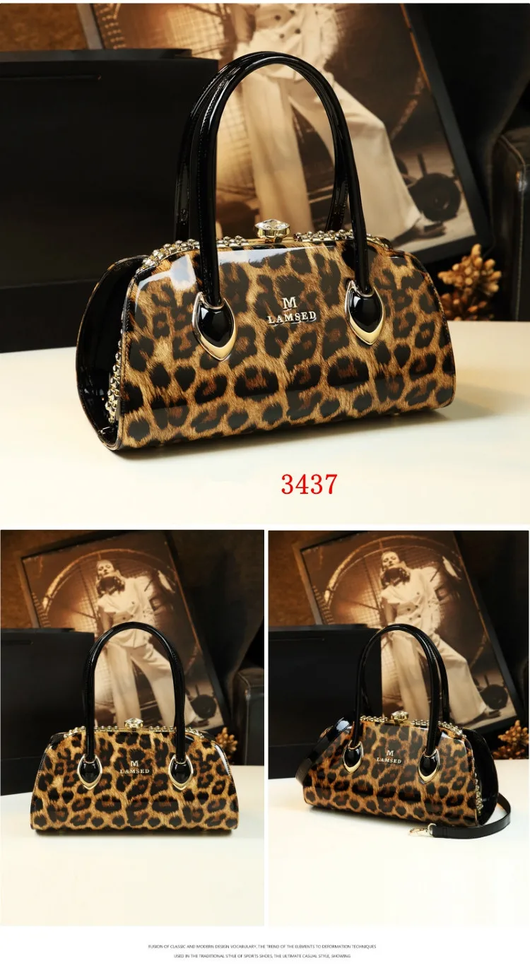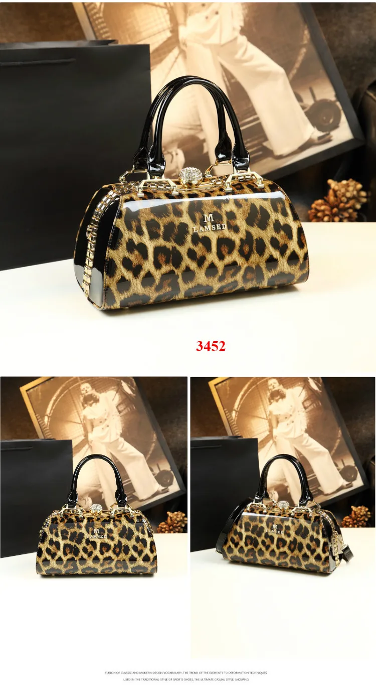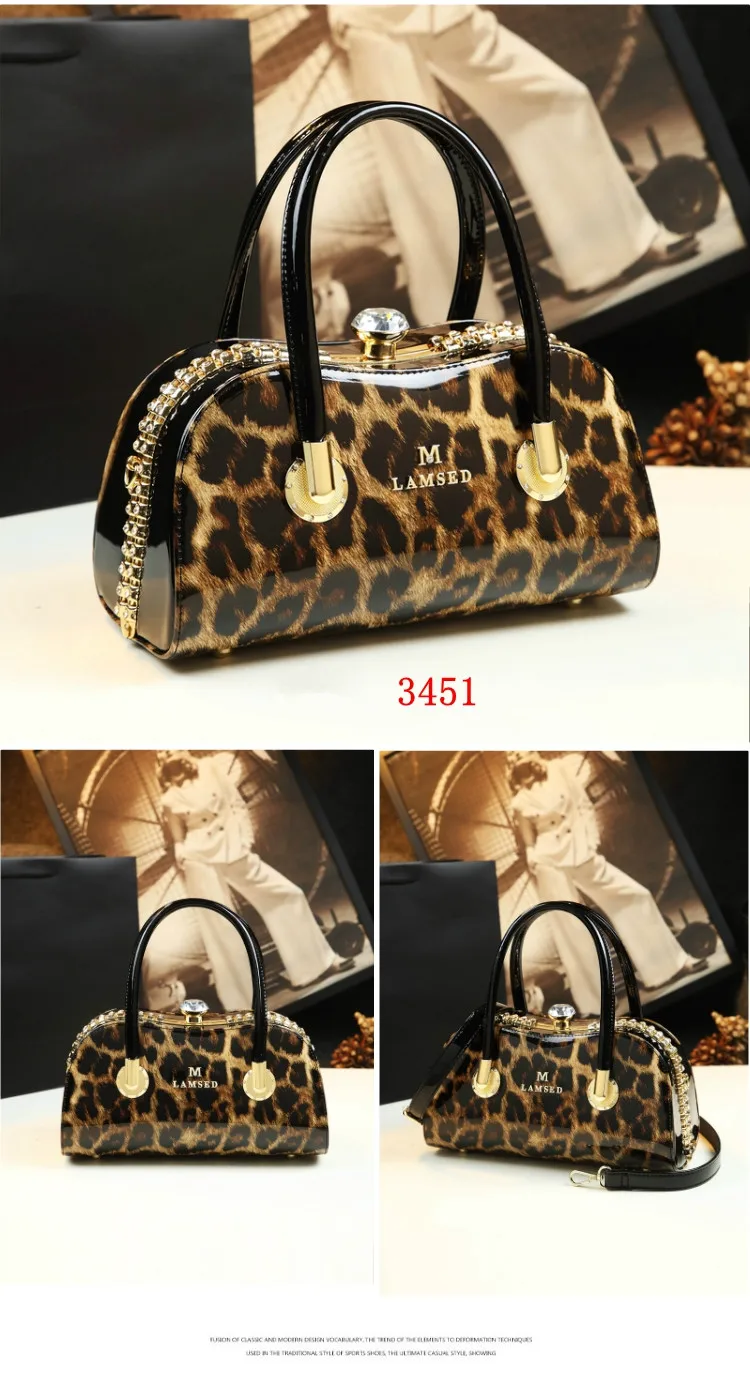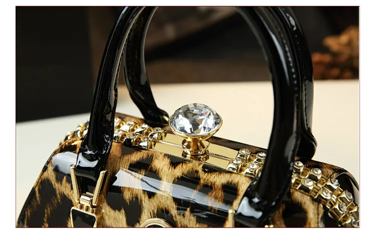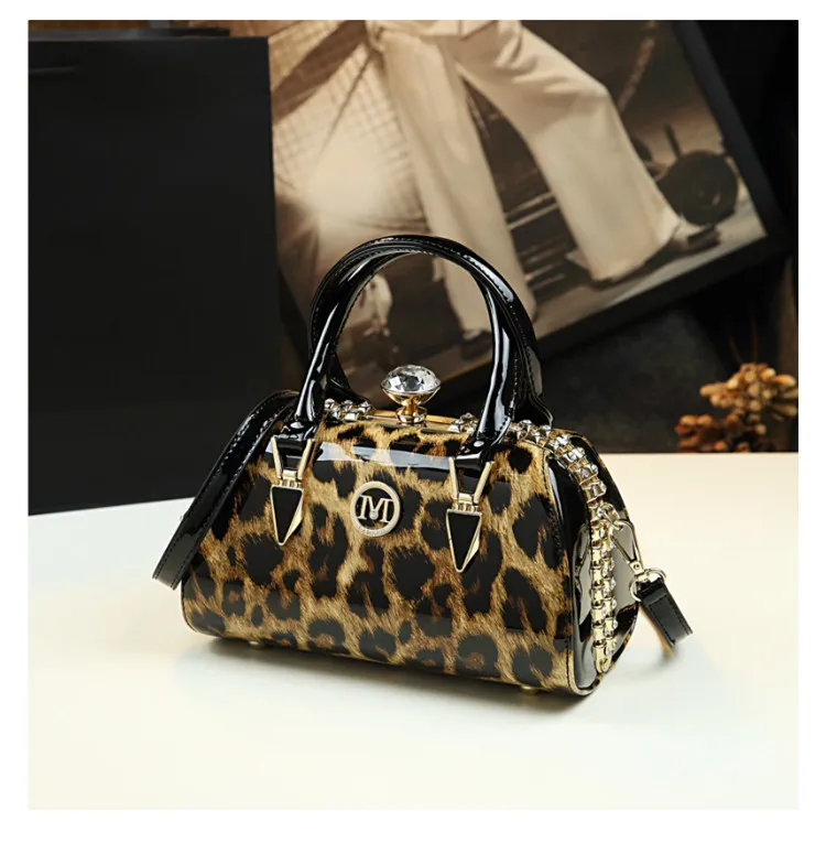 2021 Luxury Fashion Diamond Women Handbag cowhide leather leopard ladies Portable party tote evening Bag shoulder diagonal bags