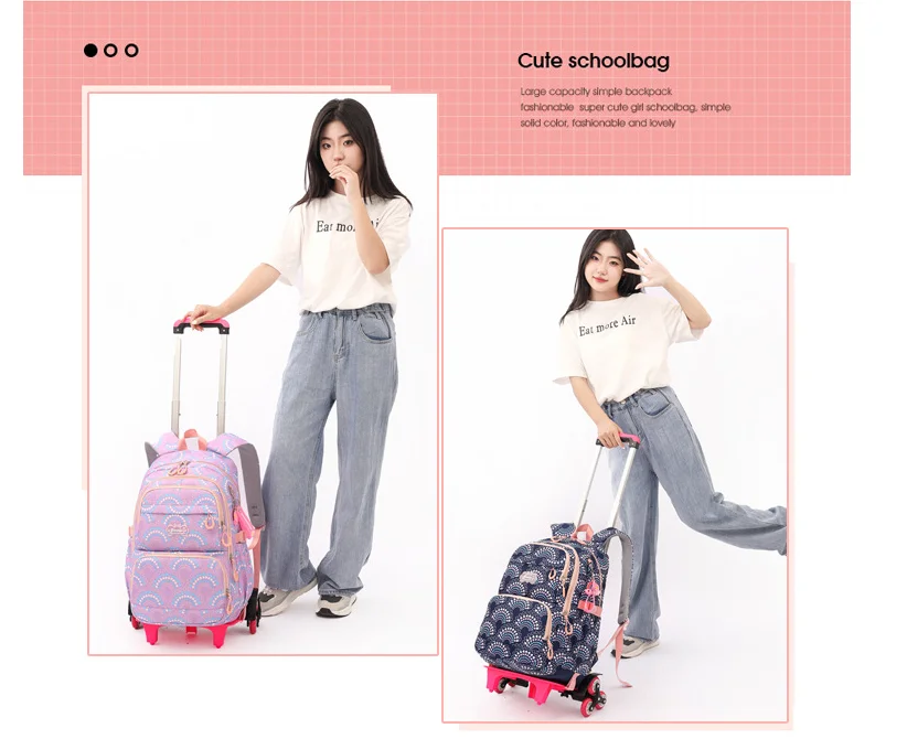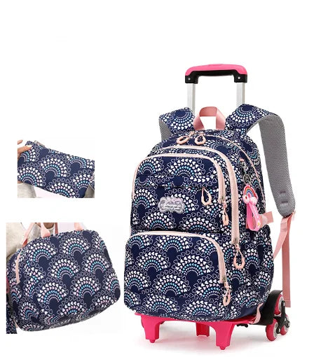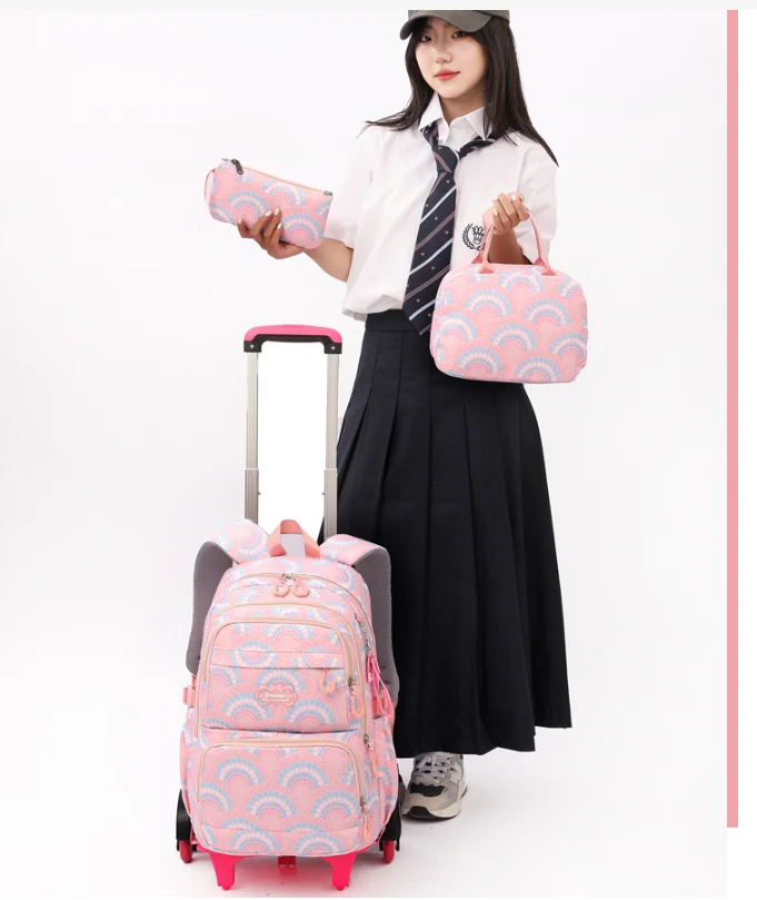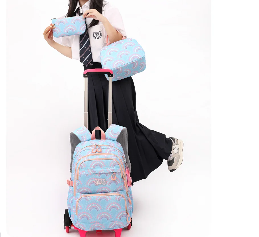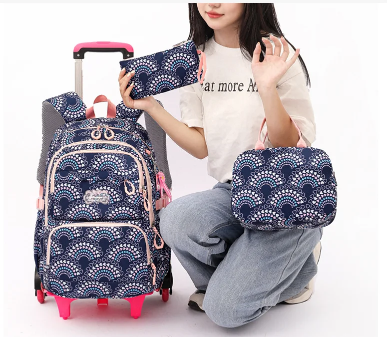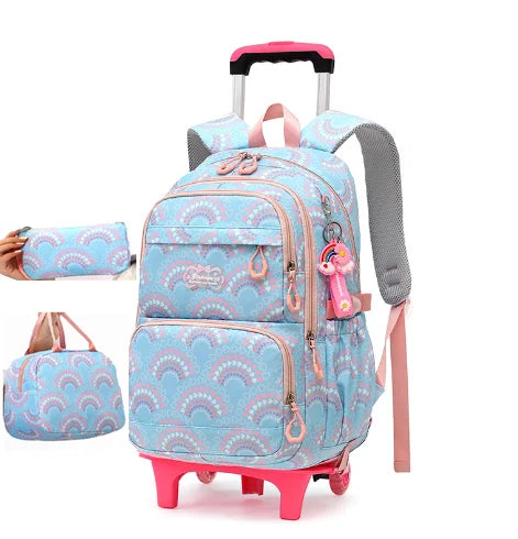 2022 Backpack with Wheels for Girls Lightweight Rolling Backpacks 3Pcs Set 16 Inch Kids Roller Backpack for School Travel Bags