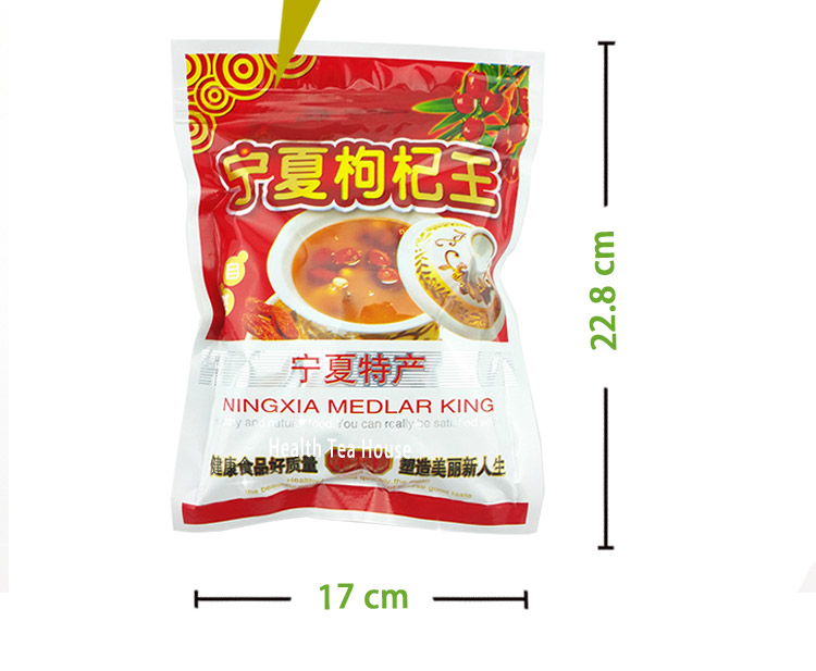 About Goji berries: This goji berry is from Ningxia Zhongning county where is famous for growing goji. Its surface is clean;thin-long oval shaped;with obvious white spikes;has very good medical functions;with low content of sugar. This goji berry tastes slightly sweet if you put it into your mouth and eat it directly. This goji berry is dried,so the quantity is more than the one is wet. As you know,wet goji berry contains more water,as a results,the quantity of dried goji berry is more than the wet one when they are of a same weight. Dried goji berry will be better and more cost-effective. It can be drunk as herbal/fruit tea individually or with other fruits or flower teas. It also can be added to rice congee, as well as used in Chinese tonic soups, in combination with chicken or pork, vegetables, and other herbs. Goji has very much good functions to our body. It nourishes the liver and brightens the eyes, tonifys kidney,enriches blood and calm nerves and etc. Storage:Keep sealed and put in a cool,dry place or refrigerator, with the temperature of 0-18 degrees.