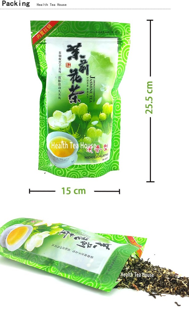 250g Organic Jasmine Green Tea Buy Directly From China Flower Green Te Help Sliming Bag Packaging 100% Natural Green Food This tea is jasmine flower mixed with Green Tea, it have both the Green Tea tea tender and jasmine fragrance.