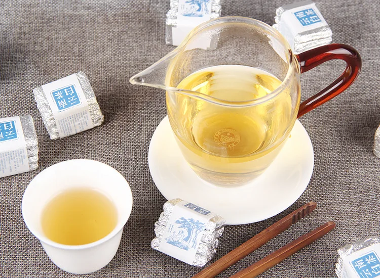 The small white tea bricks are easy to carry. Without frying or rubbing, it is naturally withered, retaining the original taste of tea. The taste is mellow and sweet, like Pu'er, the more fragrant it ages. The tea soup is warm and moist, not bitter or astringent, each piece is individually packaged, simple and has a good taste, brewed once in a brick.