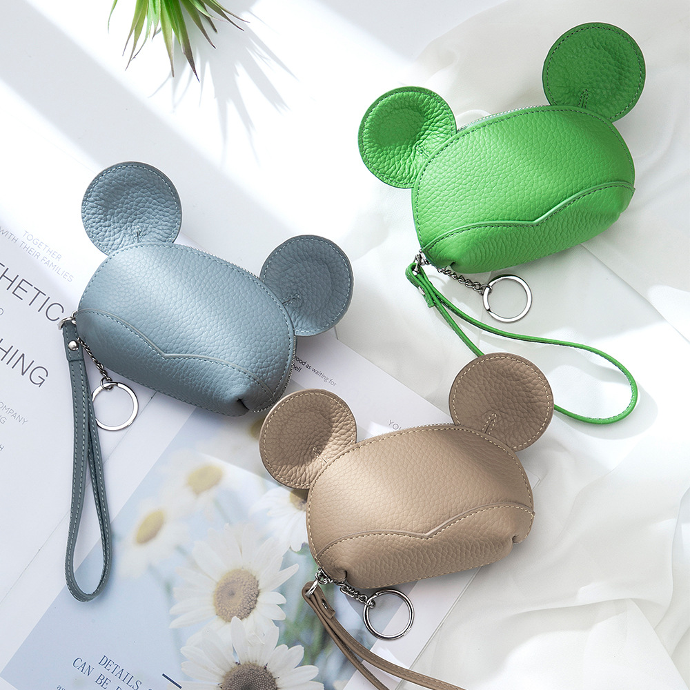 2023 New Genuine Leather Cute Coins Purse for Girls Women Cartoon Big Ears Mouse Storage Bag Small Coins Wallet Lady Sweet Purse