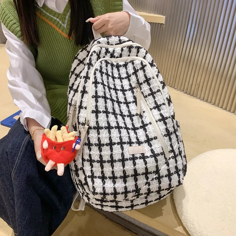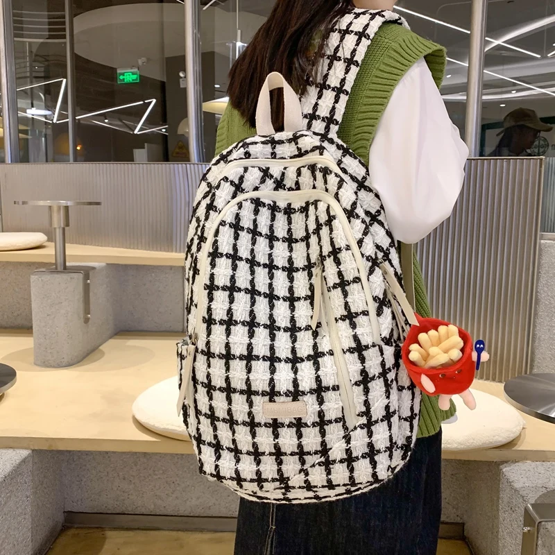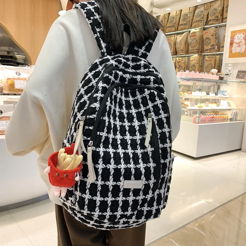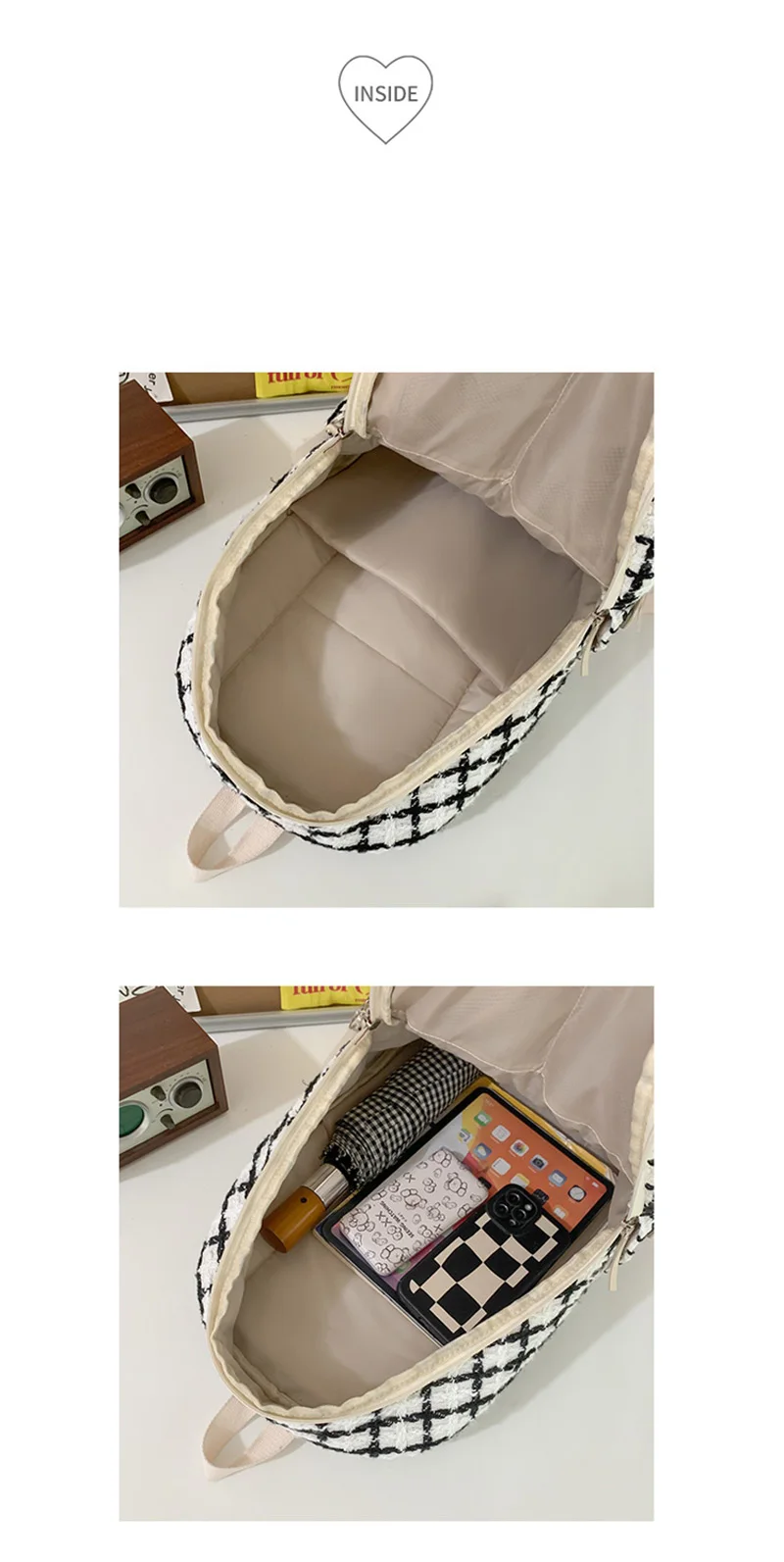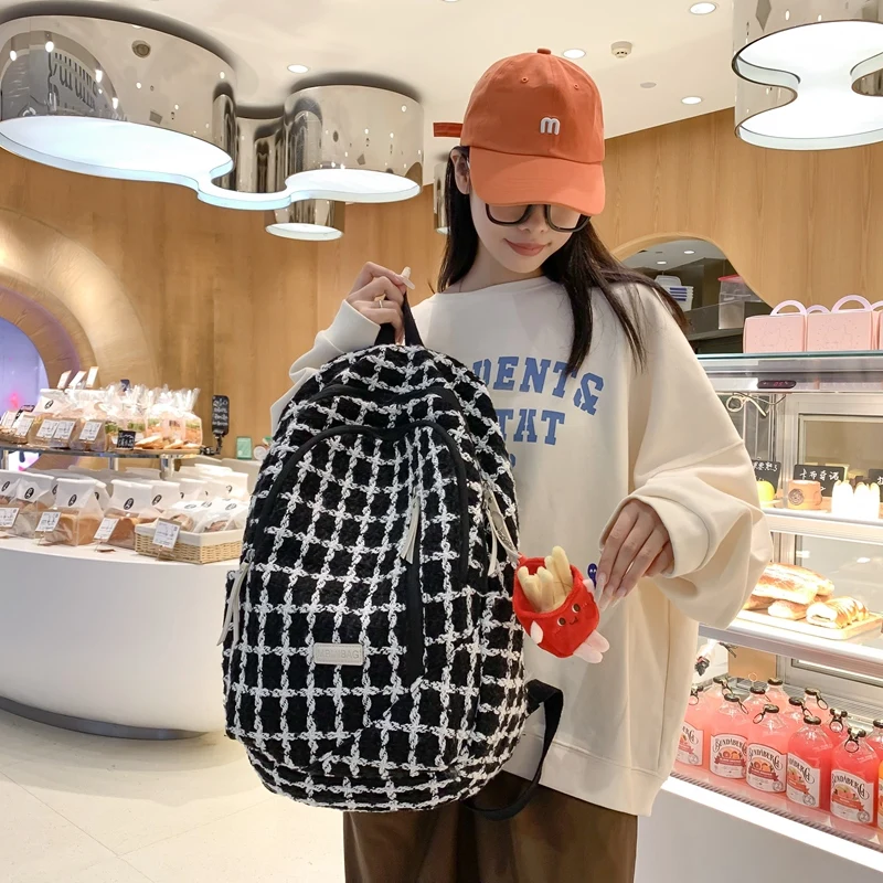 2023 New Lattice Woman Backpack Winter Design Casual Travel Bagpack School Bag For Teenage Girls Boys