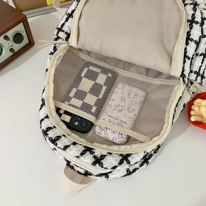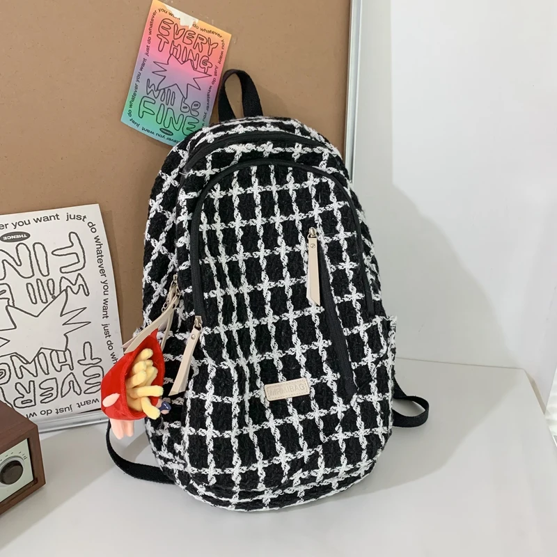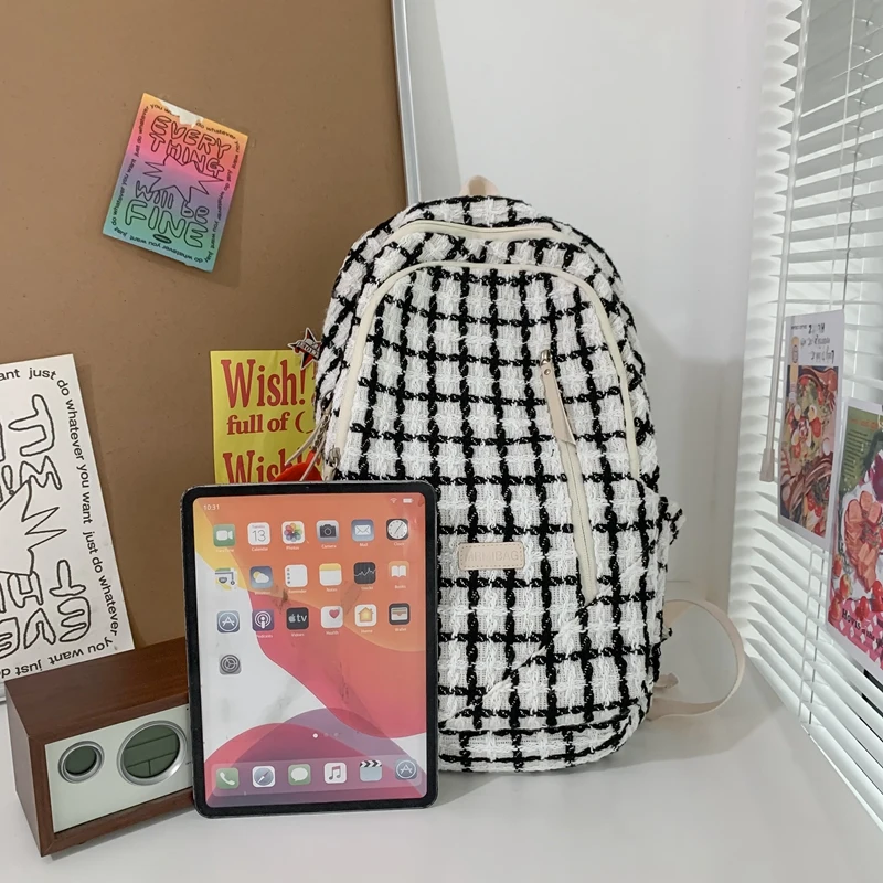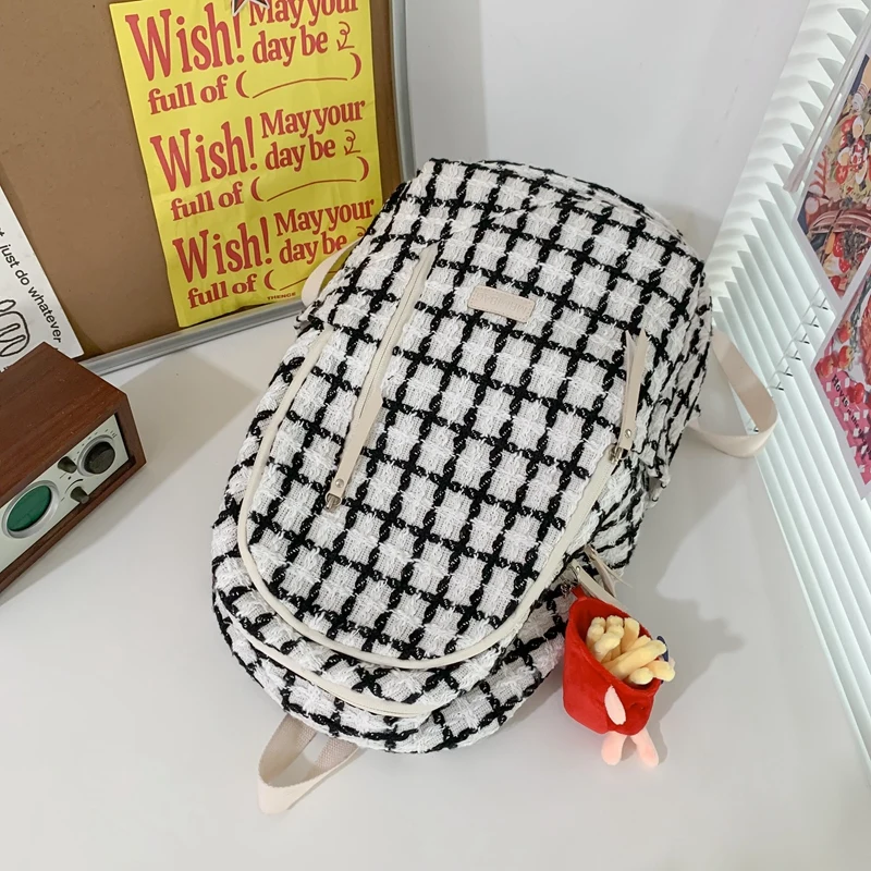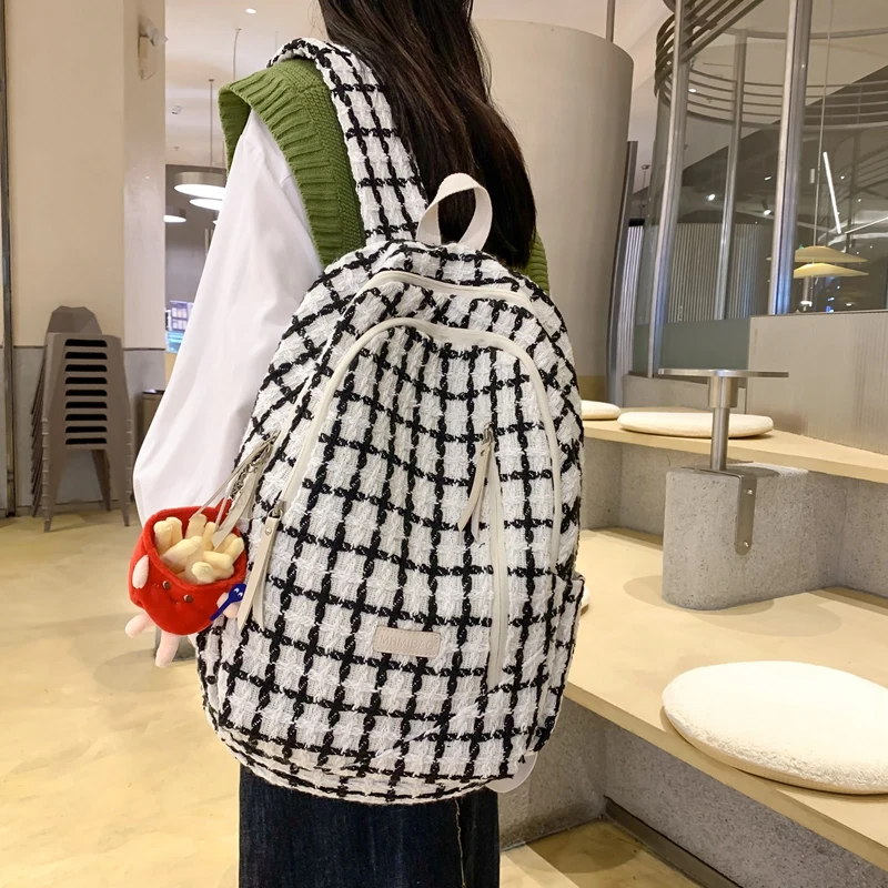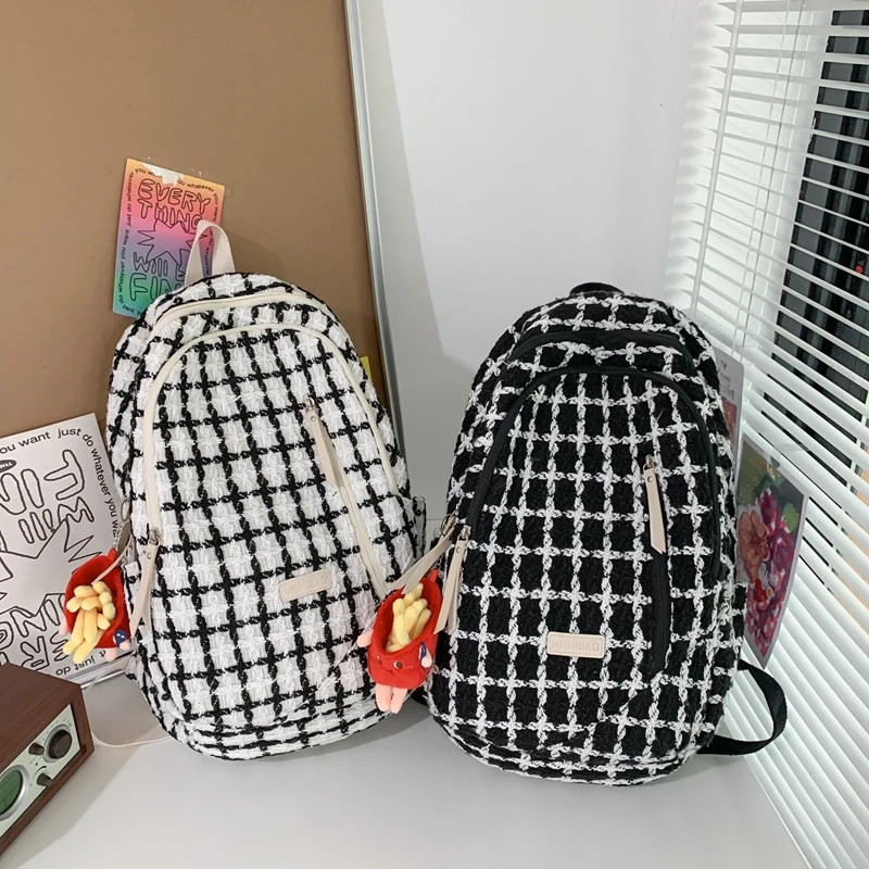2023 New Lattice Woman Backpack Winter Design Casual Travel Bagpack School Bag For Teenage Girls Boys