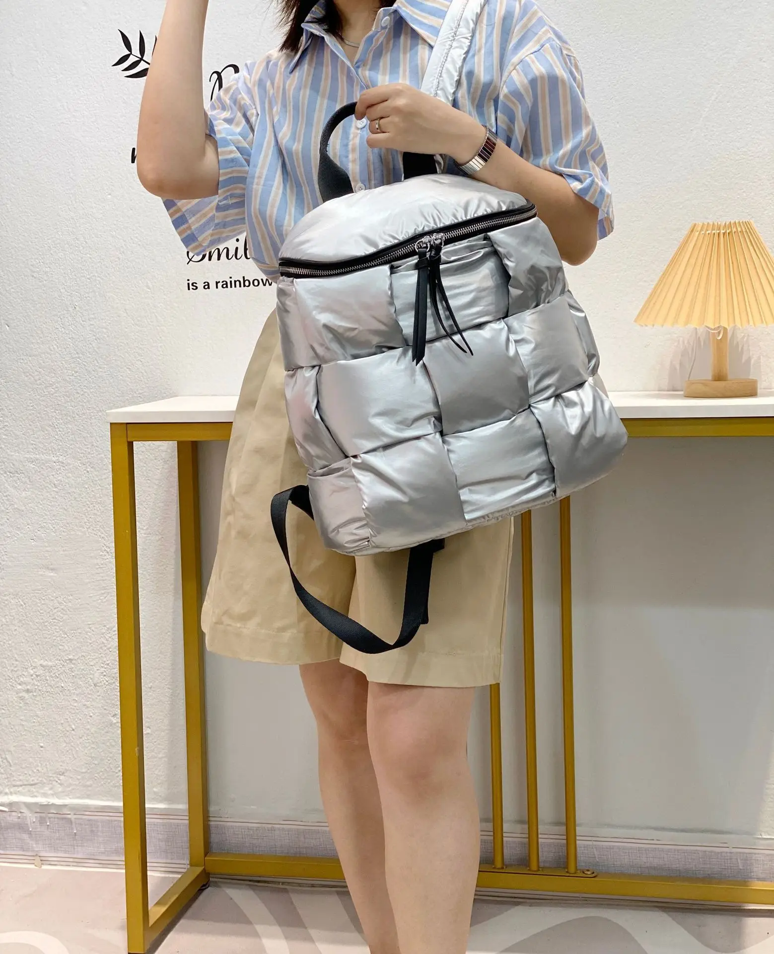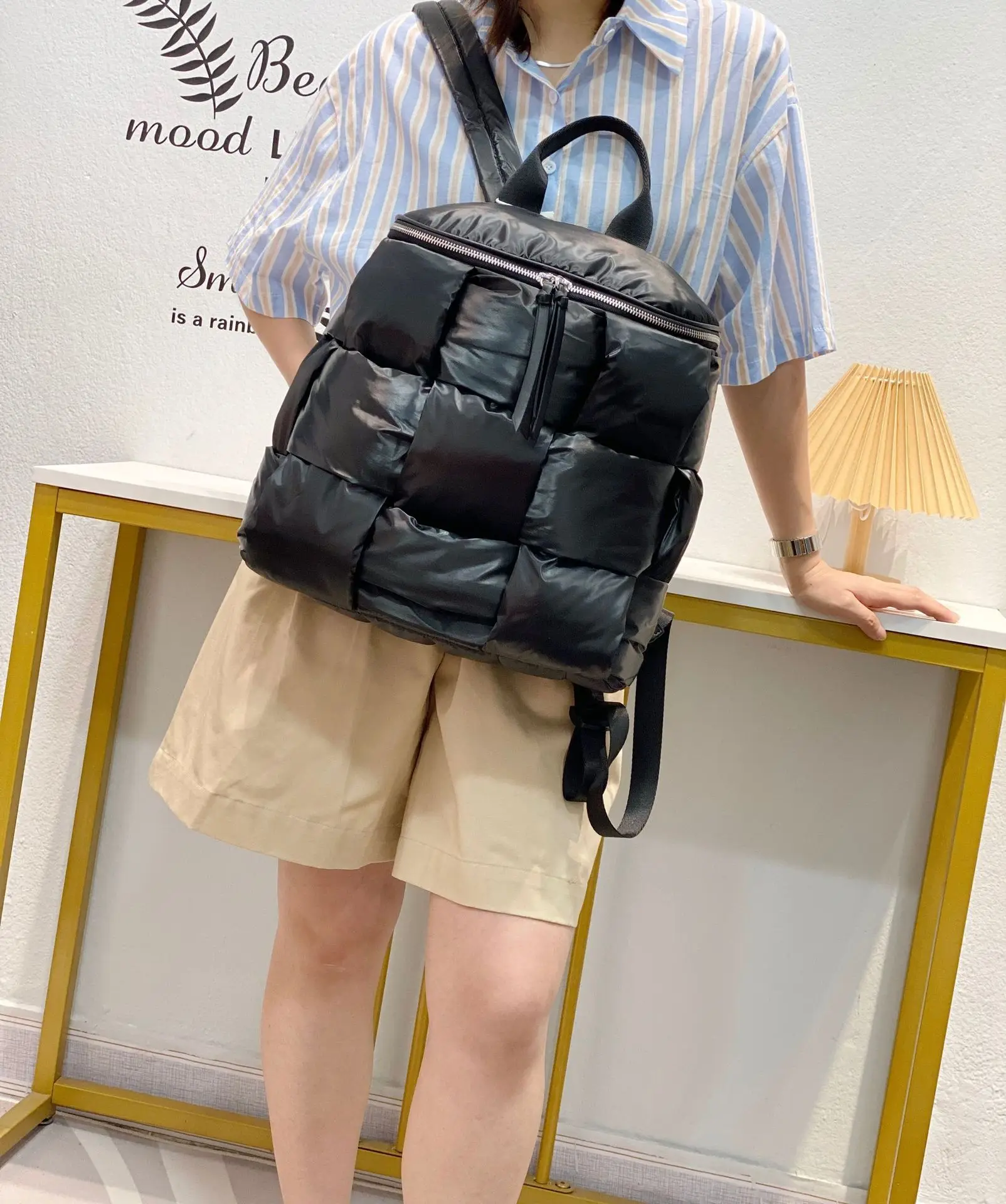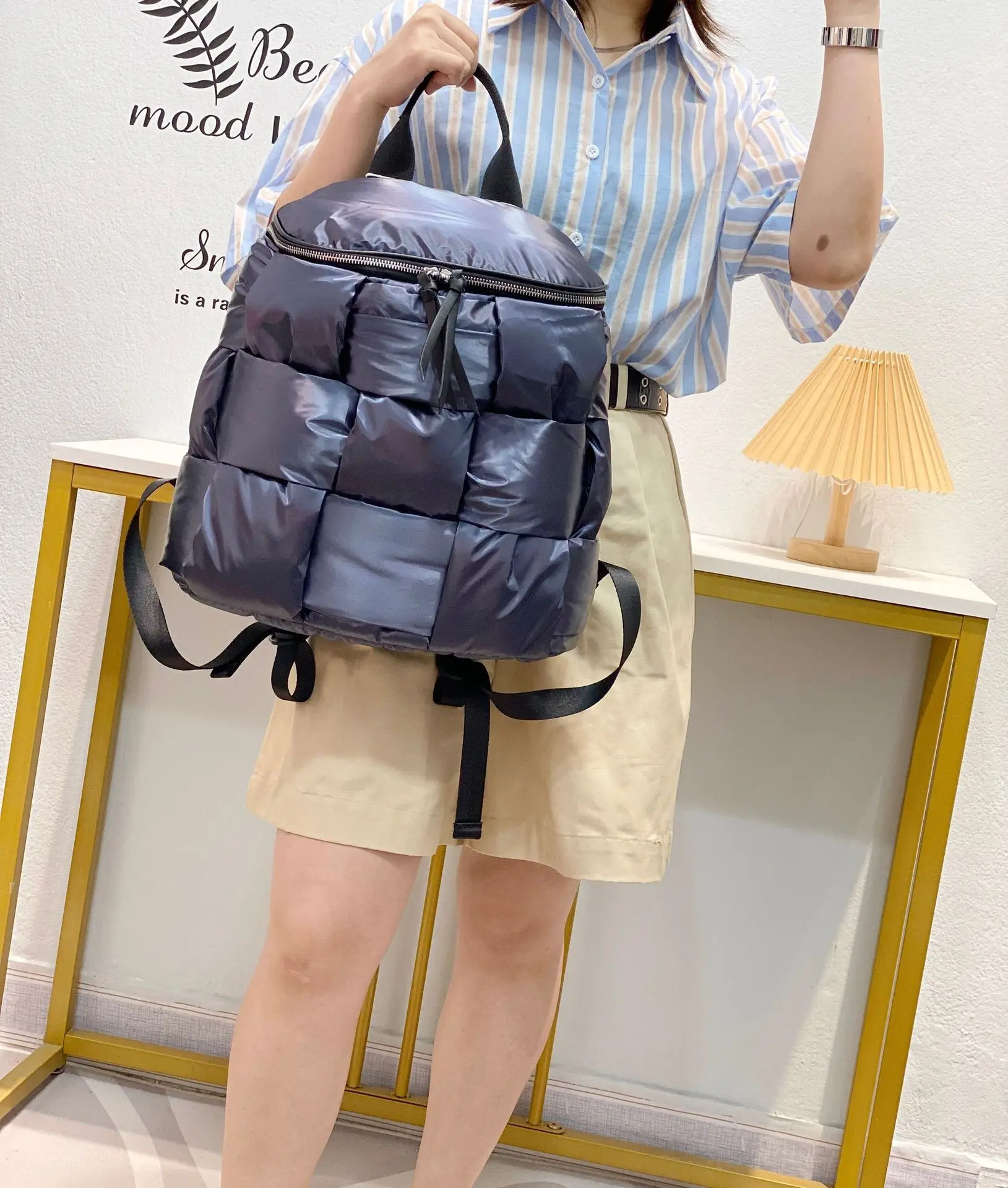 2023 New Women's Casual Backpacks Down Computer Backpack Autumn Winter Style Korean Fashion Space Cotton Solid Color School Bag