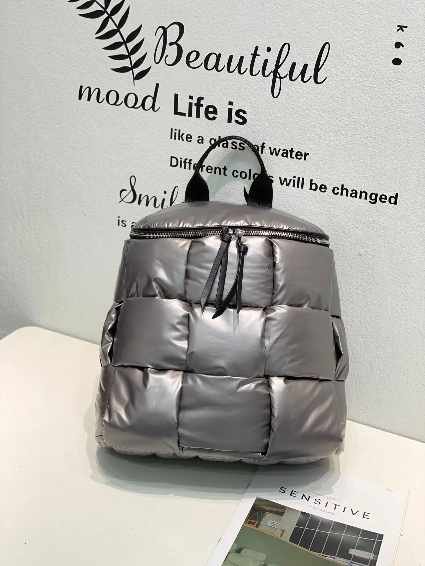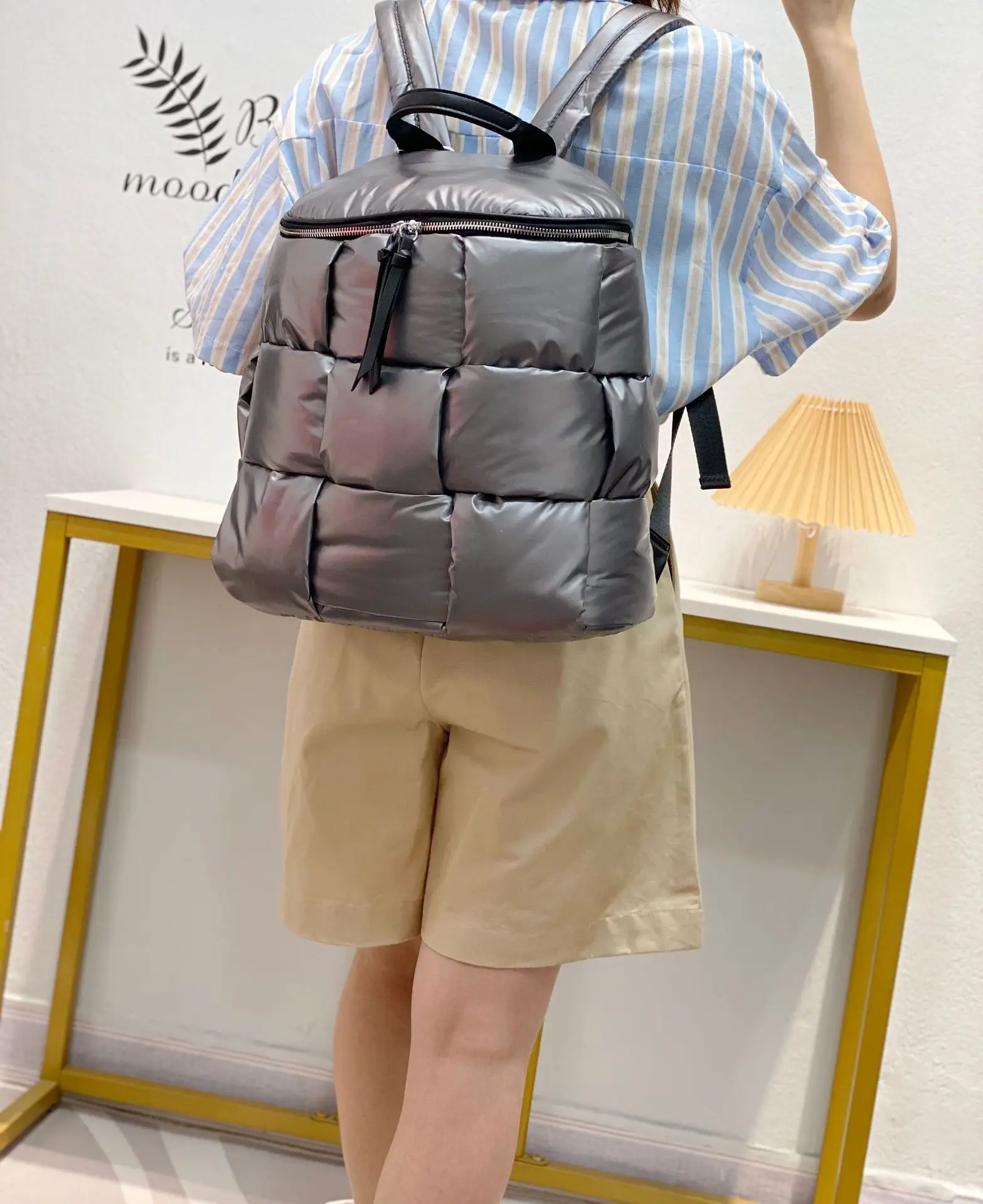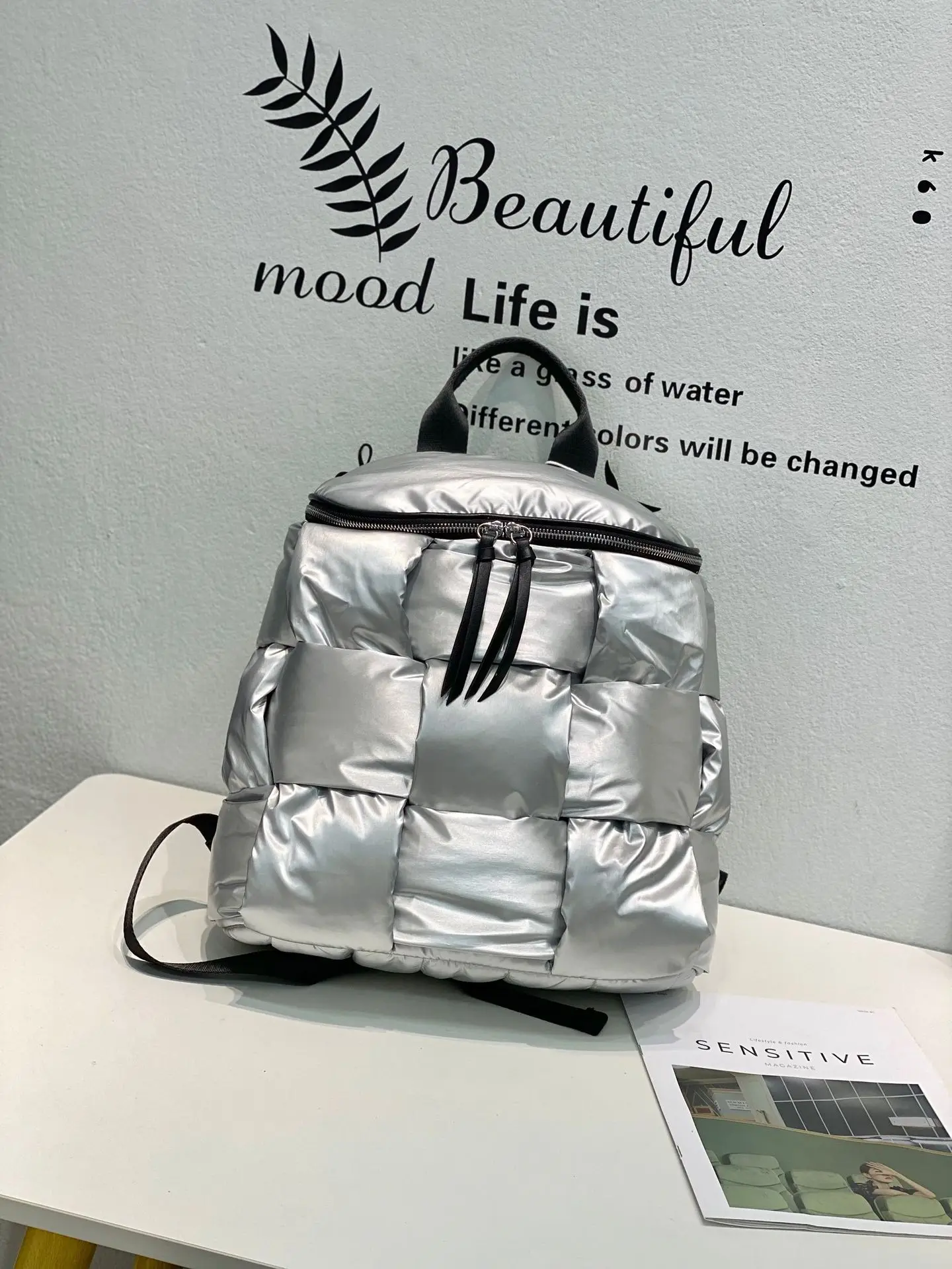 2023 New Women's Casual Backpacks Down Computer Backpack Autumn Winter Style Korean Fashion Space Cotton Solid Color School Bag