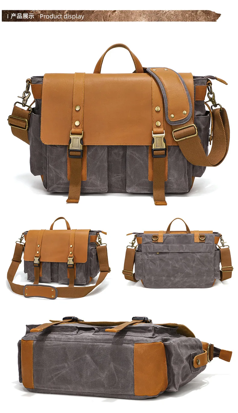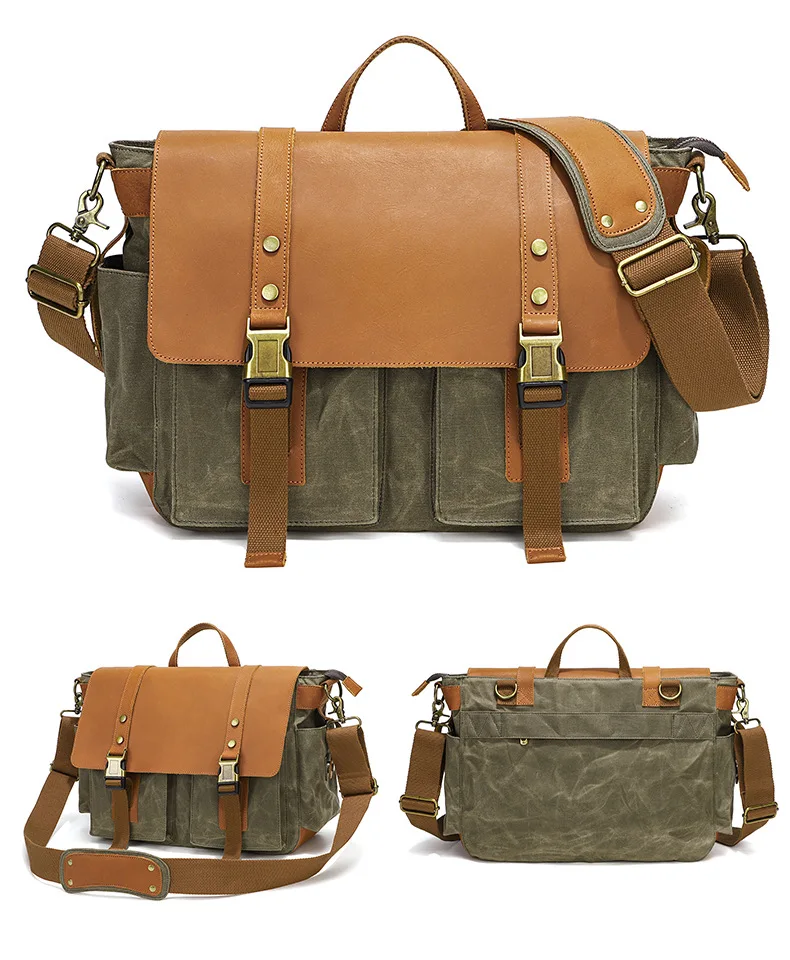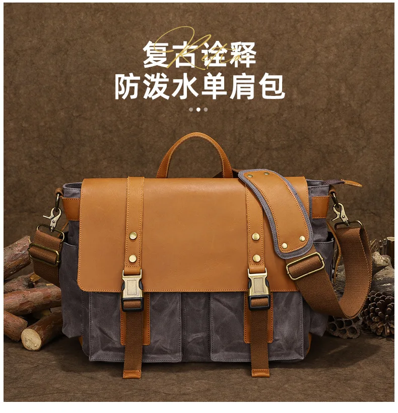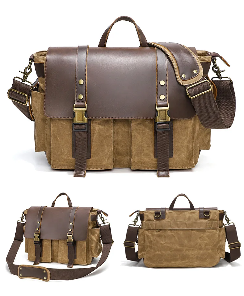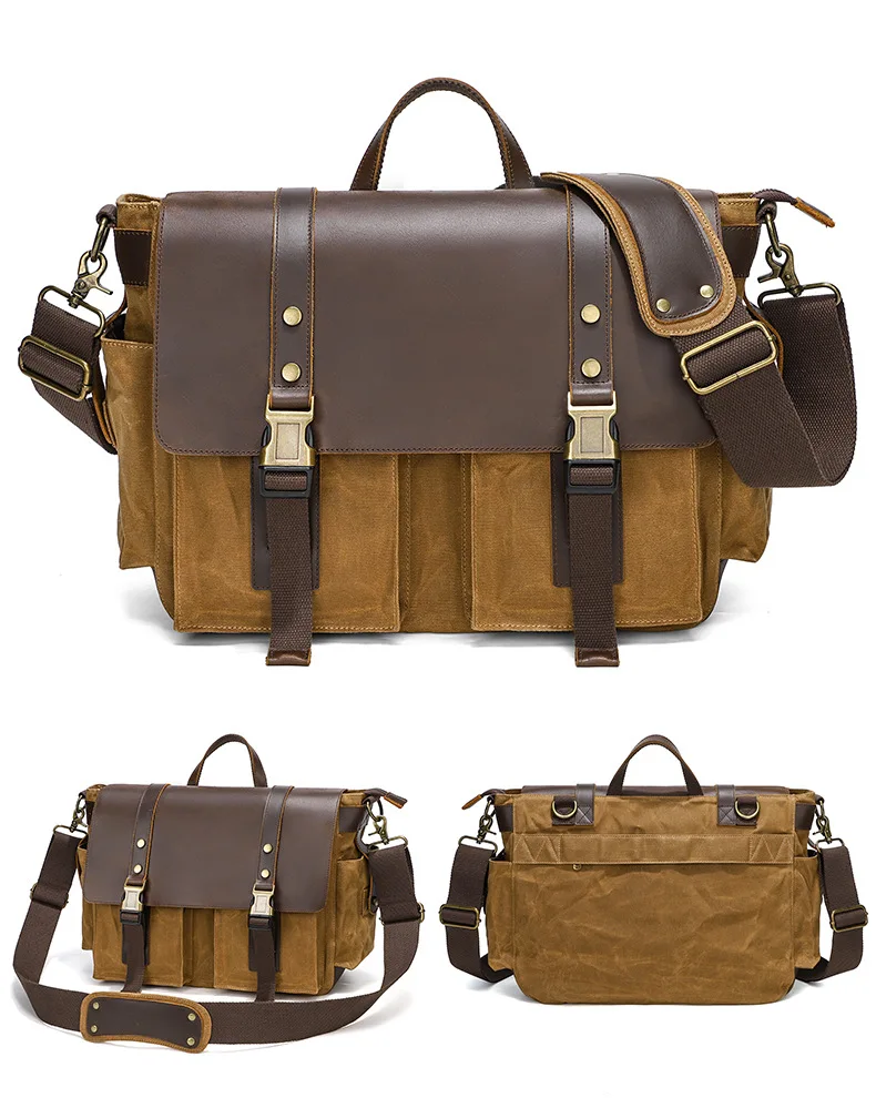 2023 Vintage Leather Canvas Women's Men's Messenger Bag - Fashion Crossbody Shoulder Sling Casual Bag