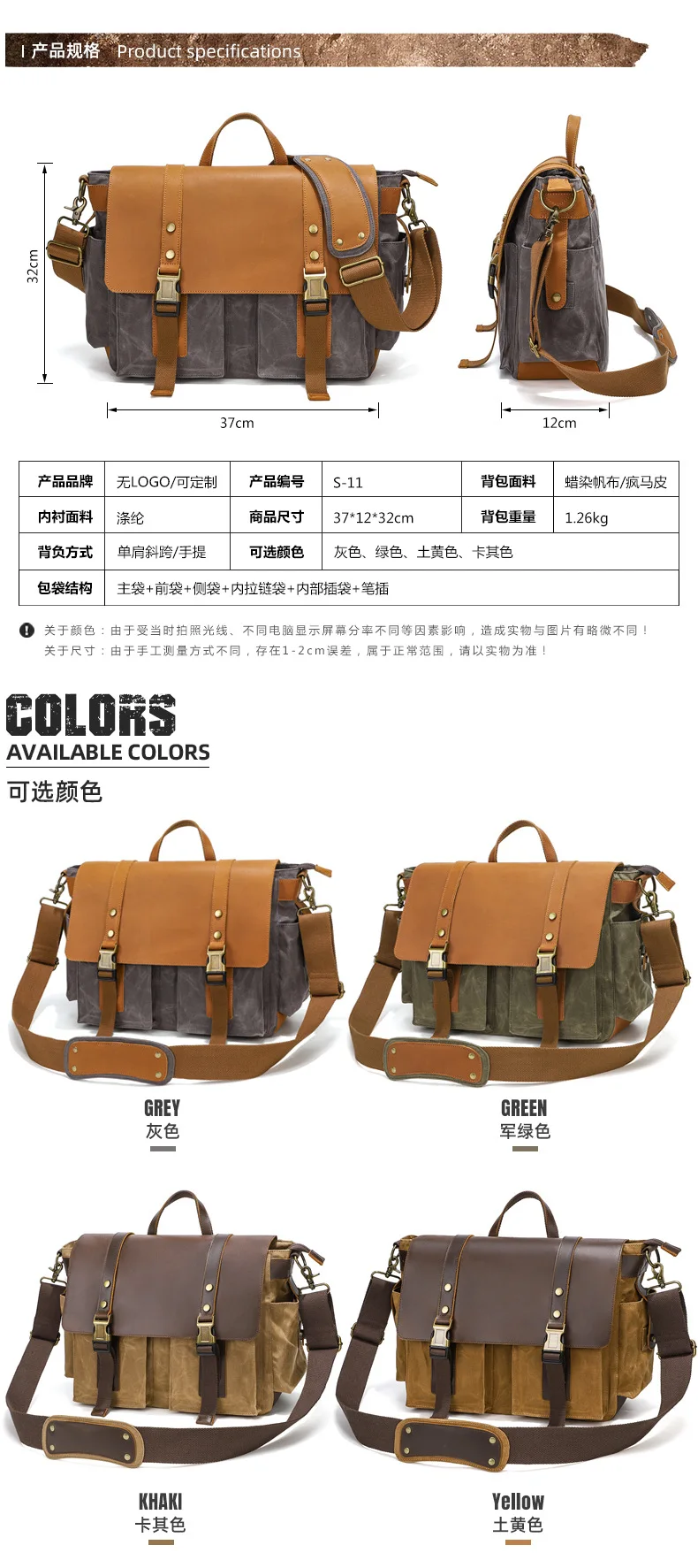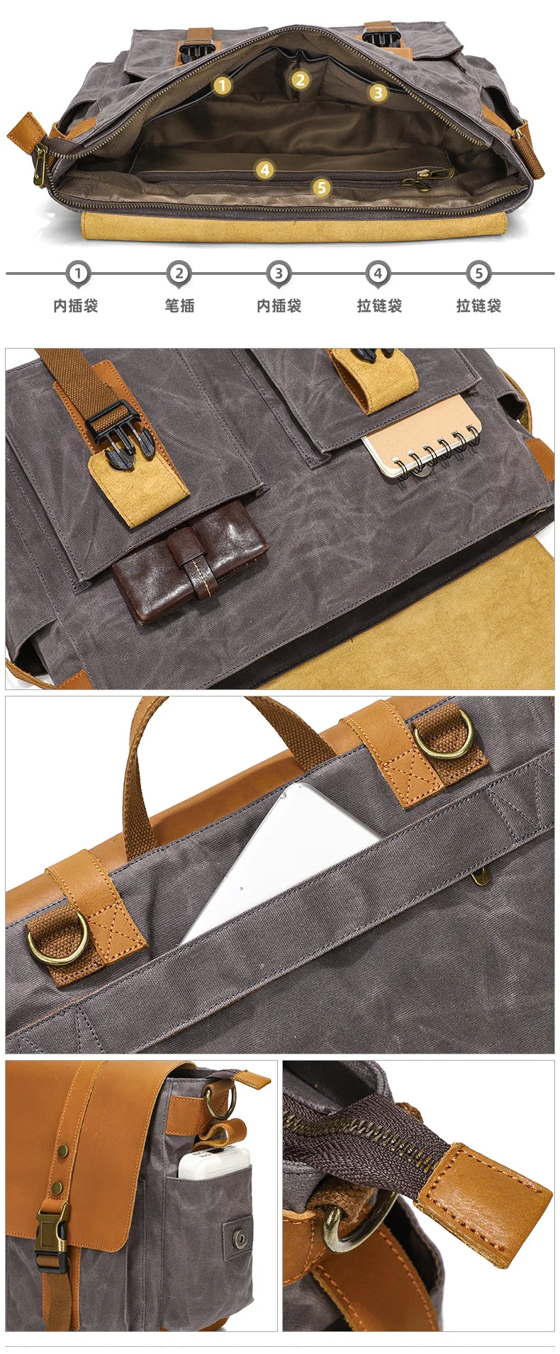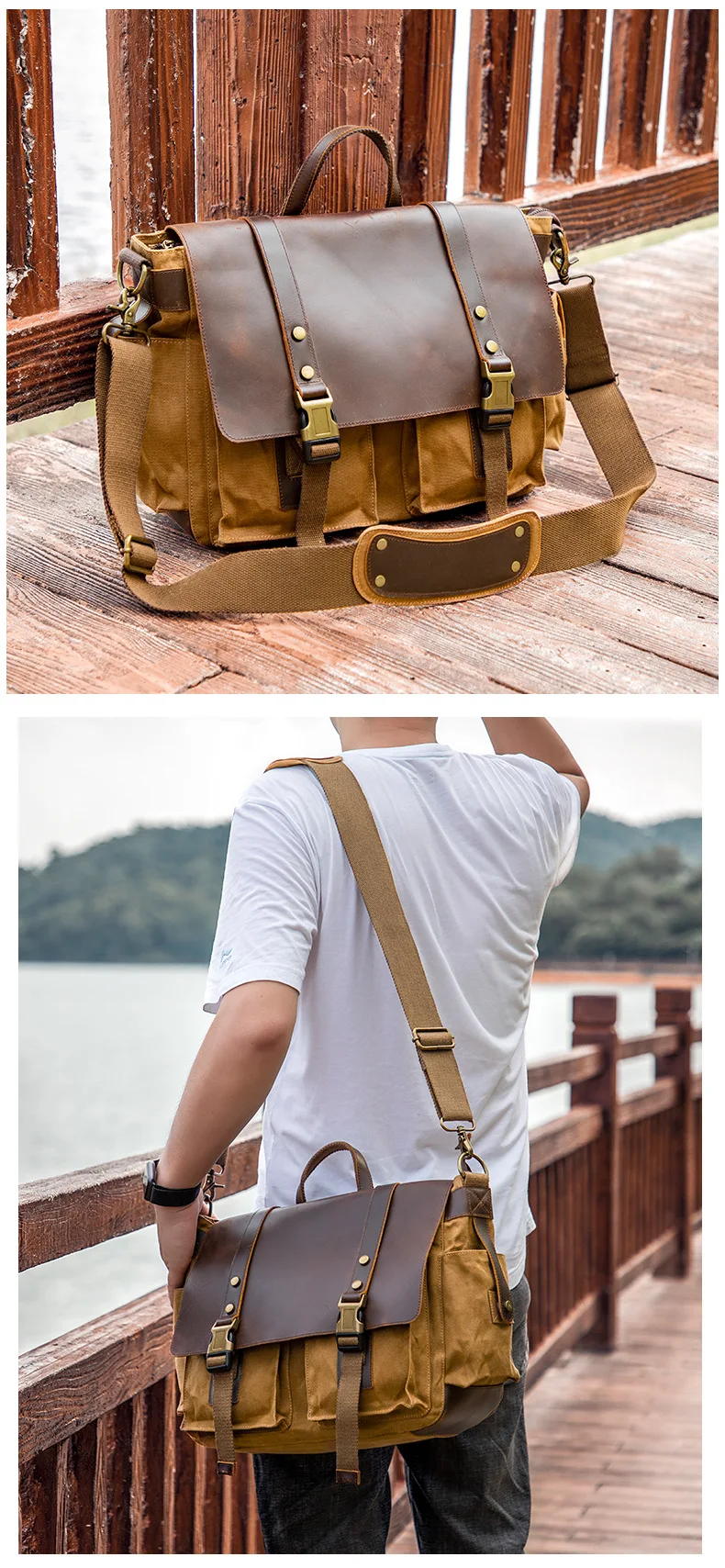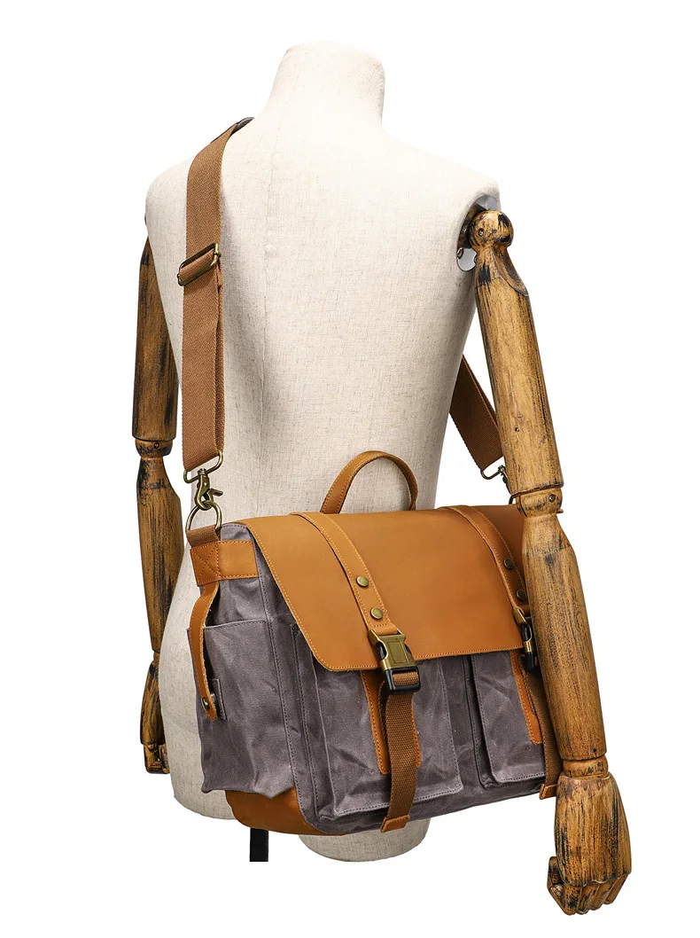 2023 Vintage Leather Canvas Women's Men's Messenger Bag - Fashion Crossbody Shoulder Sling Casual Bag