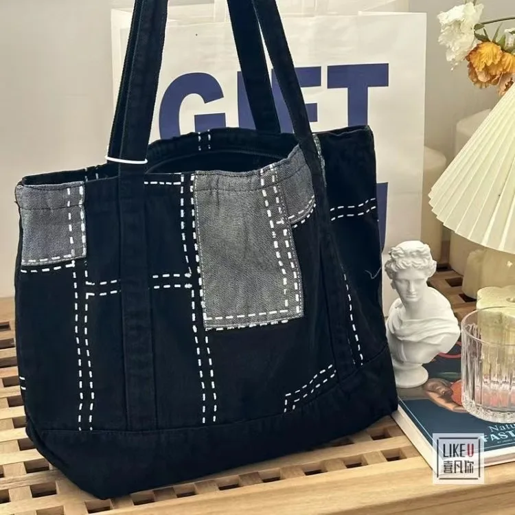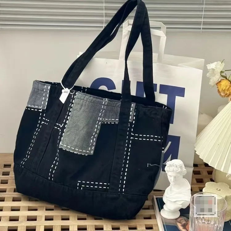 2023 Washed Denim Shopping Bag Woman Retro Bag Fashion Shoulder Bag Harajuku Commuter Bag Large Capacity Crossbody BagTote Bag