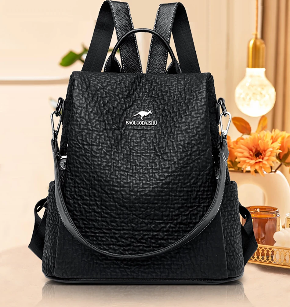 2024 Women Leather Backpacks High Quality Female Vintage Backpack for Girls School Bags Travel Bagpack Ladies Back Pack Rucksack
