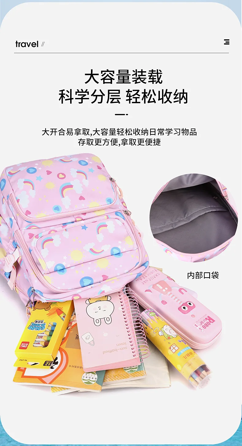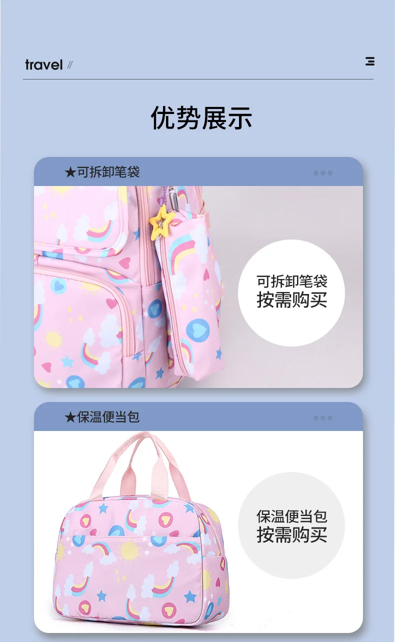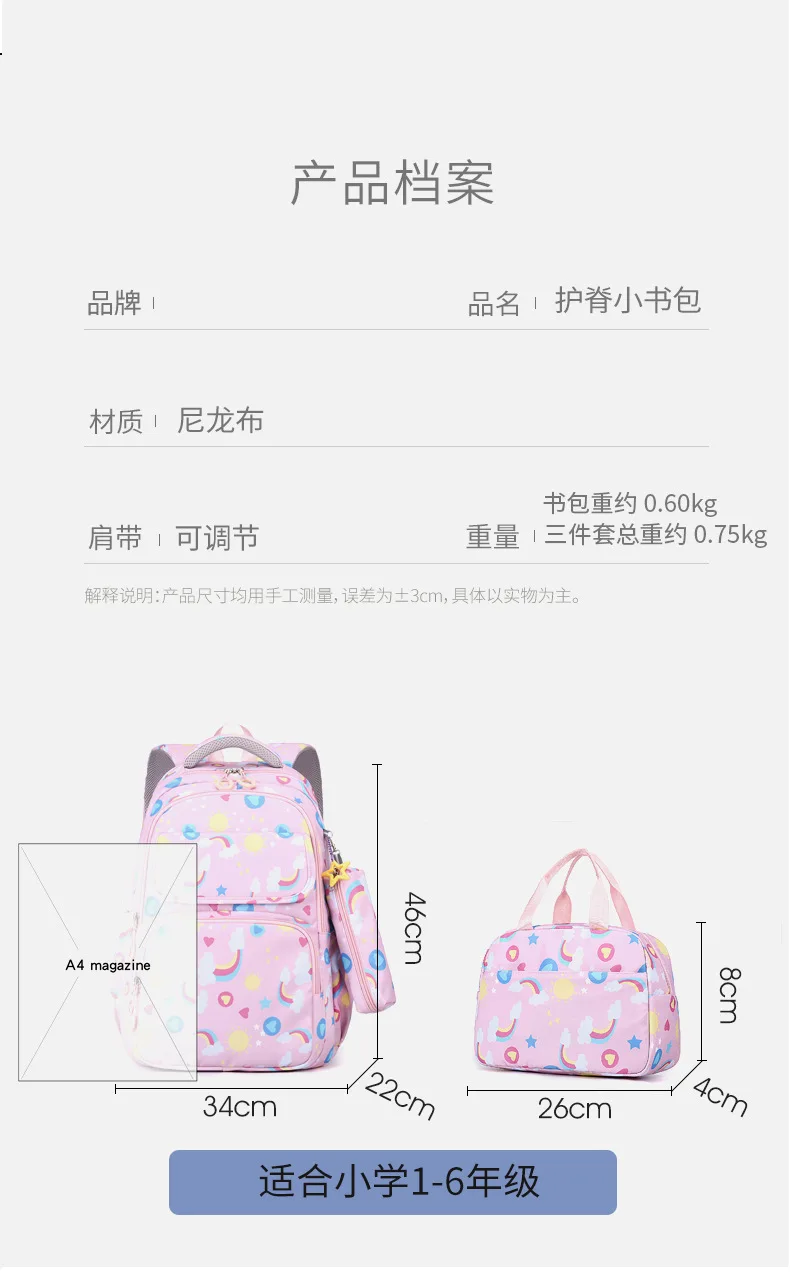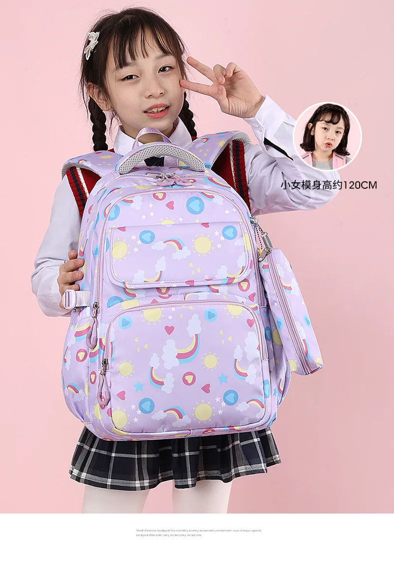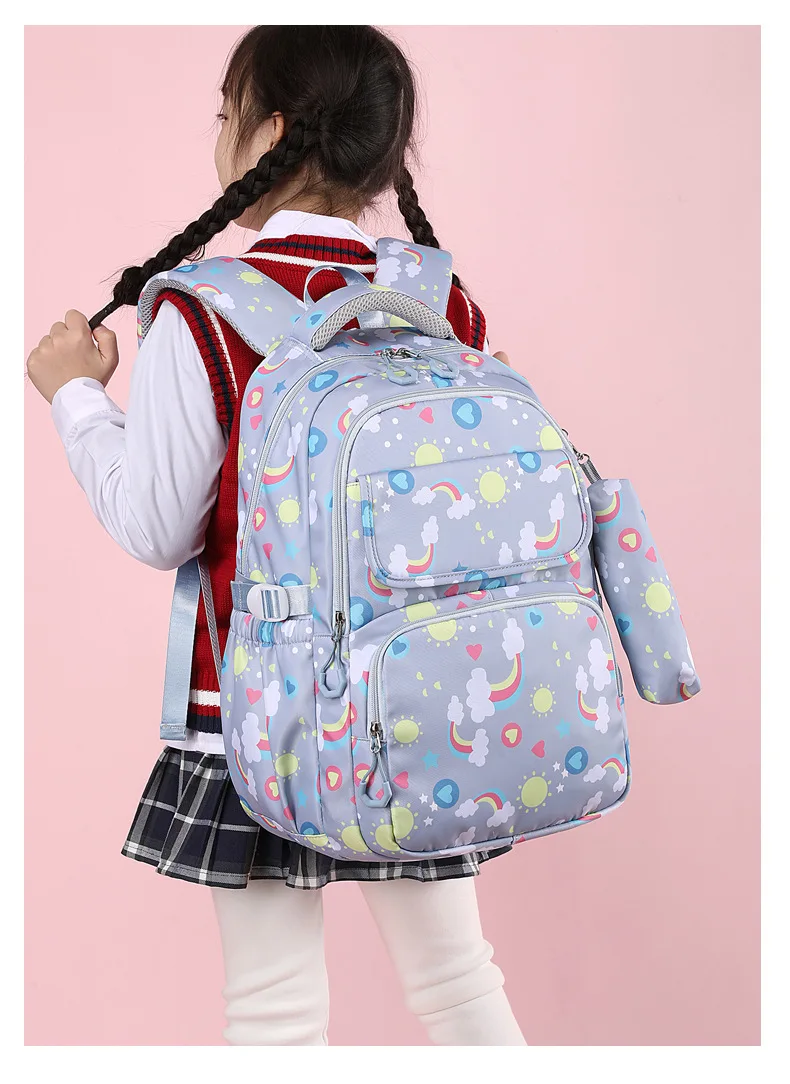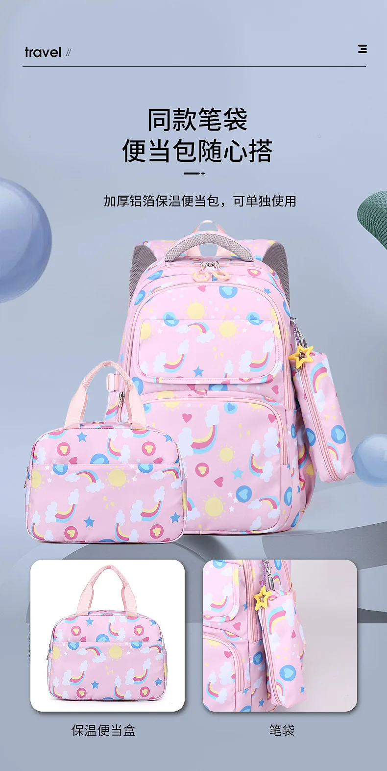 2024 NEW 3pcs/set Printed Backpack Girls Schoolbag High Quality Nylon Book Bag Teenage School Bags with Lunchbag and Pencilbag
