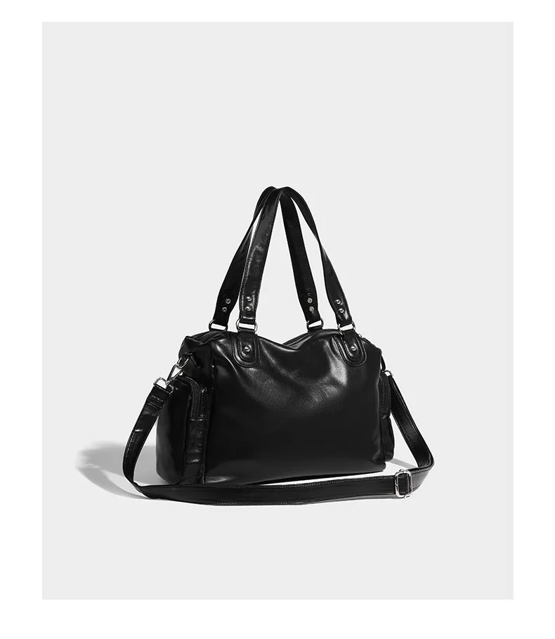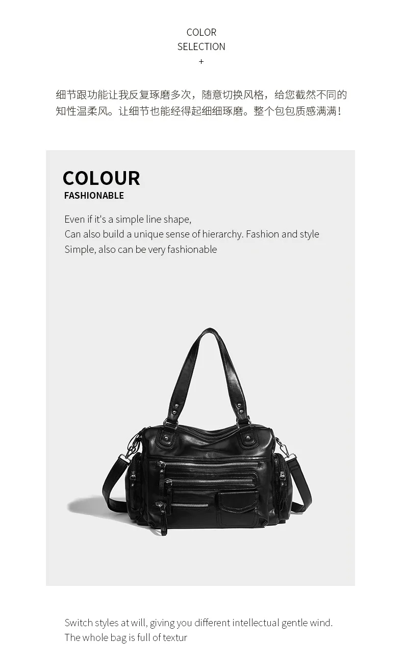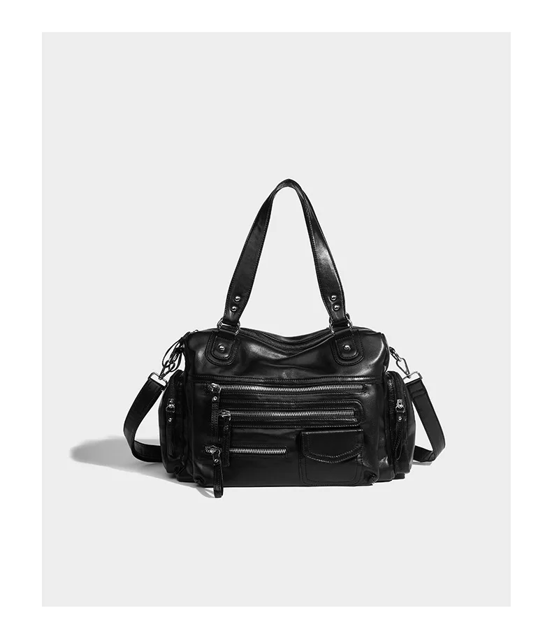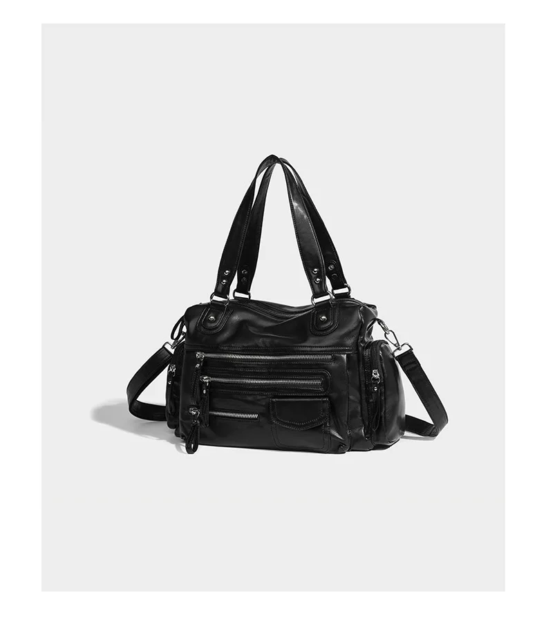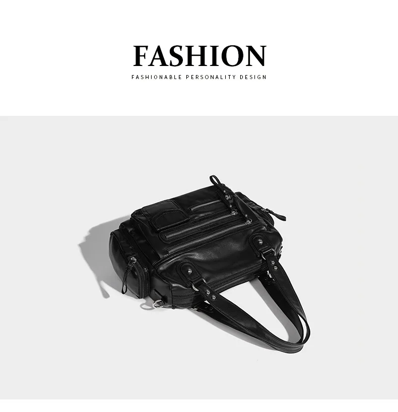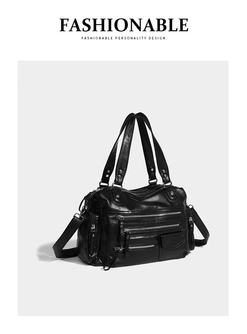 2024 New Black Retro Zipper Motorcycle Bag Soft Women’s Bag Light Luxury College Style Multifunctional Shoulder Crossbody Bag