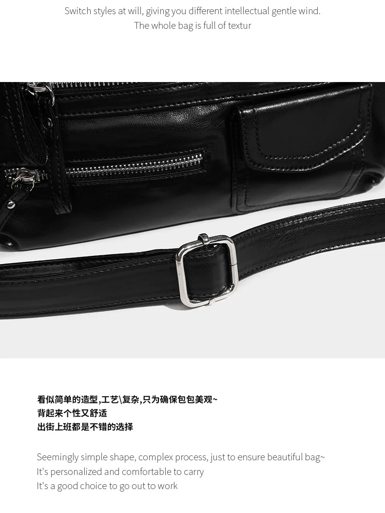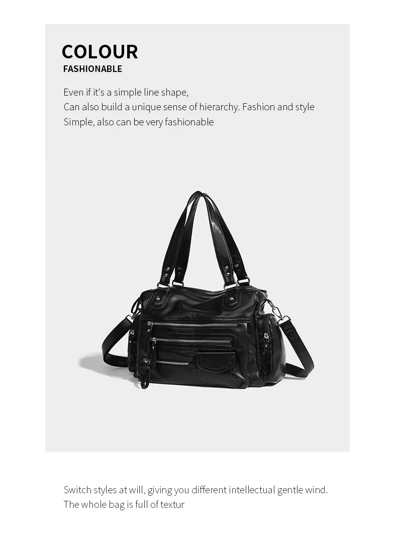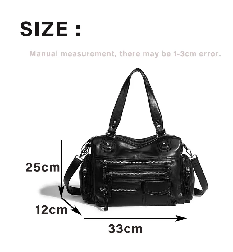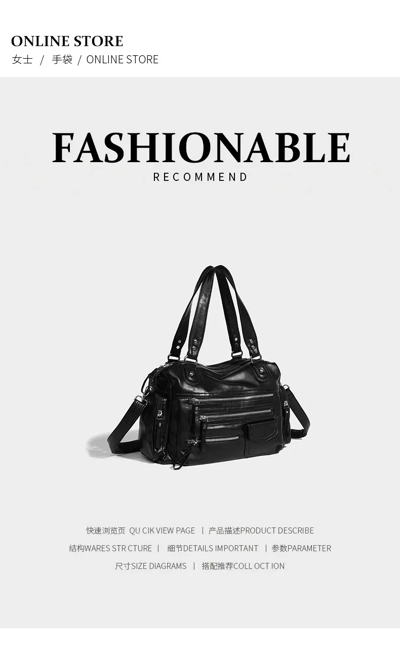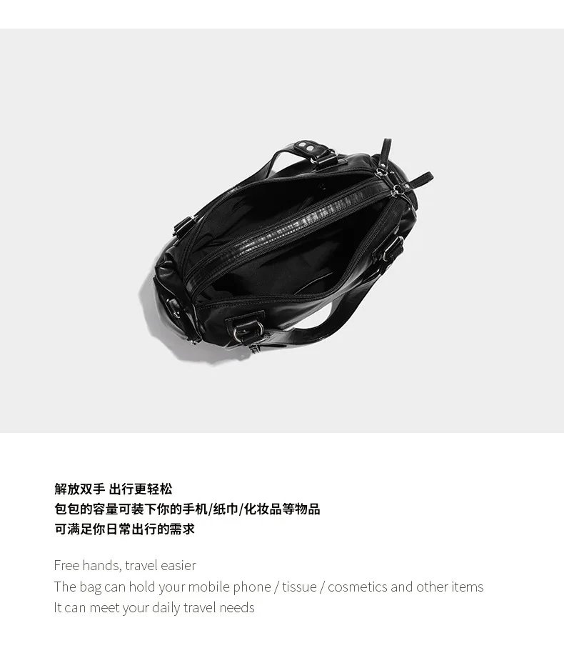 2024 New Black Retro Zipper Motorcycle Bag Soft Women’s Bag Light Luxury College Style Multifunctional Shoulder Crossbody Bag