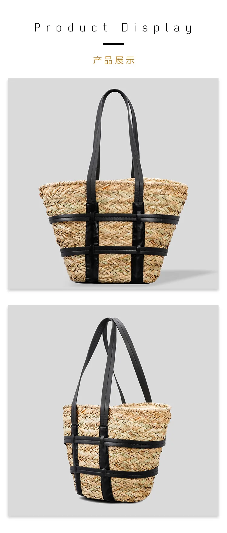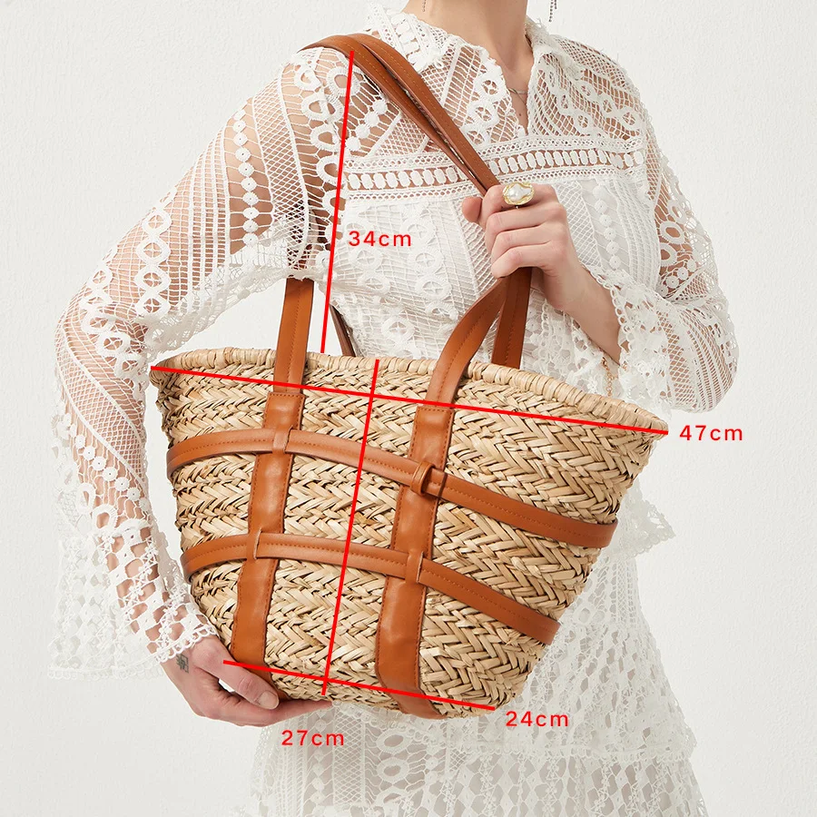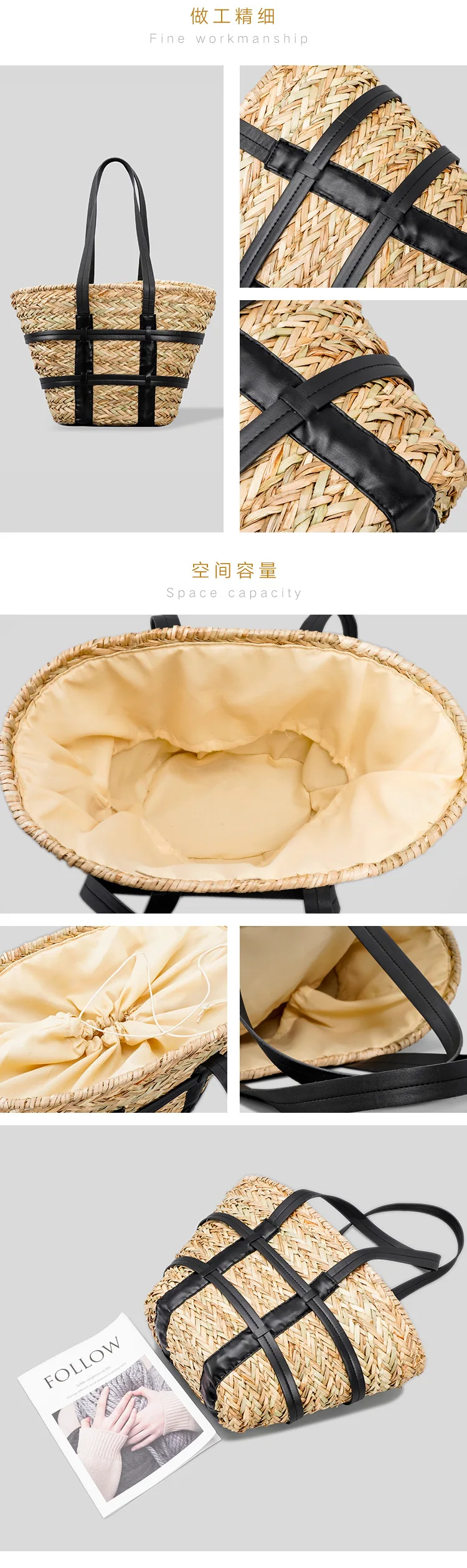 2024 New Bohemian Summer Beach Straw Bag Fashion Shoulder Bag Drawstring Large Capacity Designer Women's Handbag Shopping Wallet
