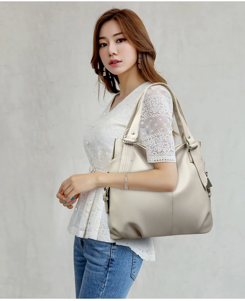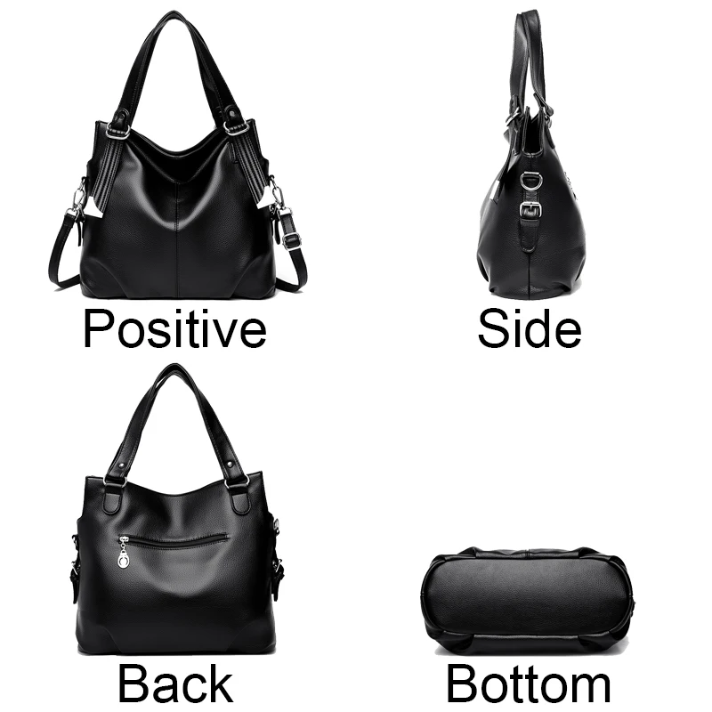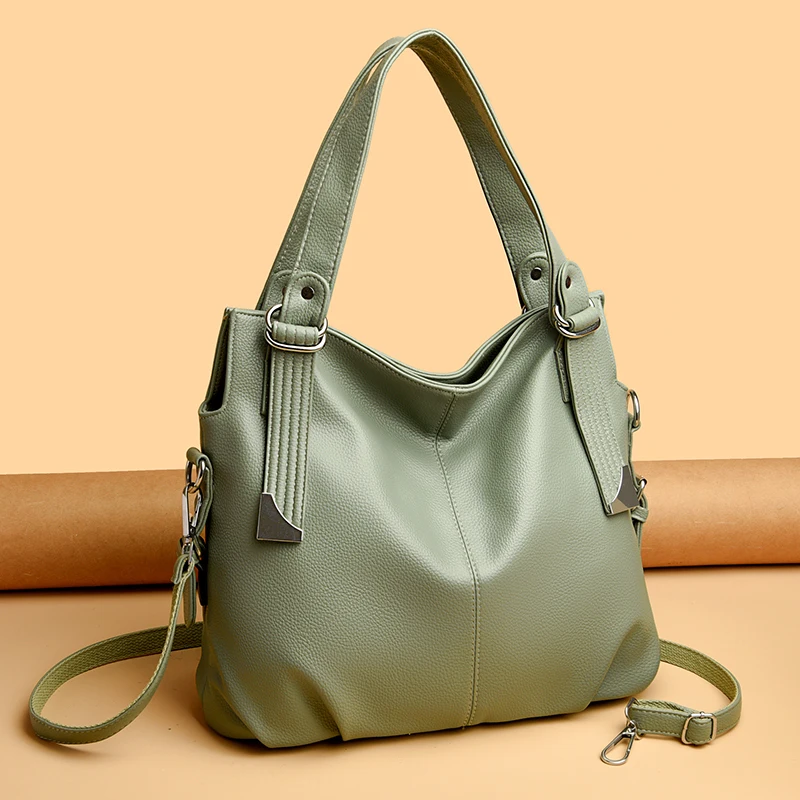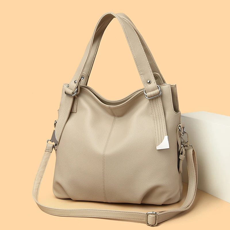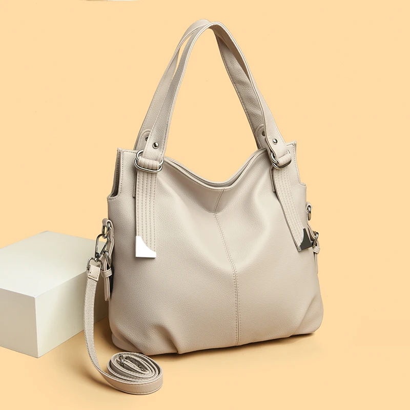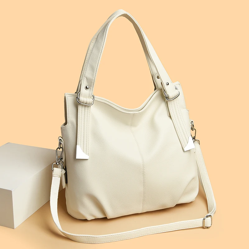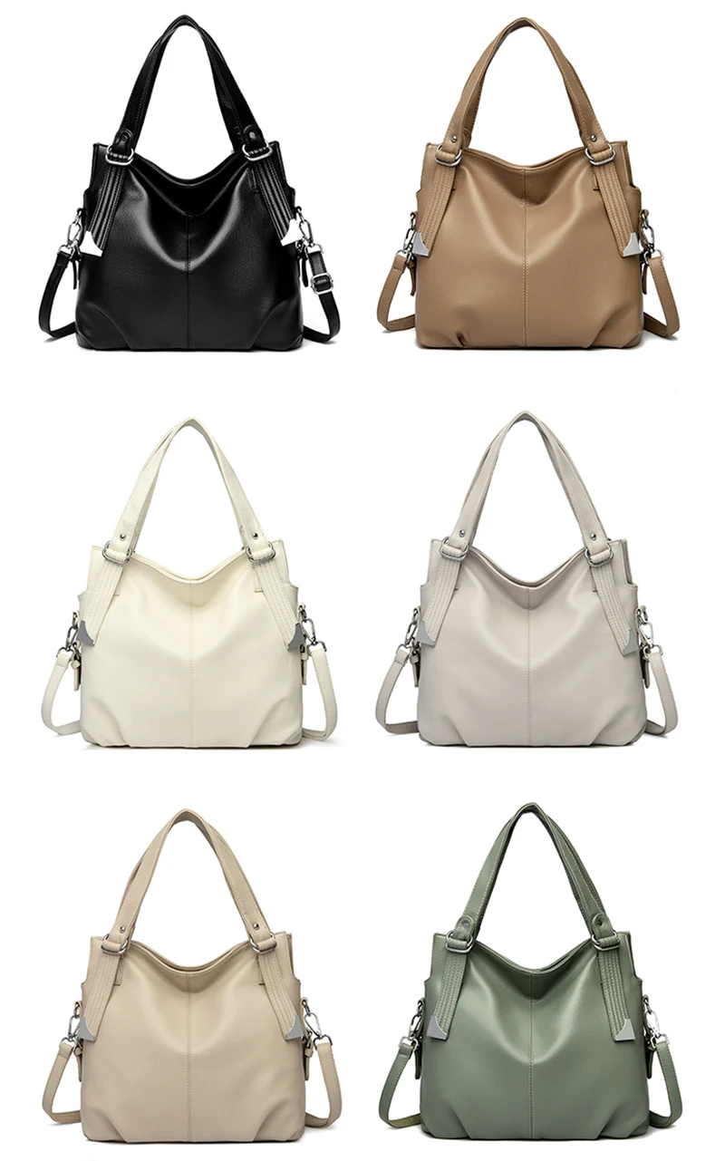 2024 New Casual PU Leather Large Capacity Tote Bags For Women Fashion Solid Color Zipper Female Shoulder Bags Ladies Handbag