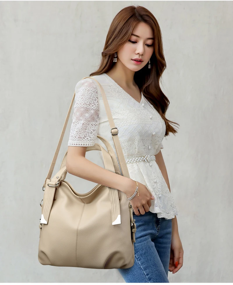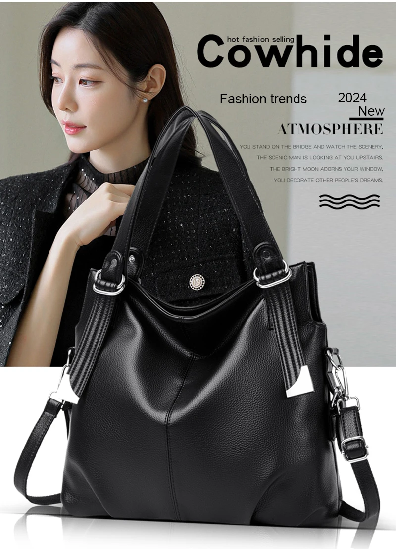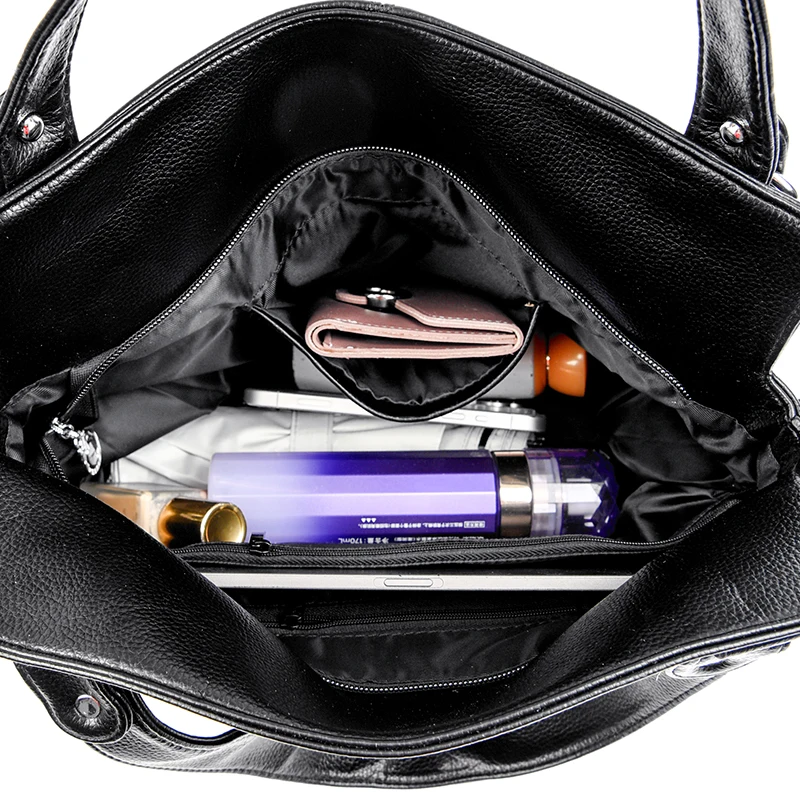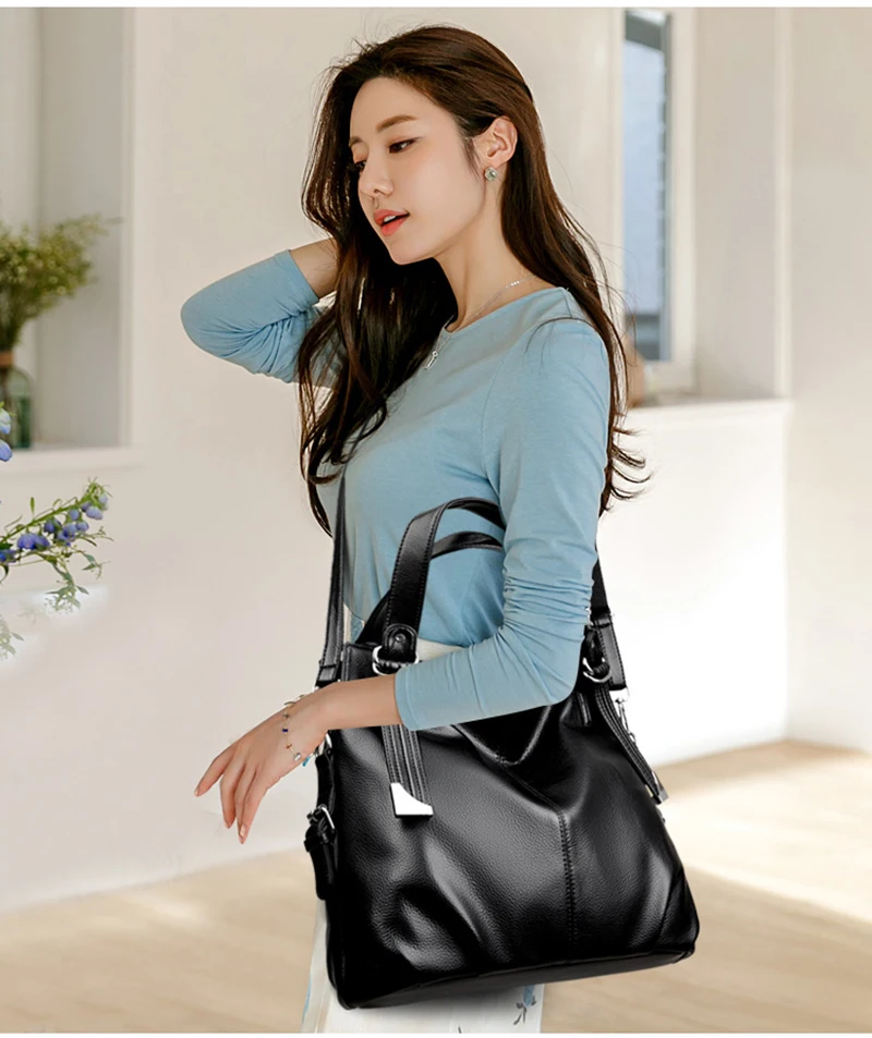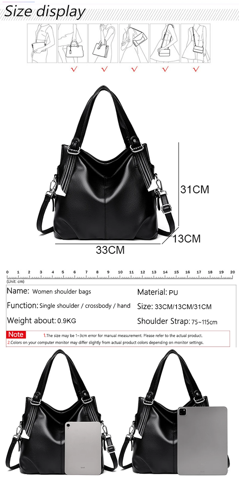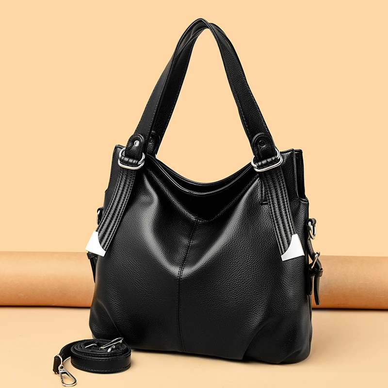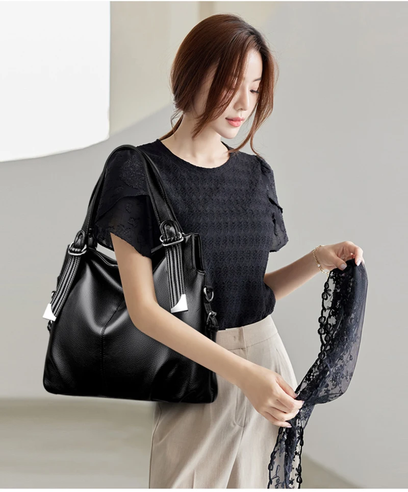 2024 New Casual PU Leather Large Capacity Tote Bags For Women Fashion Solid Color Zipper Female Shoulder Bags Ladies Handbag