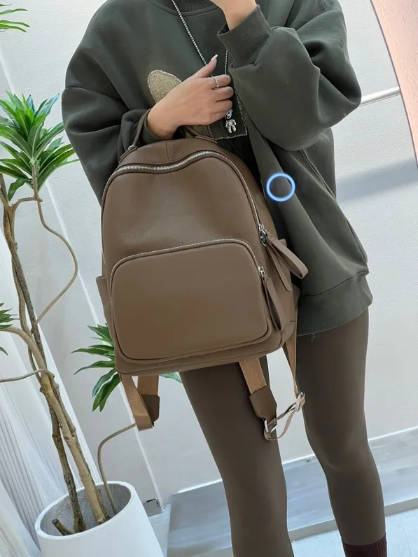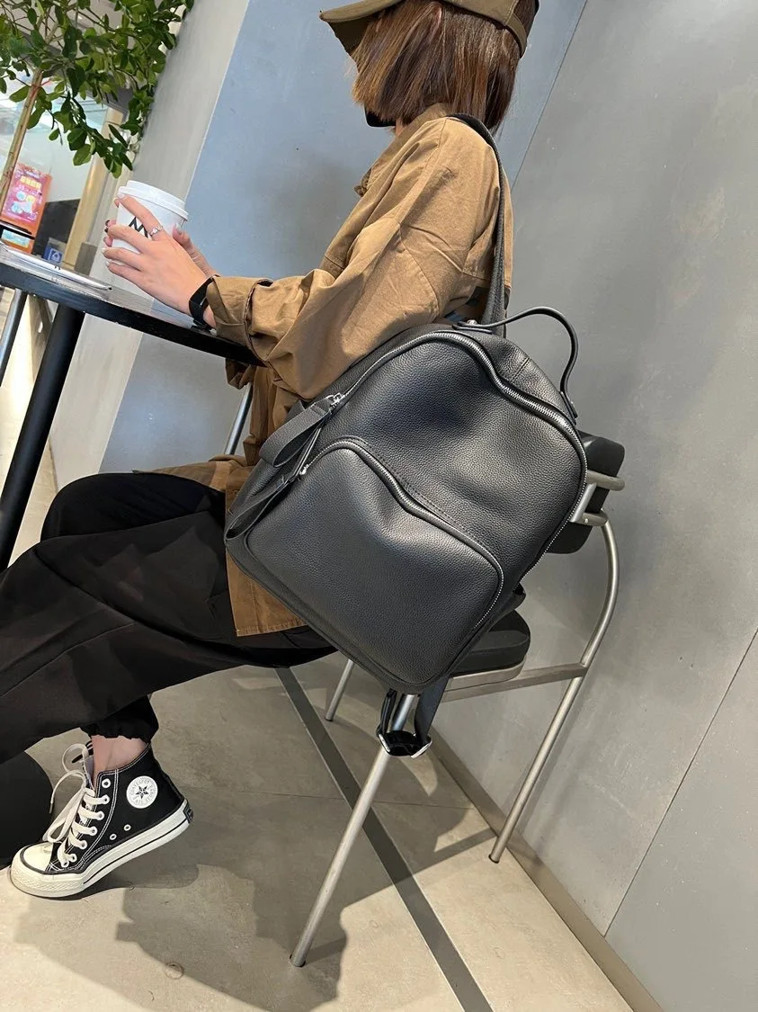 2024 New Cowhide Leather Shoulder Bags Large Capacity Practical Versatile Travel Bag Fashion Design Female School Laptop Bookbag