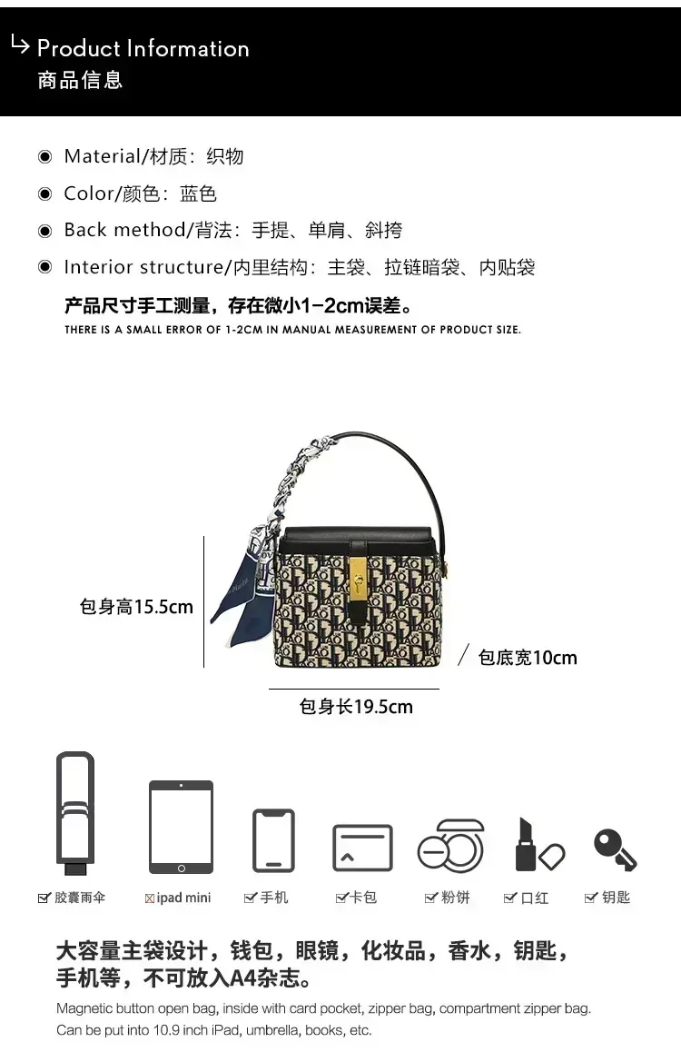 2024 New Embroidery Fashion Box Cosmetic Totes High Quality Shoulder Messenger Bags Luxury Casual Women Purse And Handbags