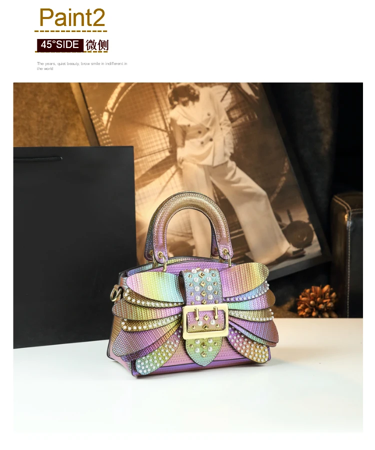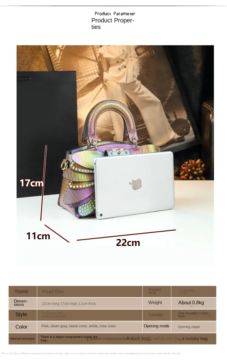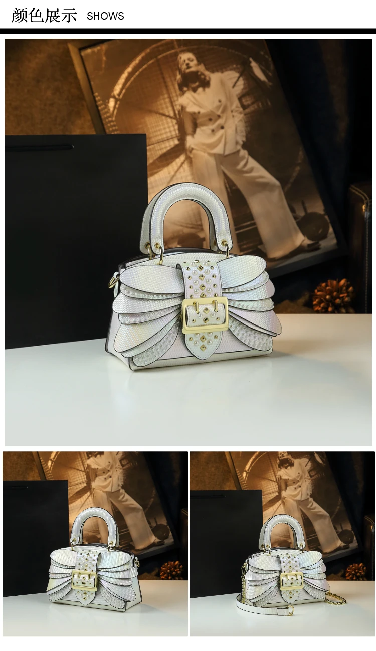 2024 New Pearl Riveted Wings Women Bag Real Leather Leather Stylish Bag Temperament Shoulder Messenger Bags