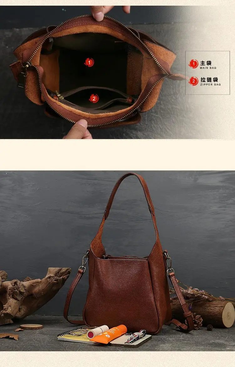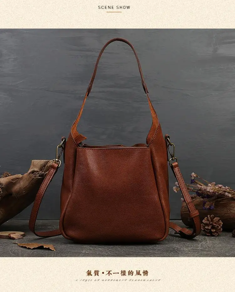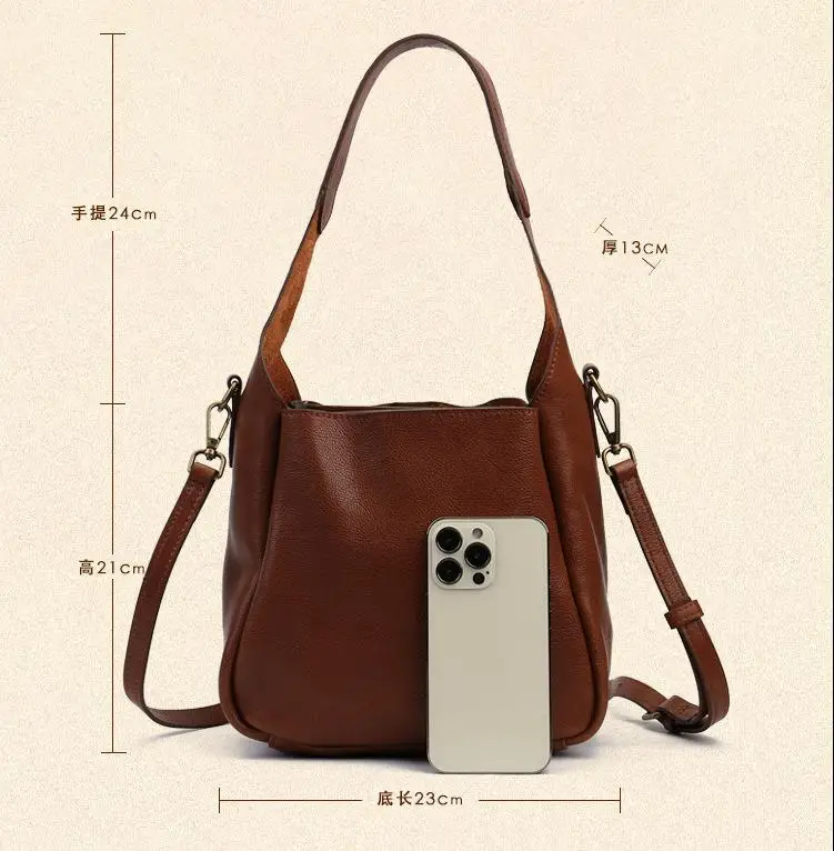 2024 New Retro Genuine Leather Women Shoulder Designer Bags Luxury For Ladies Handbag Large Capacity Natural Cowhide Bag