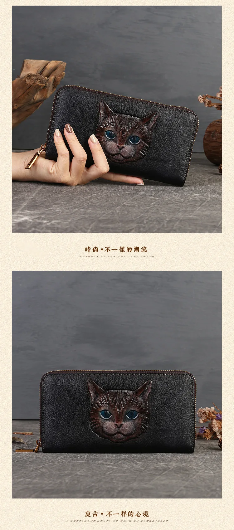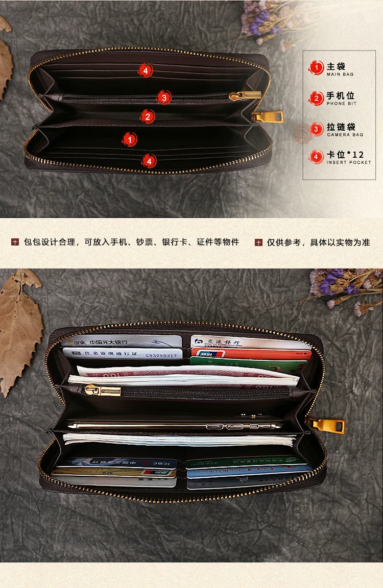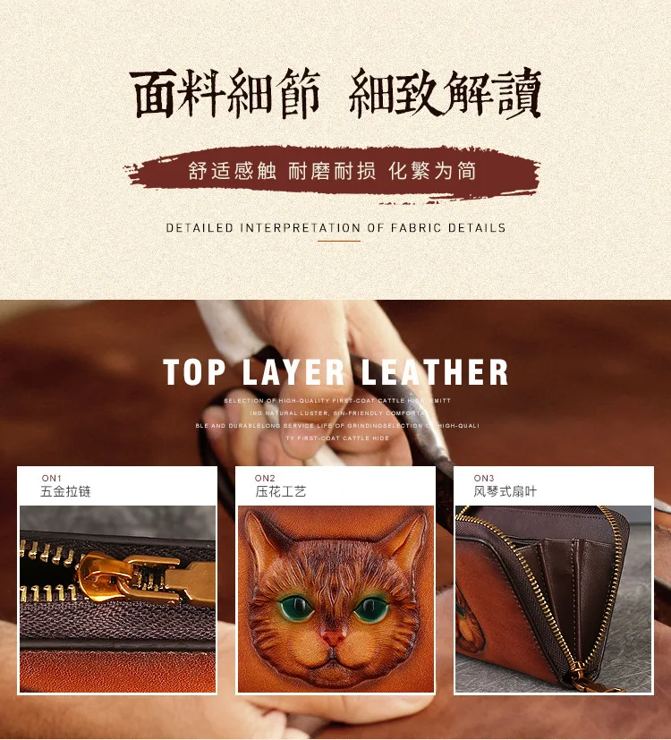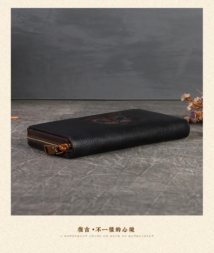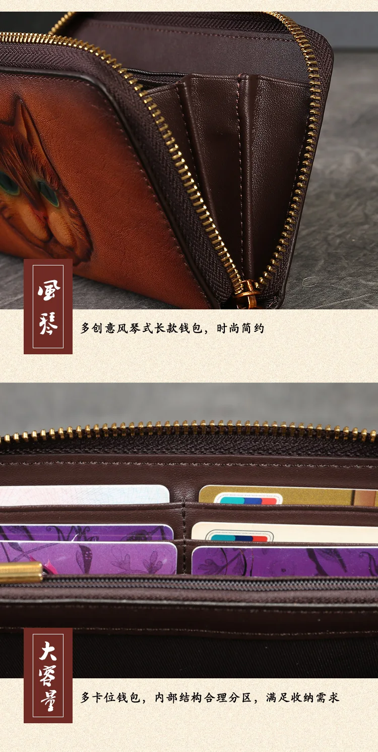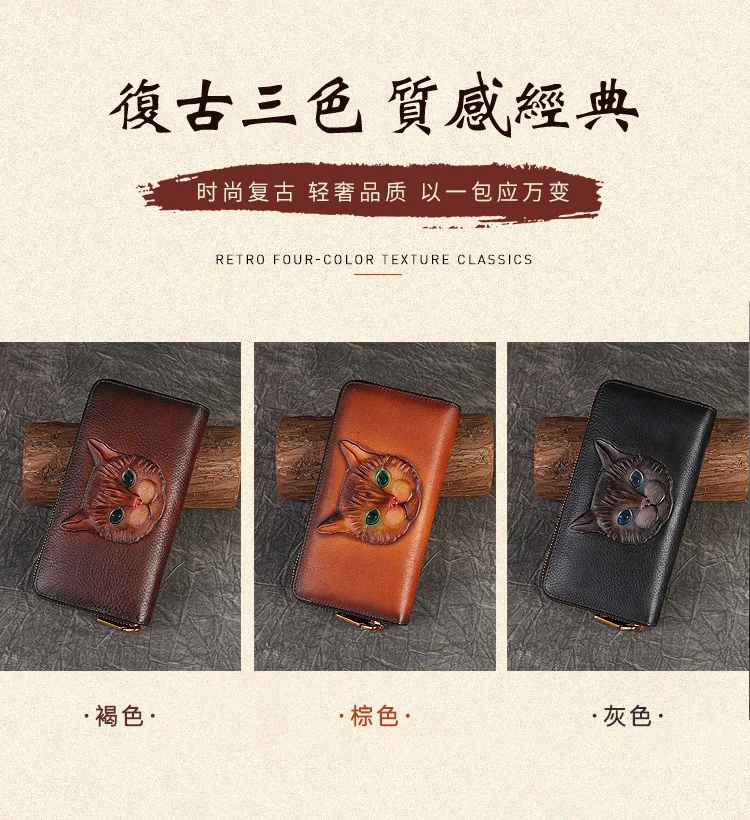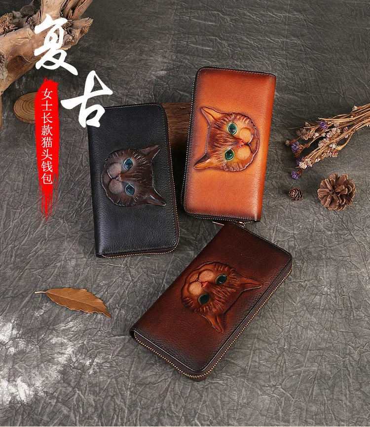 2024 New Vintage Women's Wallet Long Genuine Leather Wallets Women Purses For Ladies Handmade Embossed Woman Card Holder