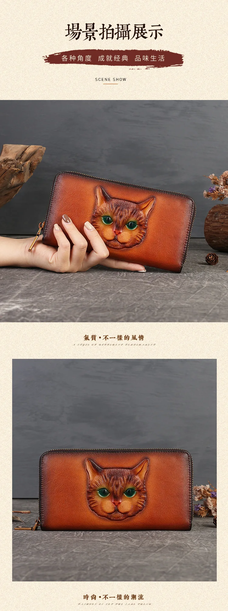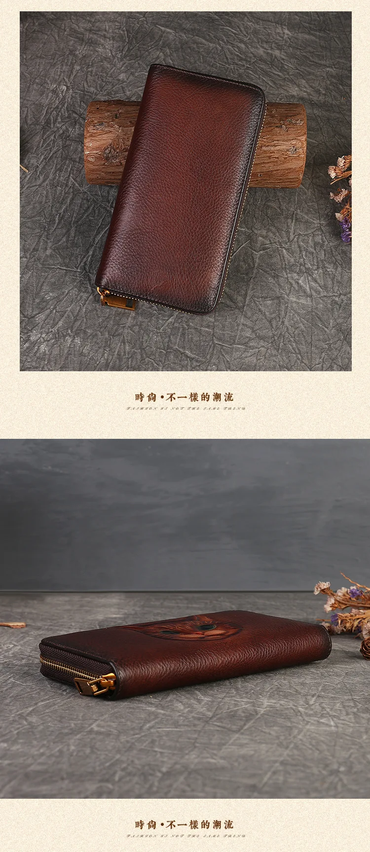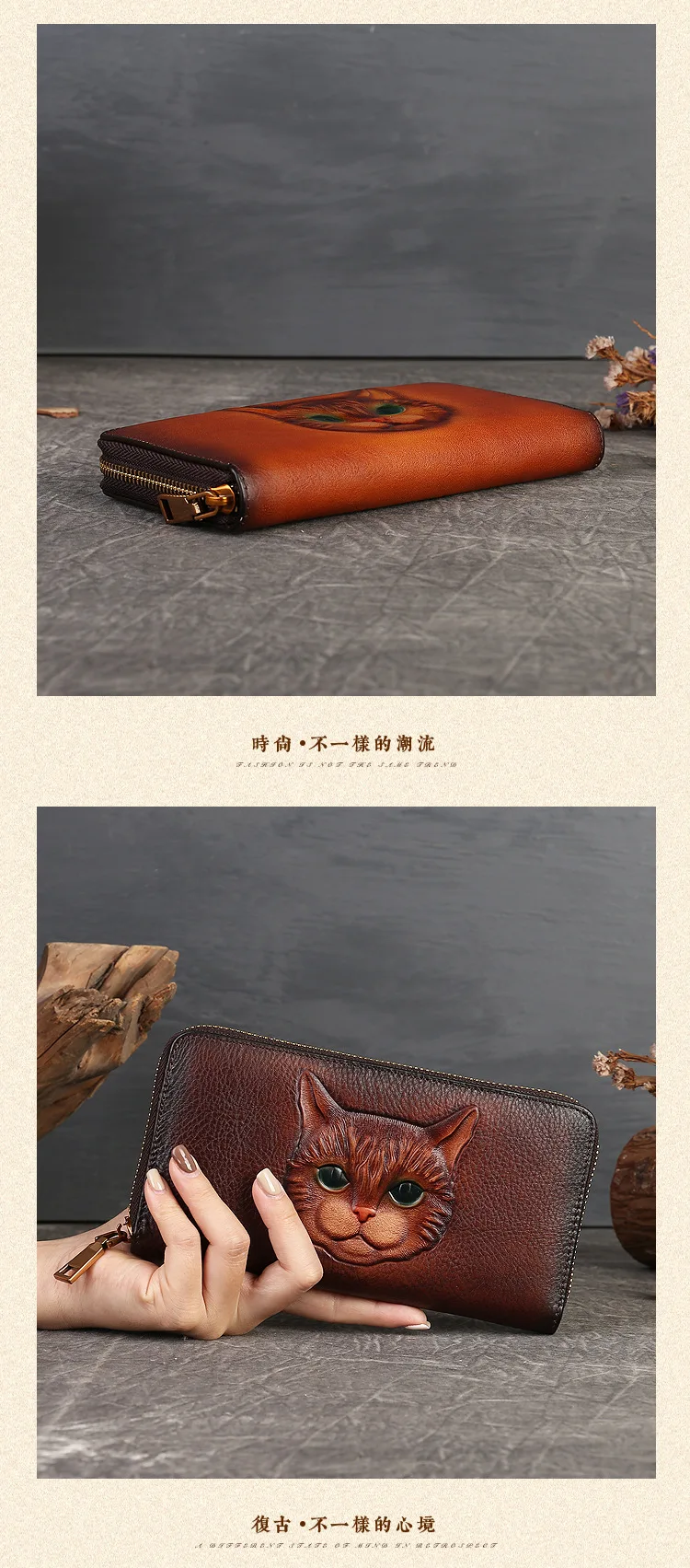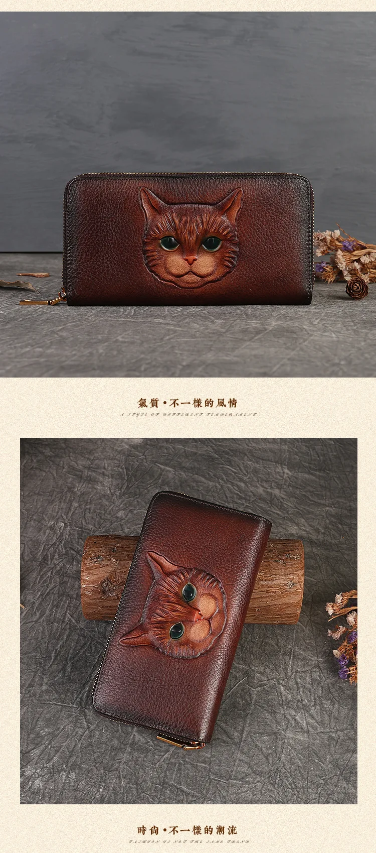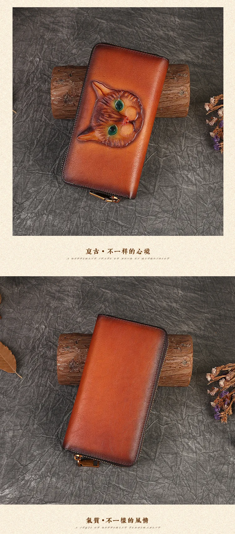 2024 New Vintage Women's Wallet Long Genuine Leather Wallets Women Purses For Ladies Handmade Embossed Woman Card Holder