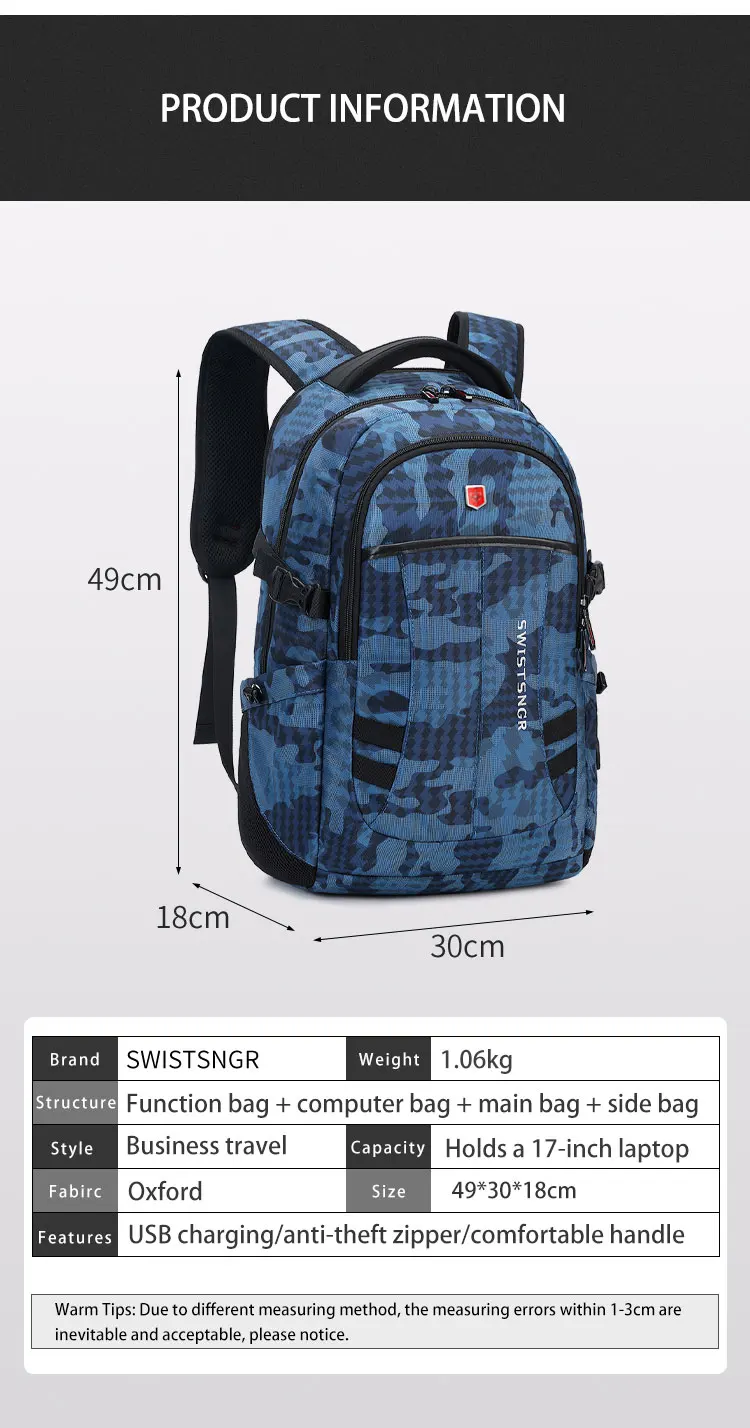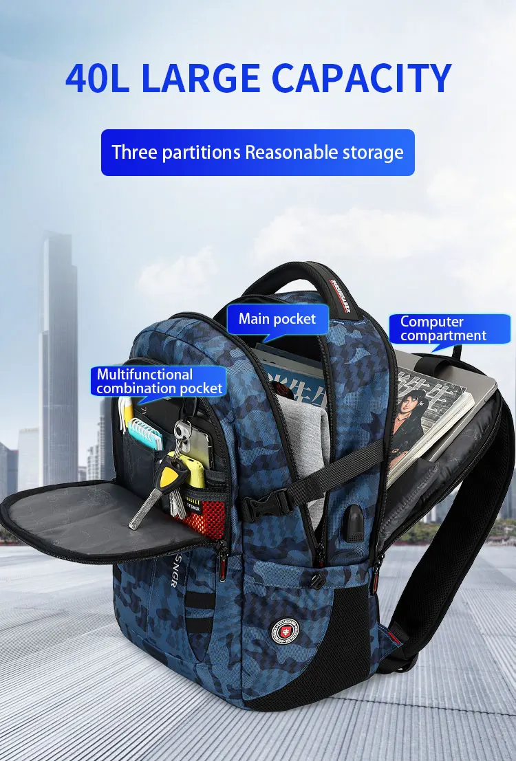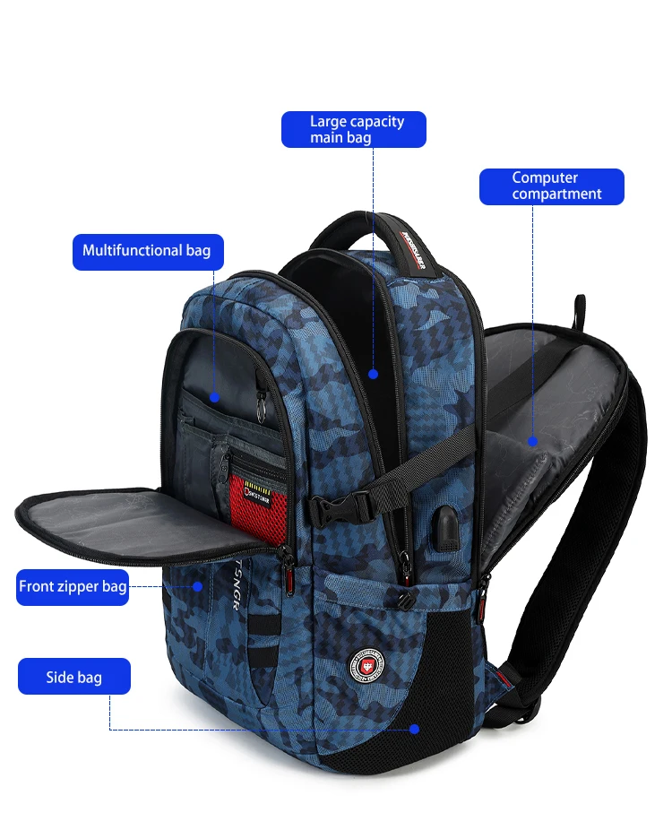 2024 New Waterproof Backpacks USB Charging School Bag Anti-theft Men Backpack Fit 17.3 Inch Laptop Travel Backpack Male Mochila
