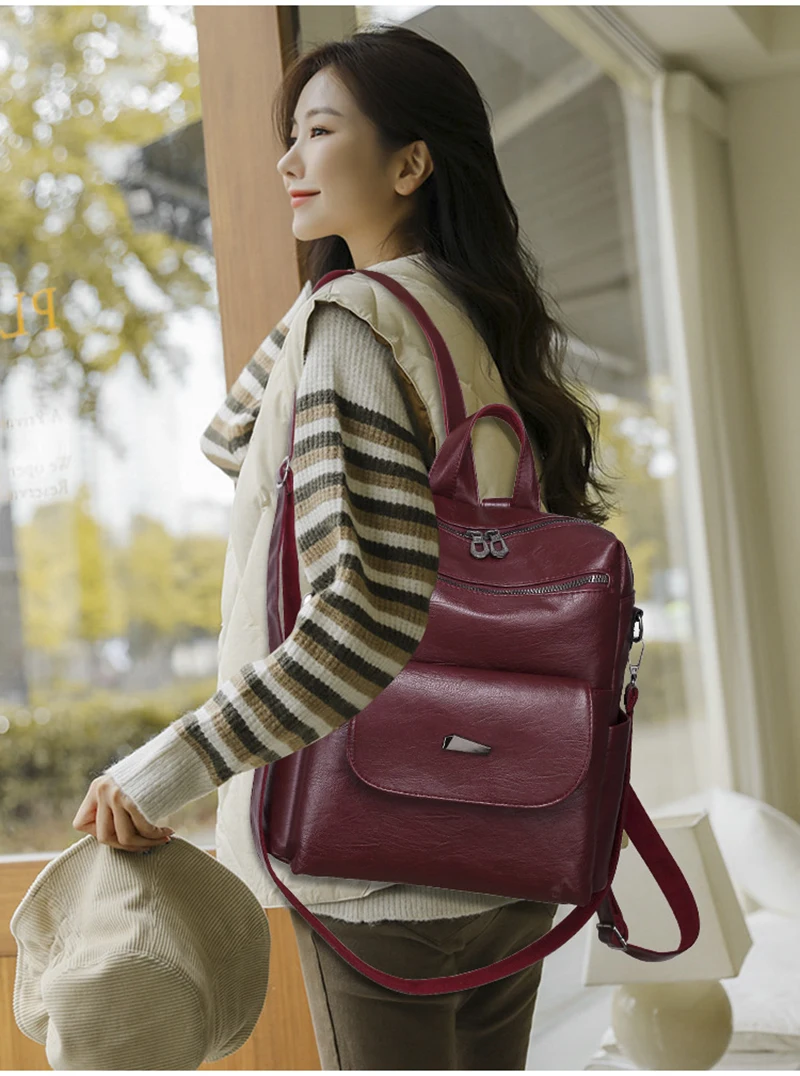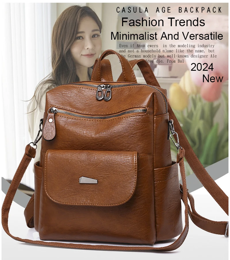 2024 New Women Backpack High Quality Leather Backpack Multifunction Shoulder Bags School Bags for Teenager Girls Bagpack Mochila