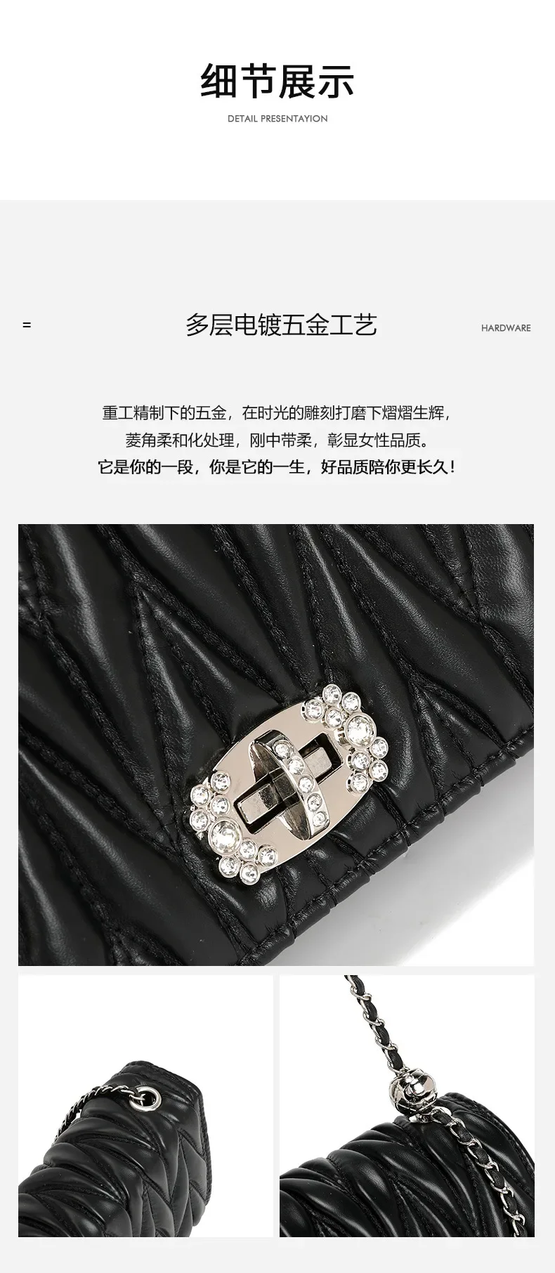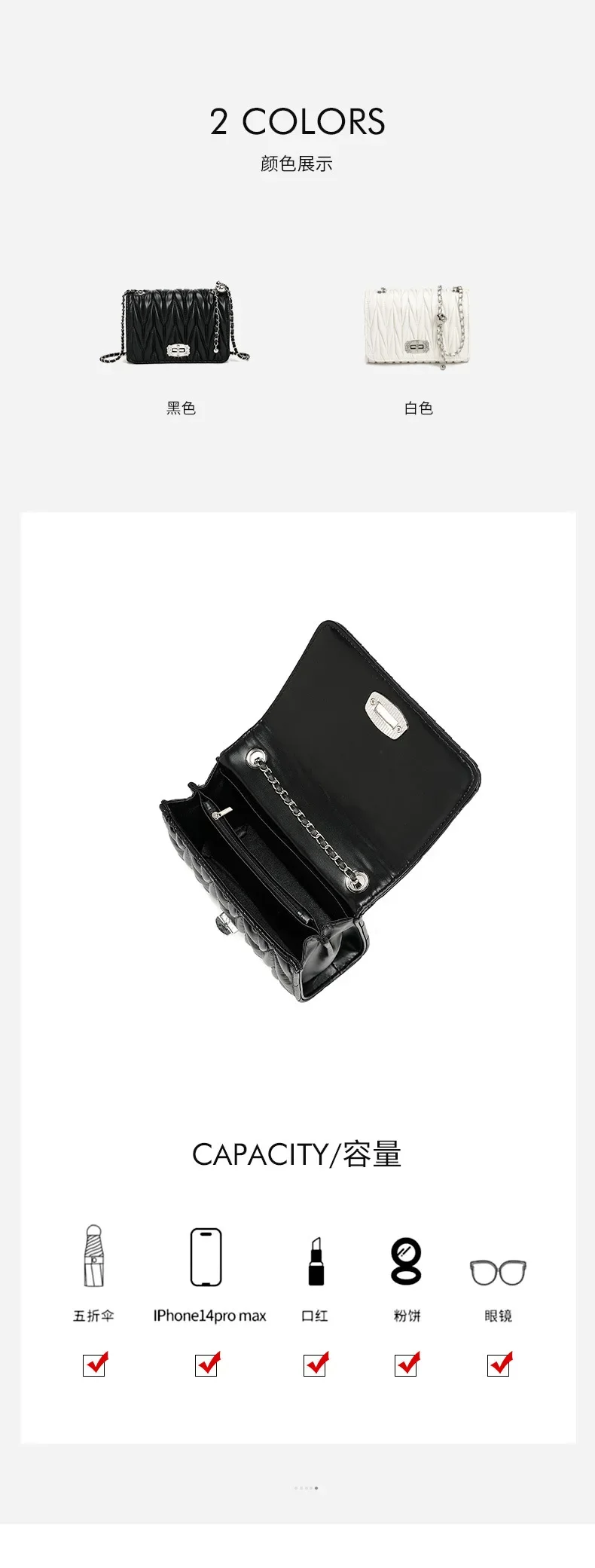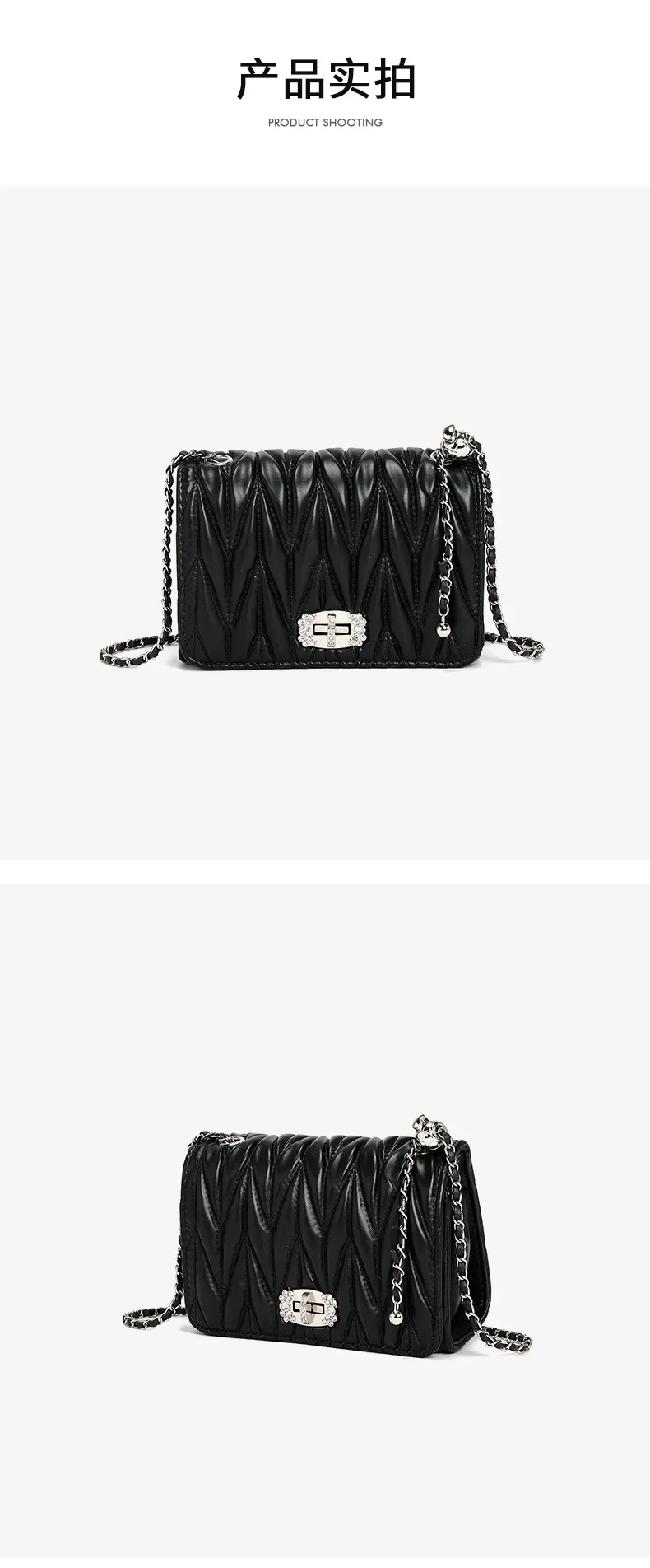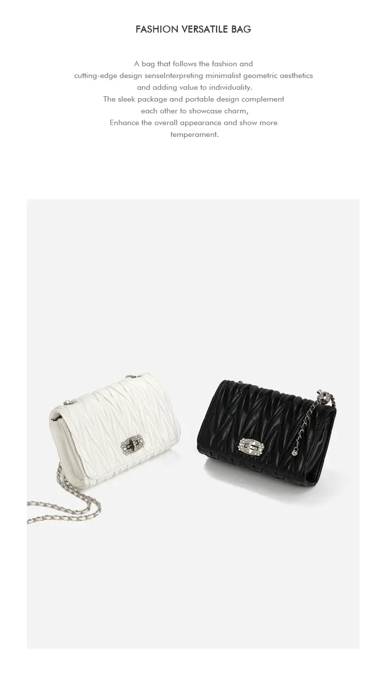 2024 New Women's Bags, Fashionable and Versatile Pleated Chain Cross-body Bags, Handbags, Temperament and Charm