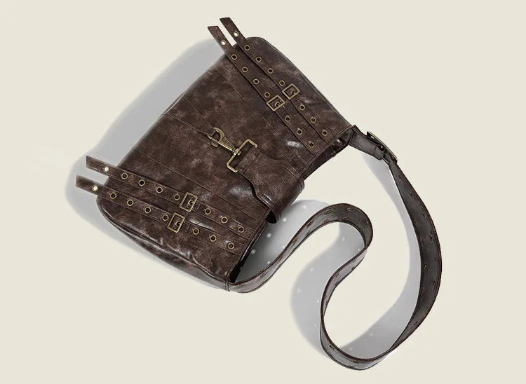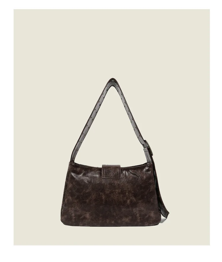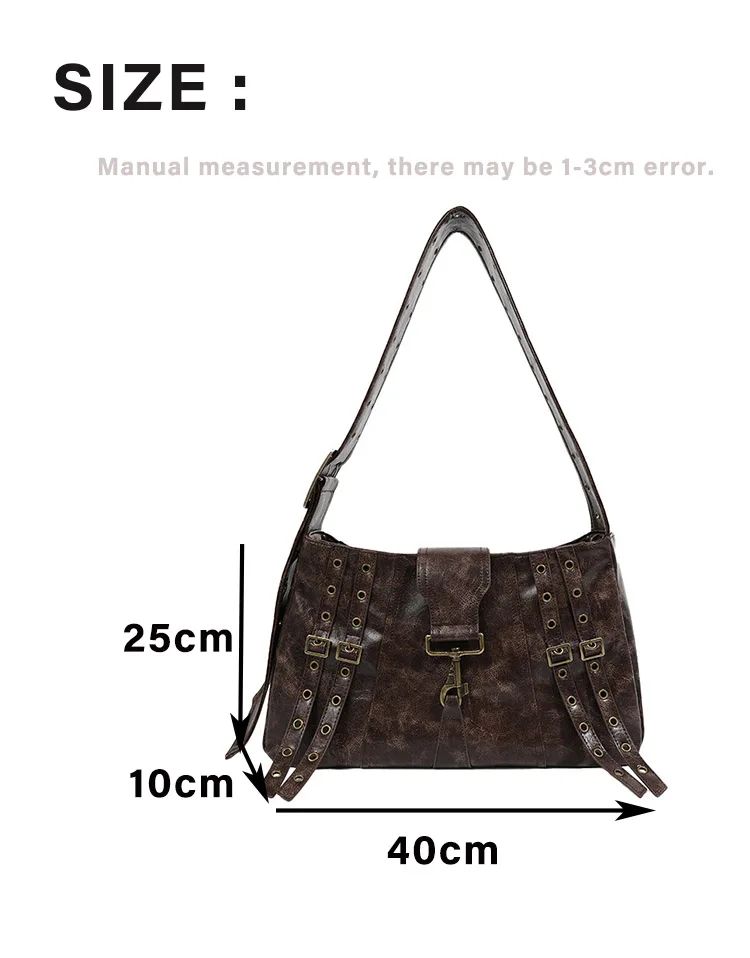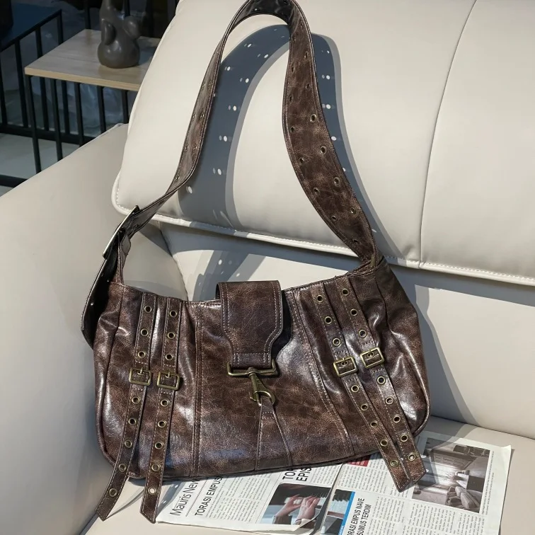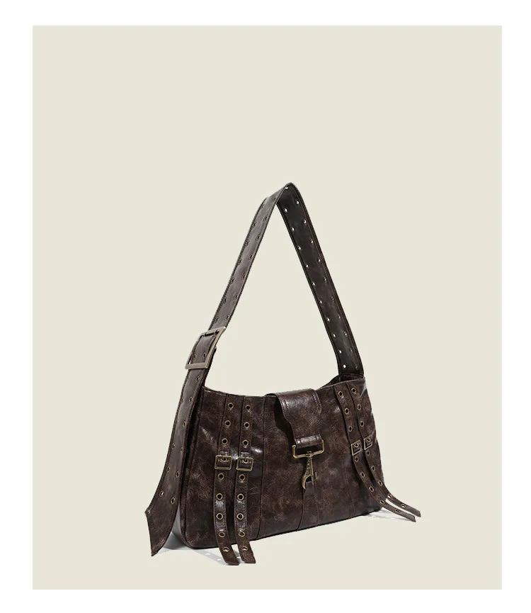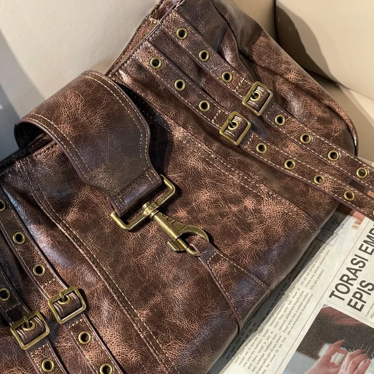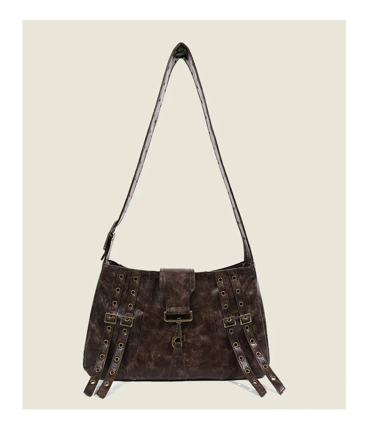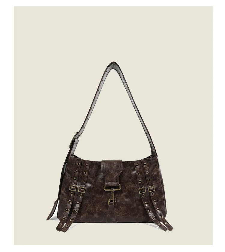 2024 summer popular women's shoulder bag large capacity casual genuine leather retro handbag punk high-end luxury women's bag