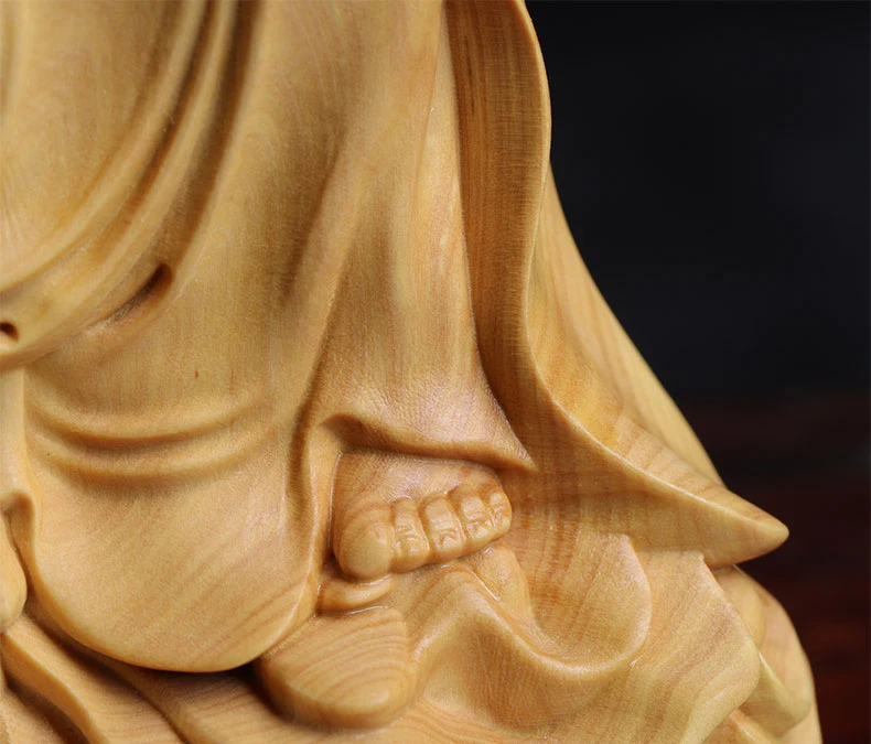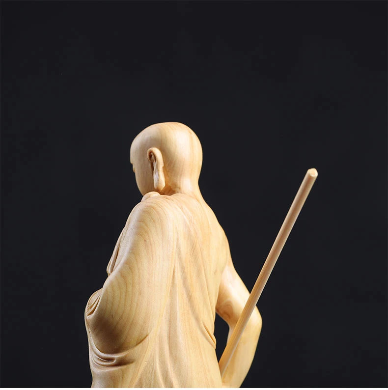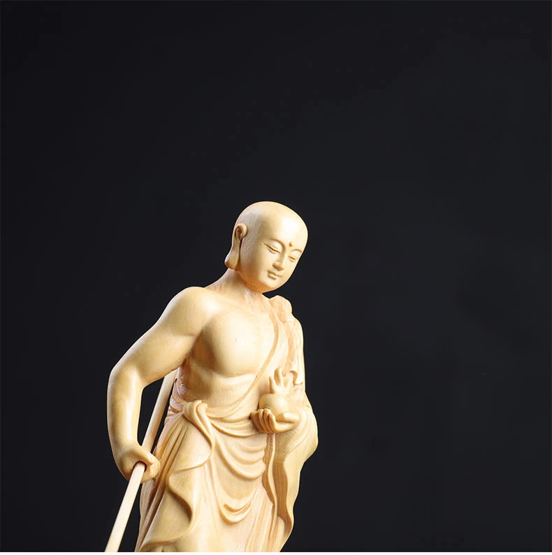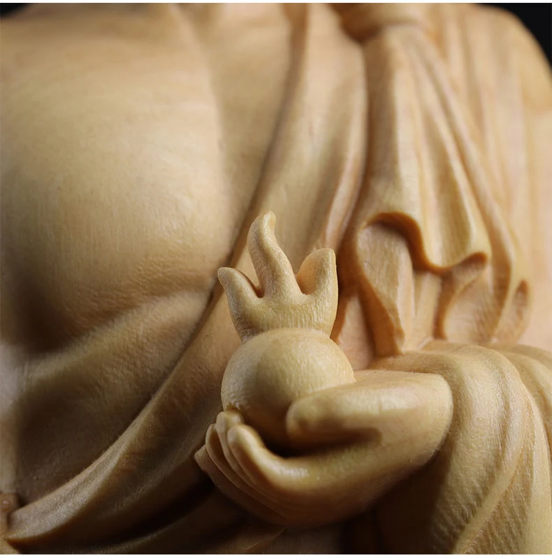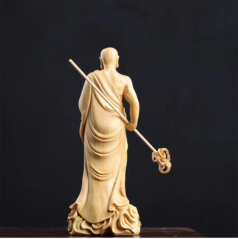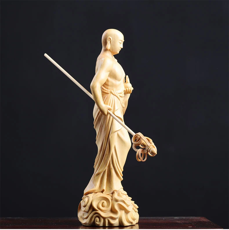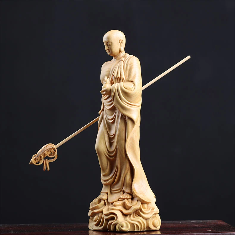 20CM Boxwood Ksitigarbha Sculpture Wood Buddha Statue Dizang Wang Bodhisattva Worship Home Decor Crafts