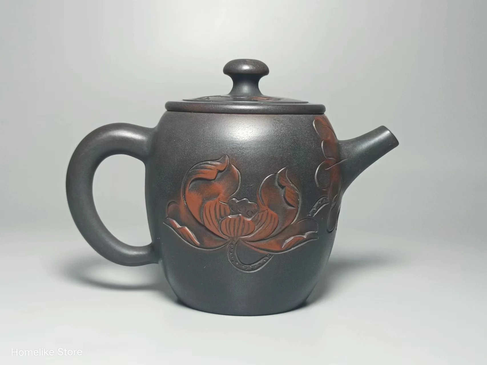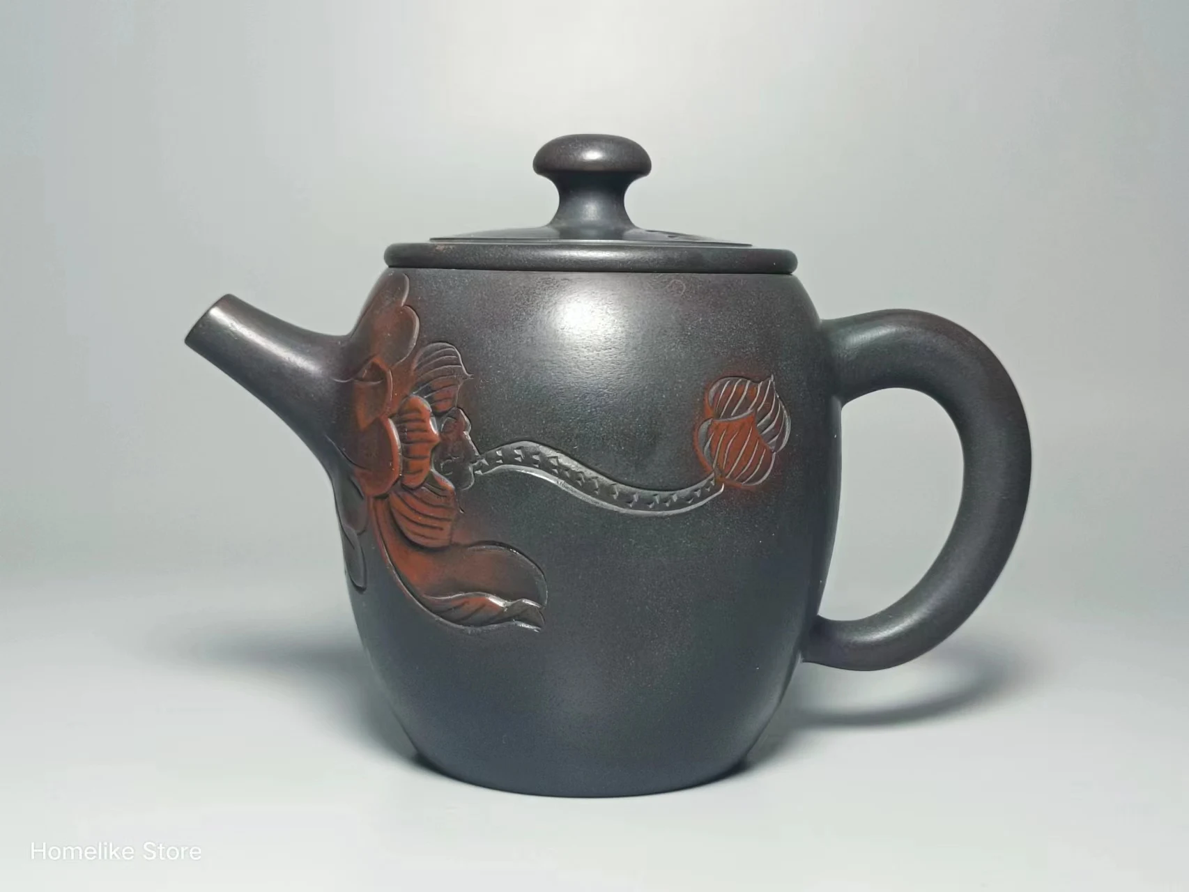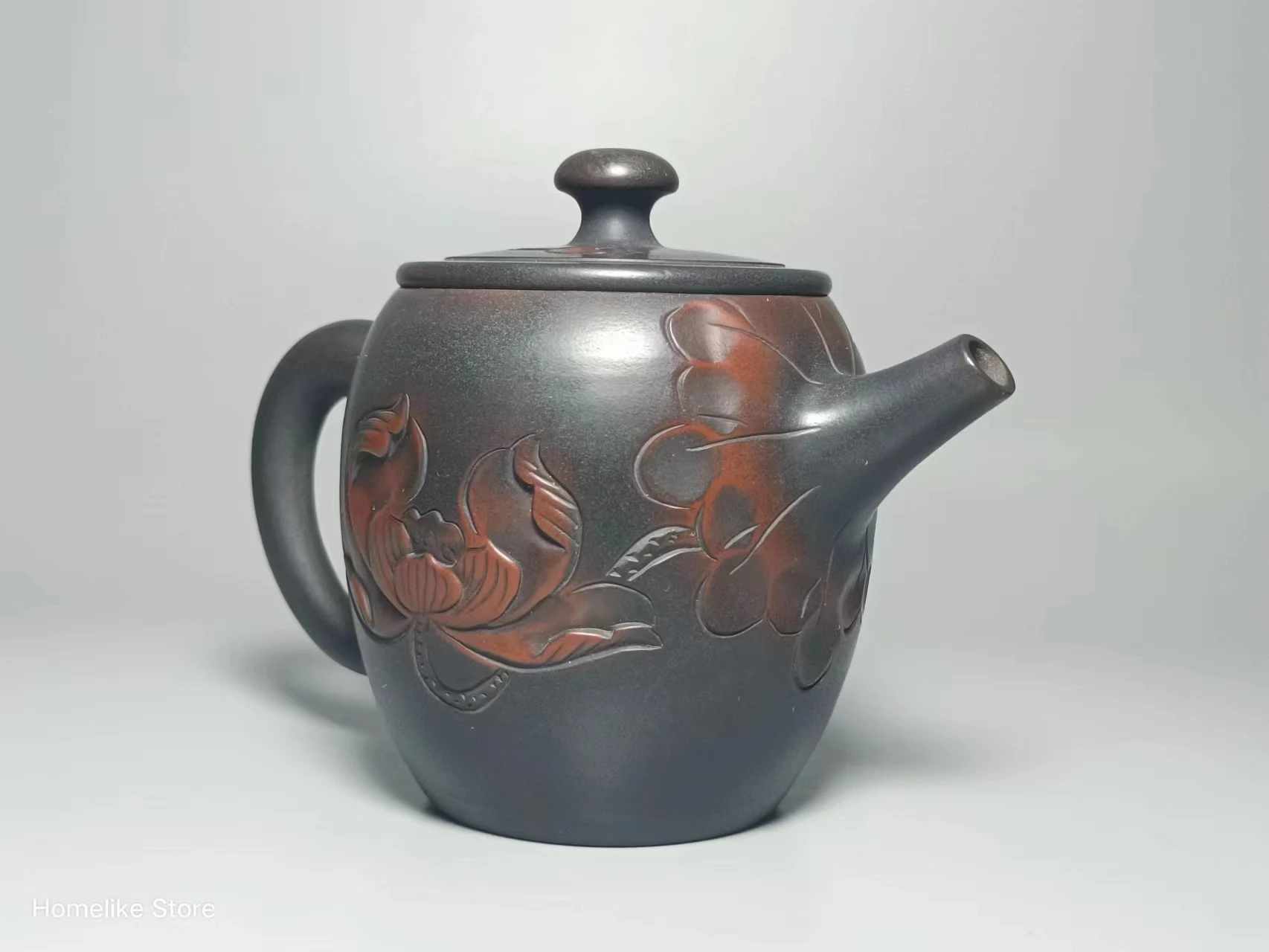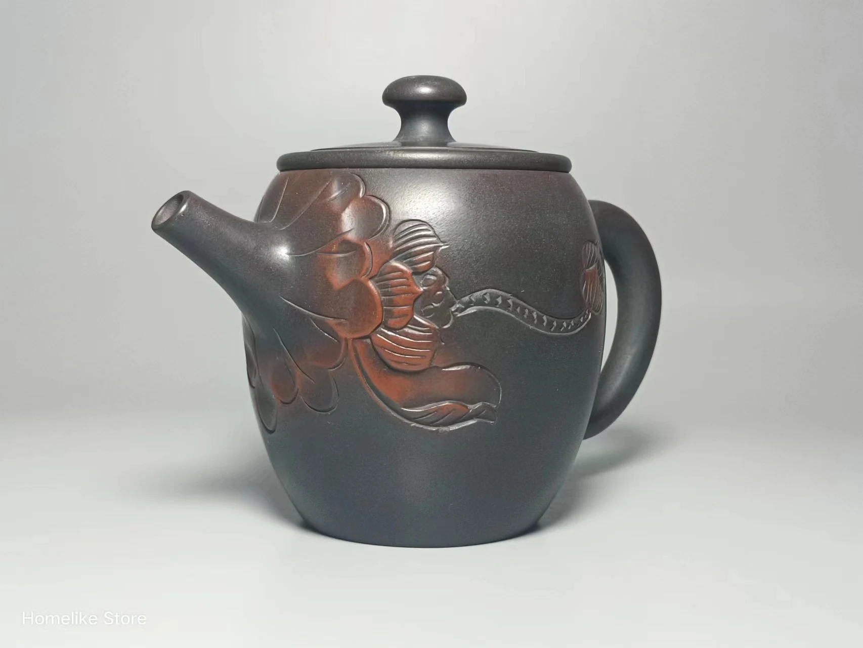 They were carved by the craftsman with a carving knife, and then filled in with various kinds of color-matched clay, and then fired and polished together with the teapot.