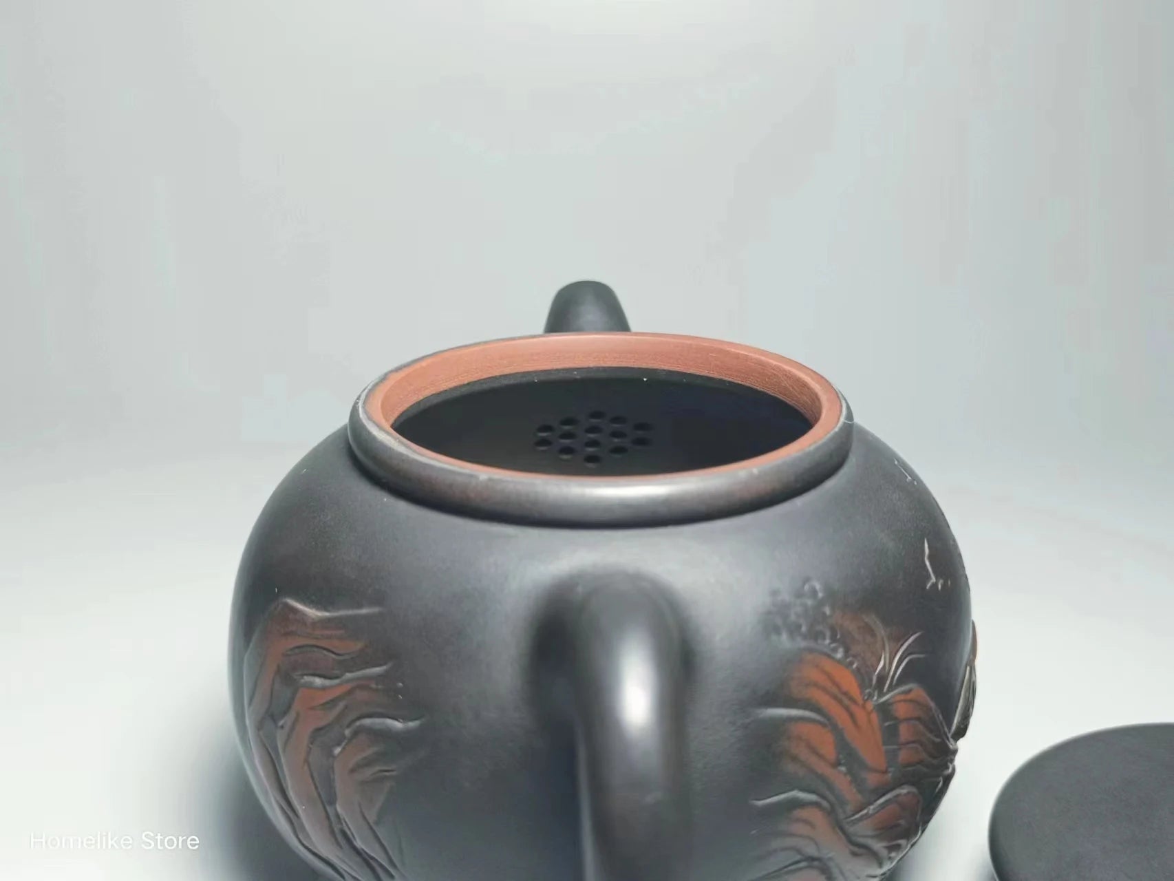 They were carved by the craftsman with a carving knife, and then filled in with various kinds of color-matched clay, and then fired and polished together with the teapot.