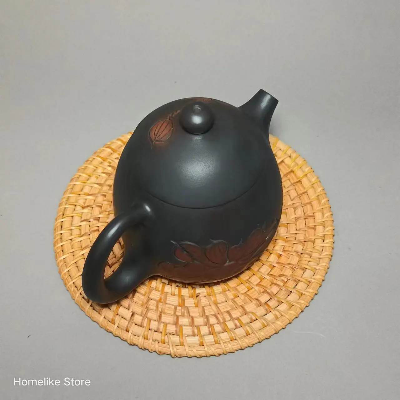 They were carved by the craftsman with a carving knife, and then filled in with various kinds of color-matched clay, and then fired and polished together with the teapot.