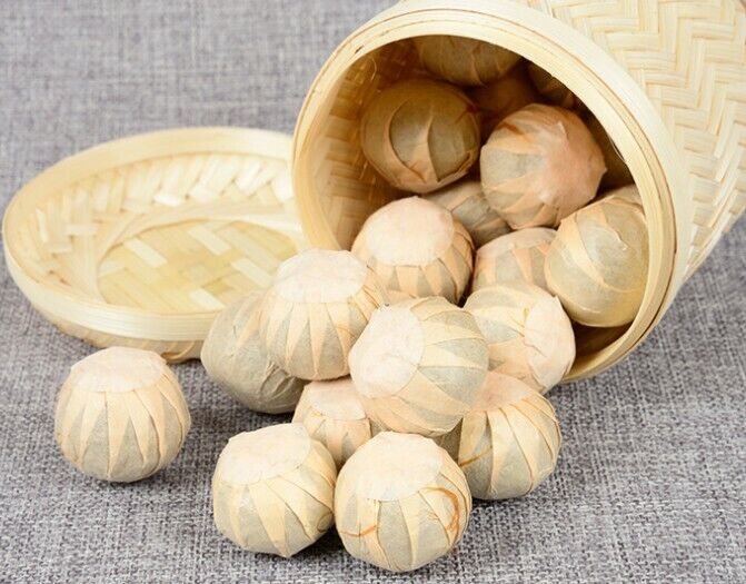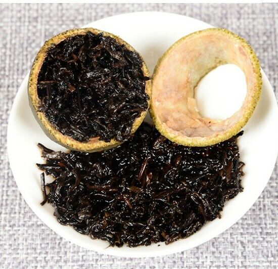 It is made of Gongting aged puer tea leaves with Mini Green orange Chenpi/aged orange peel. Dig out the pulp in the mini green orange, then fill in the empty space with aged gong ting puer tea leaves. After drying and shaping, the Chenpi tea was made in the appearance of tangerine, with unique taste. Sweet,refreshing and warming aroma, with a clean and soft juicy flavor.