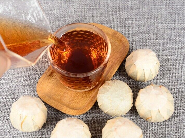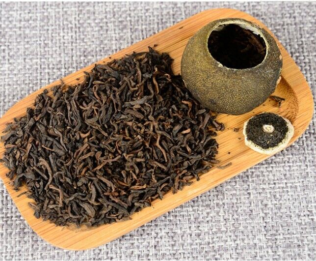 Brew the orange skin puer tea into small pieces and add some skins and a few tea leaves into the cup, try to adjust the ammount of the tea leaves to get a suitable taste.
