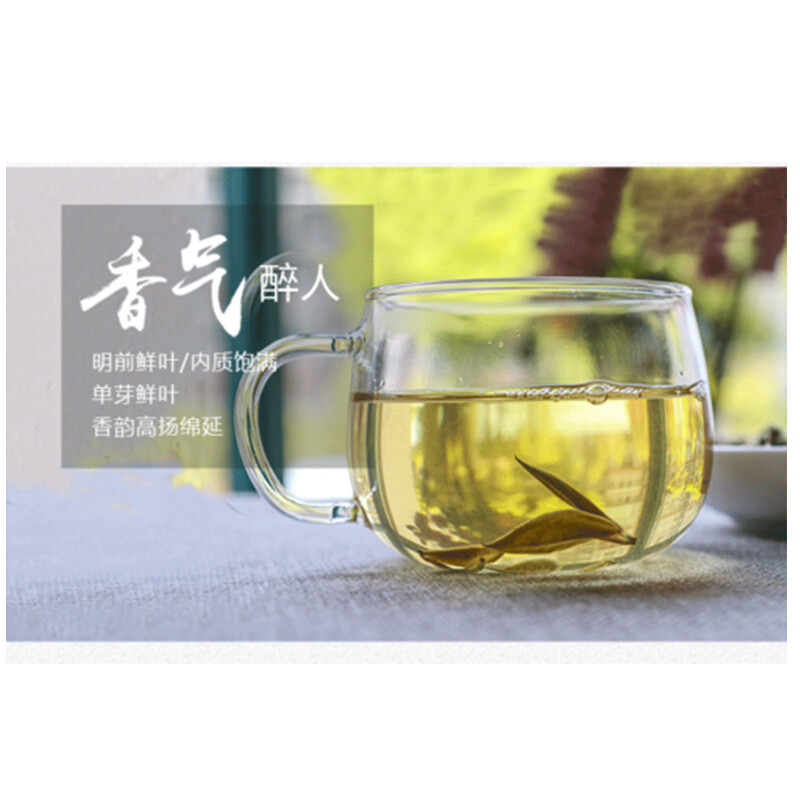 This is a supreme quality green tea made of two young spring tea leafs and a bud as you can see in the picture. The tea trees are grown on the mountain 1200-1800 meters above sea level, untouched by pollution. It is made from the Yunnan Broad Leaf variety, which gives it its distinctive aroma and taste. This green tea enhances the natural full bodied character and its rich, delicate flavour. It has an unmistakable aroma.