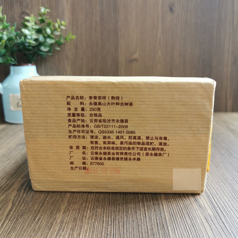 250g Yunnan Pu-erh Ripe Tea Jujube Puerh Tea Brick Cooked Black Tea Weight Loss