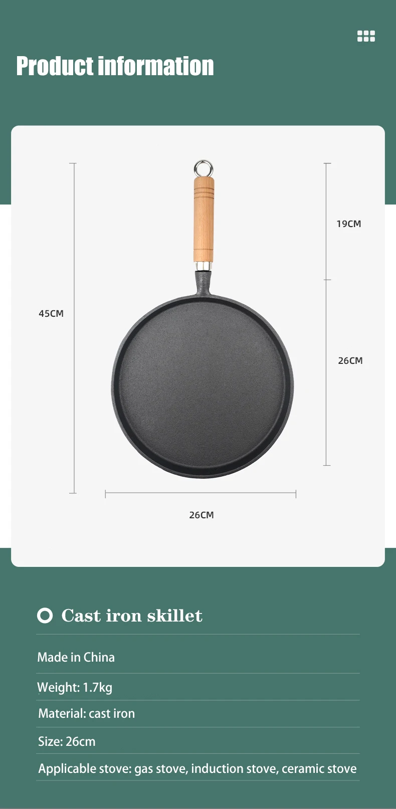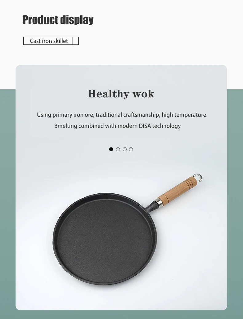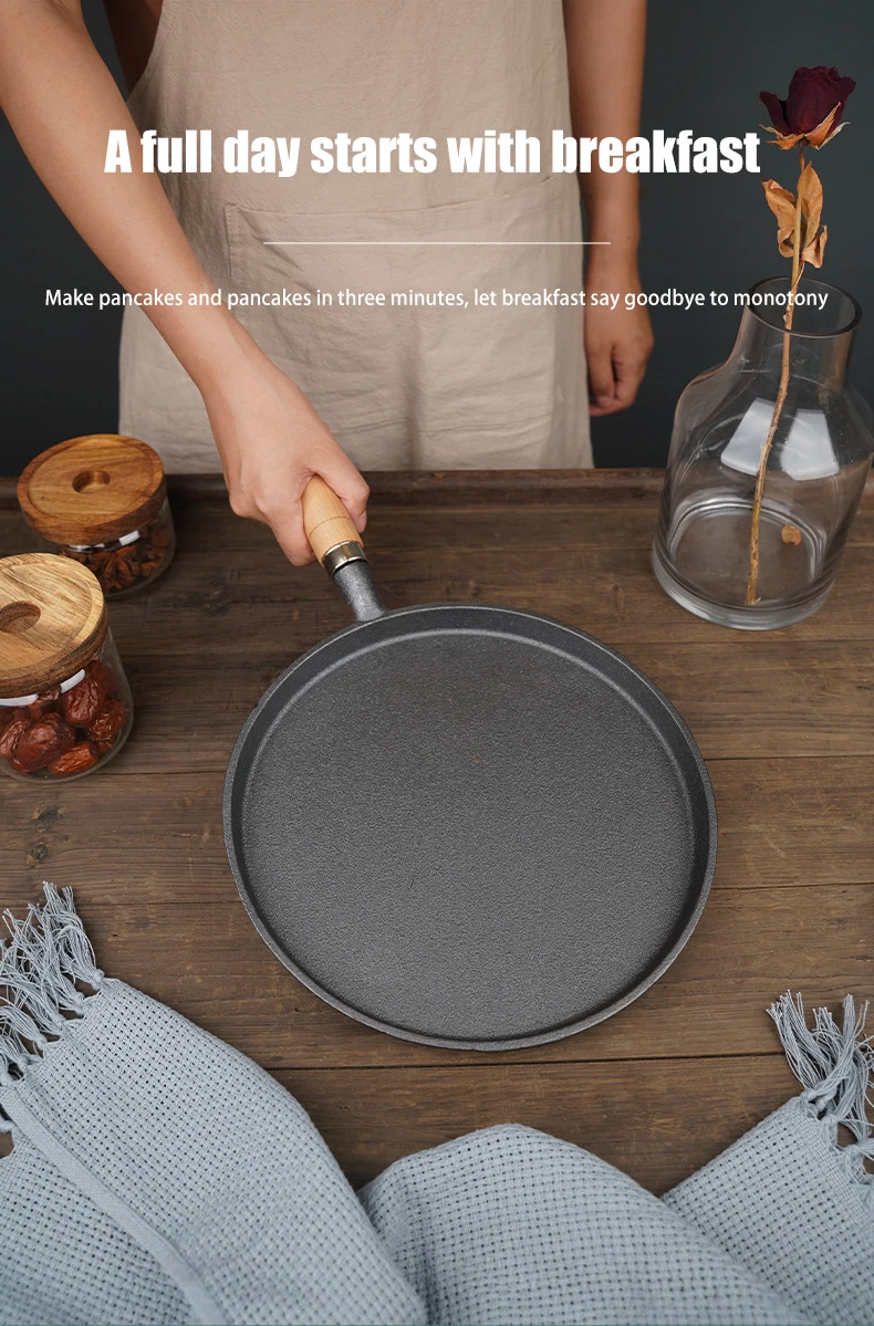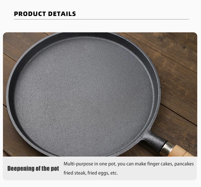 26cm Cast Iron Frying Pan Uncoated Non-stick Egg Pancake Pan Crepe Maker Steak Frying Pot Gas Induction Cooker Kitchen Cookware