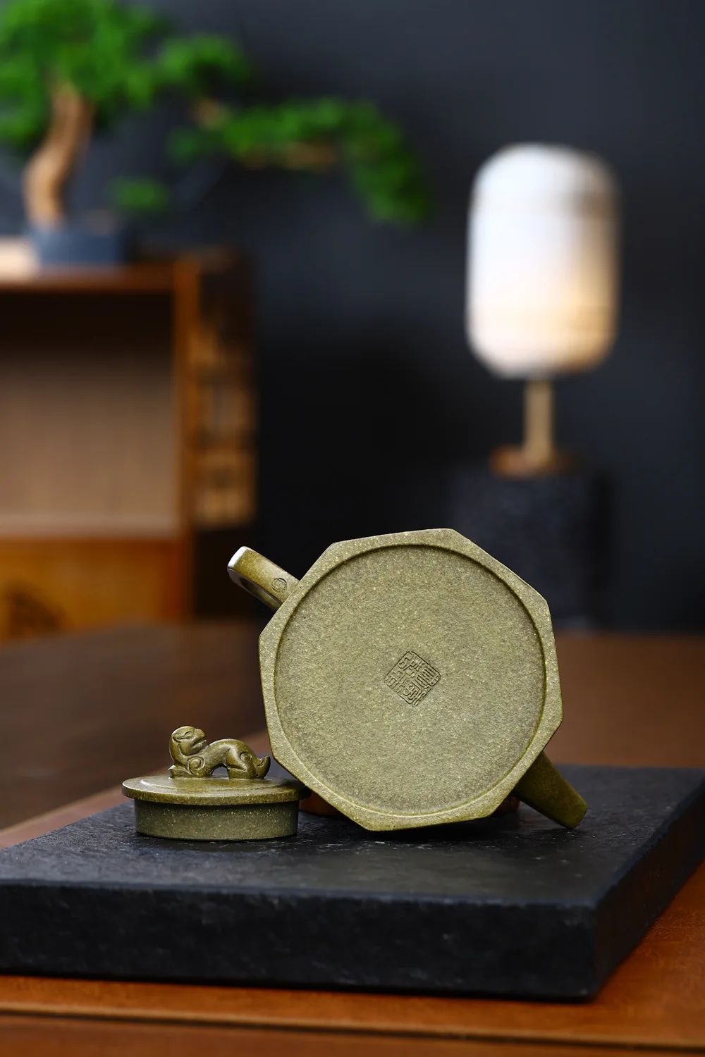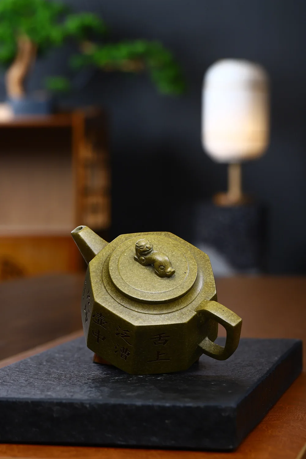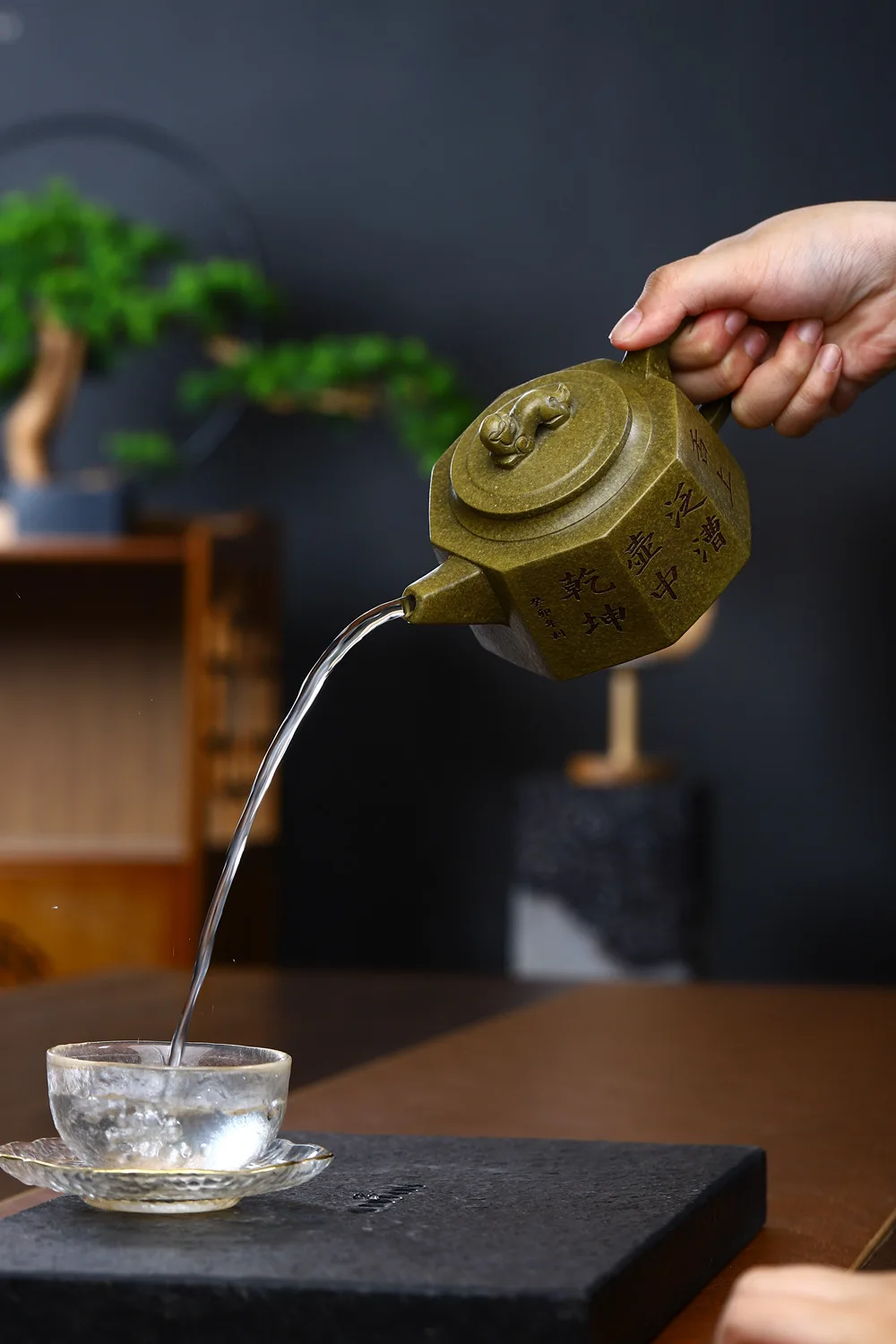 280ml High Grade Yixing Purple Clay Teapot Master Handmade 9 Hole Filter Tea Kettle Chinese Raw Ore Green Mud Zisha Tea Set
